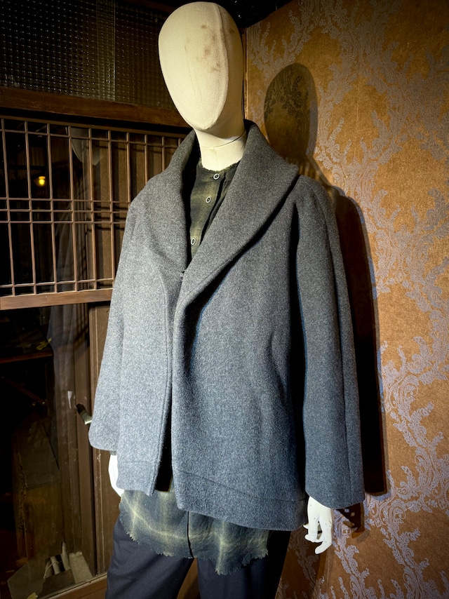 「Chalayan」 architecturral shawl collar wool design dolman sleeve coat コンセプチュアルなデザインで知られるチャラヤンによる、構築的なシルエットが印象的なウールコート。 ロンドンを拠点とするデザイナー、フセイン・チャラヤンが手がける同ブランドは、建築的思考や社会的テーマをファッションに落とし込む革新的なアプローチで高く評価されています。 衣服を単なる「着るもの」ではなく、“思考や概念を表現するメディア”として捉える姿勢が、コレクション全体に一貫して表れています。 本作は、ミニマルな佇まいの中に立体的な構築美を宿した一着。 コートでは珍しいドルマンスリーブに、計算されたパターンワークによって生まれるシャープなラインと、程よいボリューム感が共存。 分厚めのウールをベースにナイロンをブレンドした生地は、柔らかな温もりと軽快さ、そして型崩れしにくい実用性を兼ね備えた仕上がり。 無駄を削ぎ落としたデザインながら、羽織った際のフォルムには確かな奥行きが感じられ、チャラヤンらしい前衛性がさりげなく表現されています。 アートピースのような思想性と、日常に落とし込める実用性を兼ね備えたウールコート。 時代やトレンドに左右されず、長く向き合える一着としておすすめできる、知性と美意識を感じさせるアウターです。 【MATERIAL】 wool 90% nylon 10% 裏地 cotton 100% cupra 100% 【 SIZE 】 裄丈 84cm 身幅 61cm 着丈 82cm ※ 採寸は念入りに行っておりますが、平置きによる採寸の為、数字に若干のずれが生じることもございます。 【CONDITION】 ※USED商品のため、細かなスレがある場合がございます。 ご了承の上、ご購入ください。 【取り扱いSHOP】 タナゴコロータス 大阪中崎町店 送料一律750円 注文より2~3日で配送 日時指定が出来ない場合もございます。 ノークレームノーリターン。 古着商品です。 返品交換は致しかねますのでご了承下さい。 ※店頭でも販売している商品の為、購入時に実売してしまっている場合が御座います。