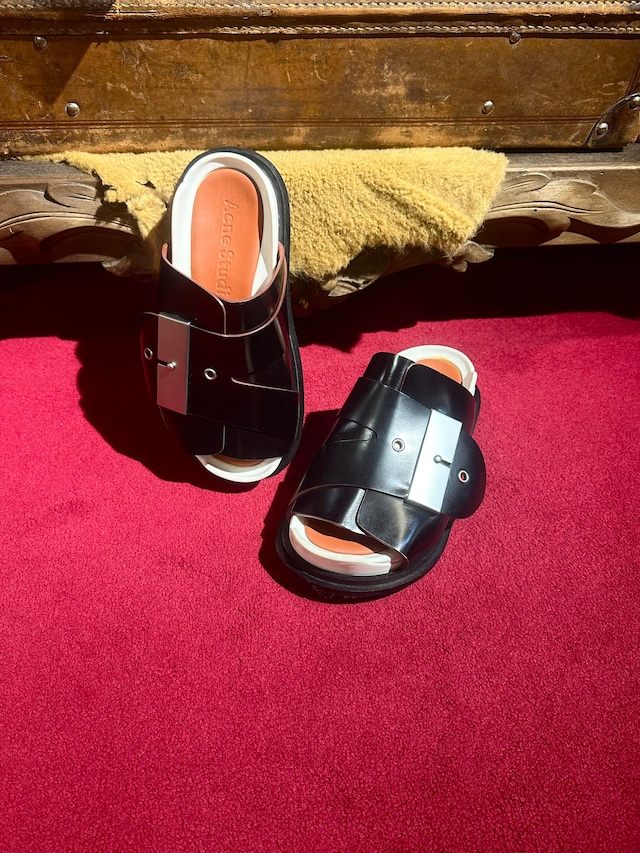「Acne Studios」 metal plate design leather platform sandals アクネストゥディオス 2016ss よりプラットフォームレザーサンダルを紹介致します。 Acne Studiosはジョニー・ヨハンソンが1996年に創立した、スウェーデンのファッションブランド。 光沢のあるパテントレザーに、モンクストラップ風のシルバーのバックルデザインを入れたボリューミーなサンダル。 厚底で、クッション性と速乾性を兼ね備えた、オフホワイトラバーソールを使用し、異素材ミックスで絶妙なバランスのデザインが施されております。 「Acne Studios」のブランドコンセプト「シンプルでありながらも個性的なデザインを追求すること。」を体現したそれに相応しい一足。 【MATERIAL】 leather rubber sole 【 SIZE 】 表記 35 22.5〜22cm ※ 採寸は念入りに行っておりますが、平置きによる採寸の為、 数字に若干のずれが生じることもございます。 【CONDITION】 dead stock 室内での試し履き程度。 【取り扱いSHOP】 タナゴコロータス 心斎橋PARCO店 送料一律750円 注文より2~3日で配送 日時指定が出来ない場合もございます。 ノークレームノーリターン。 古着商品です。 返品交換は致しかねますのでご了承ください。 ※店頭でも販売している商品の為、 購入時に実売してしまっている場合がございます。