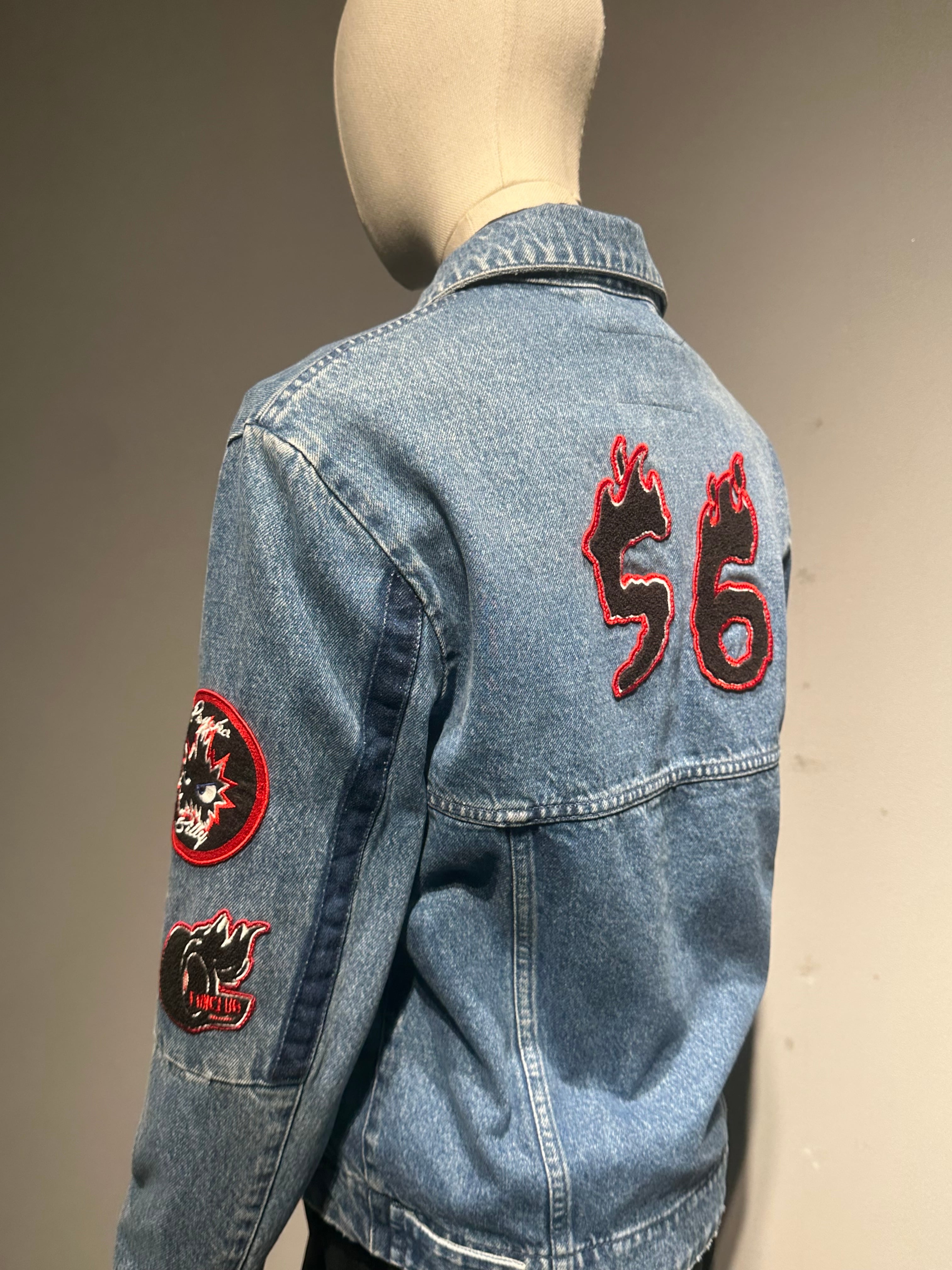 イギリスのファッションブランド、アレキサンダー・マックイーンよりデニムに赤のワッペンデザインがよく映えるデニムジャケットをご紹介。