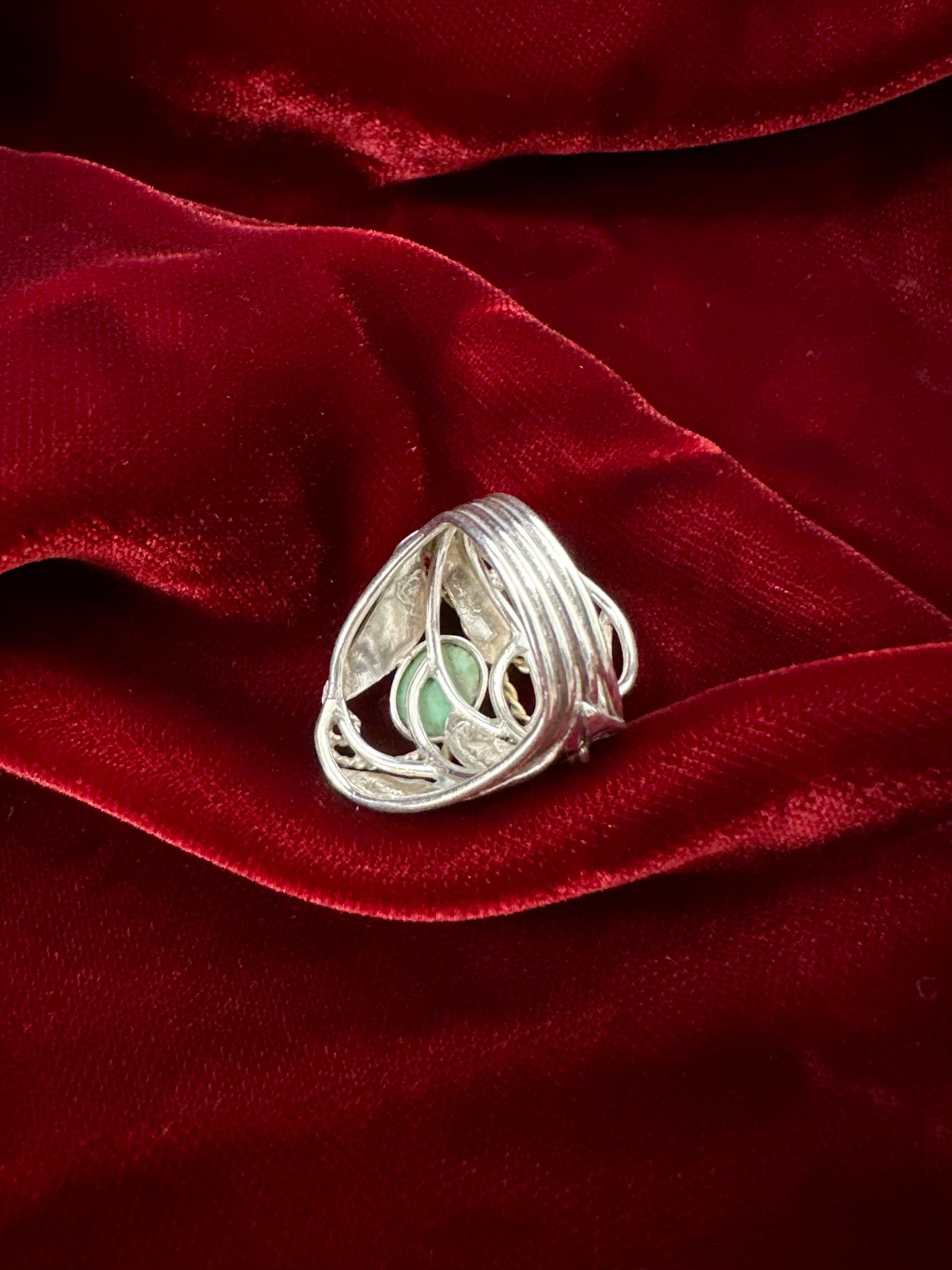 70〜80年代頃、東欧を中心に流行したアール・ヌーヴォーリバイバルの影響を感じる一本で、落ち着いたターコイズストーンが指元にナチュラルな存在感を添えてくれます。