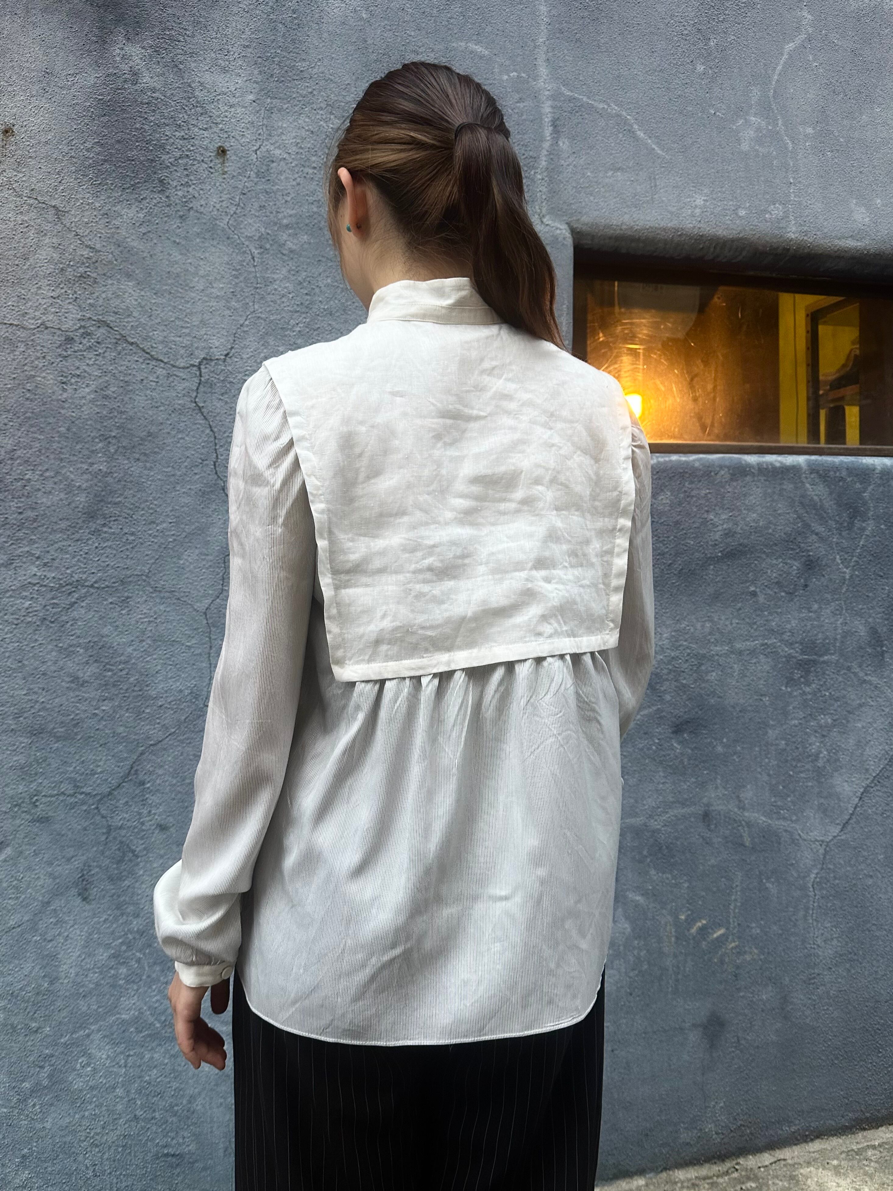 体にフィットするような肌触りの良い1枚で、シルクとコットンとの切り替えが、他にはない面白いデザイン。