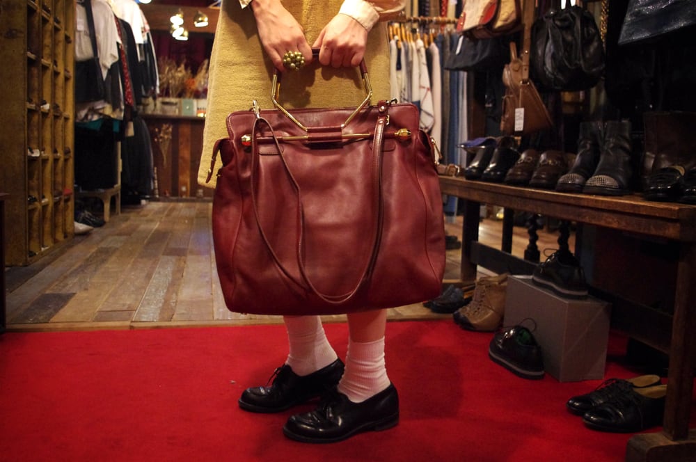 パリジェンヌの好きな色 ボルドーカラーのレザーバッグは、VIKTOR&ROLFのもの。