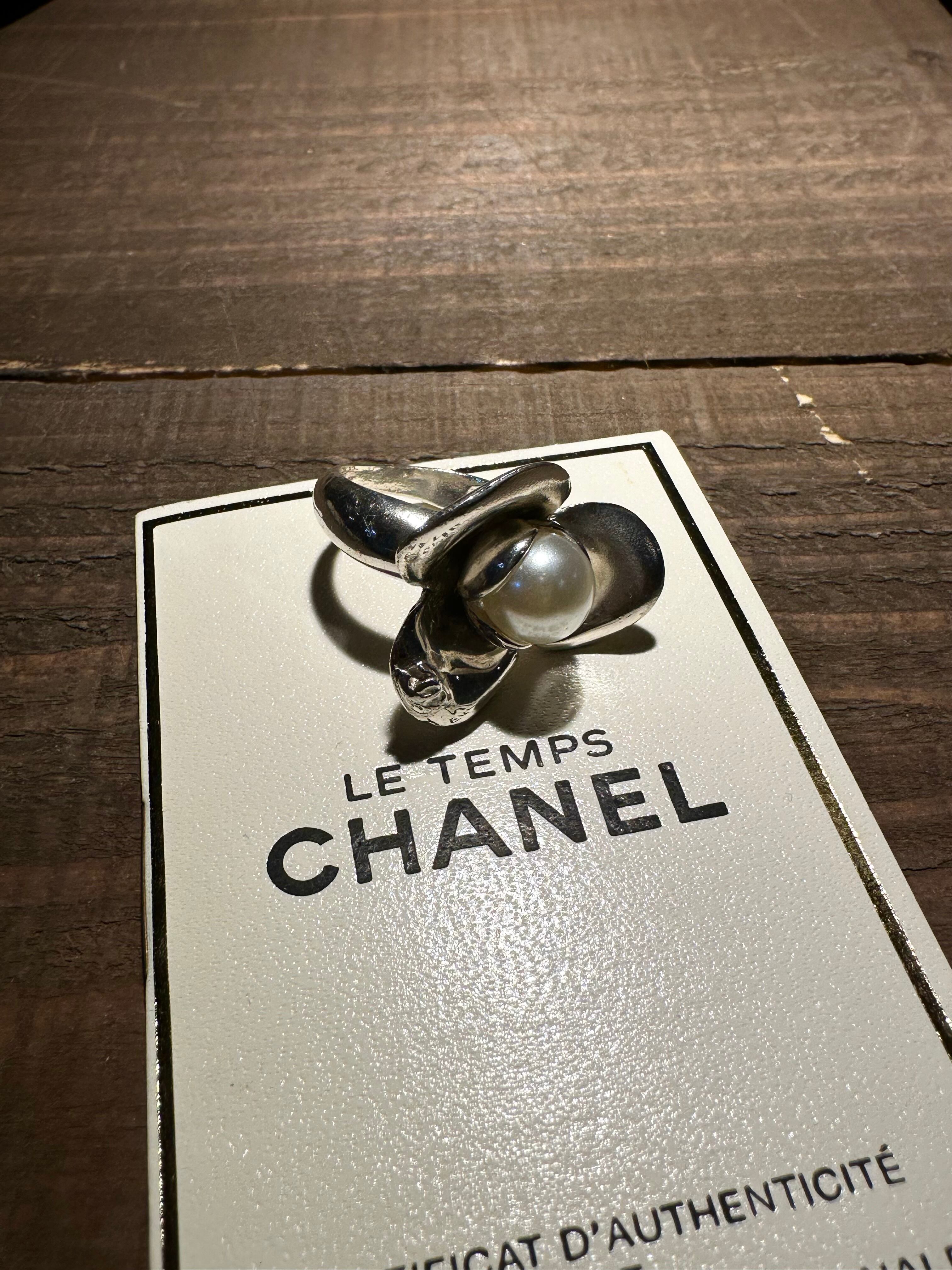 perl × camellia motif silver ring