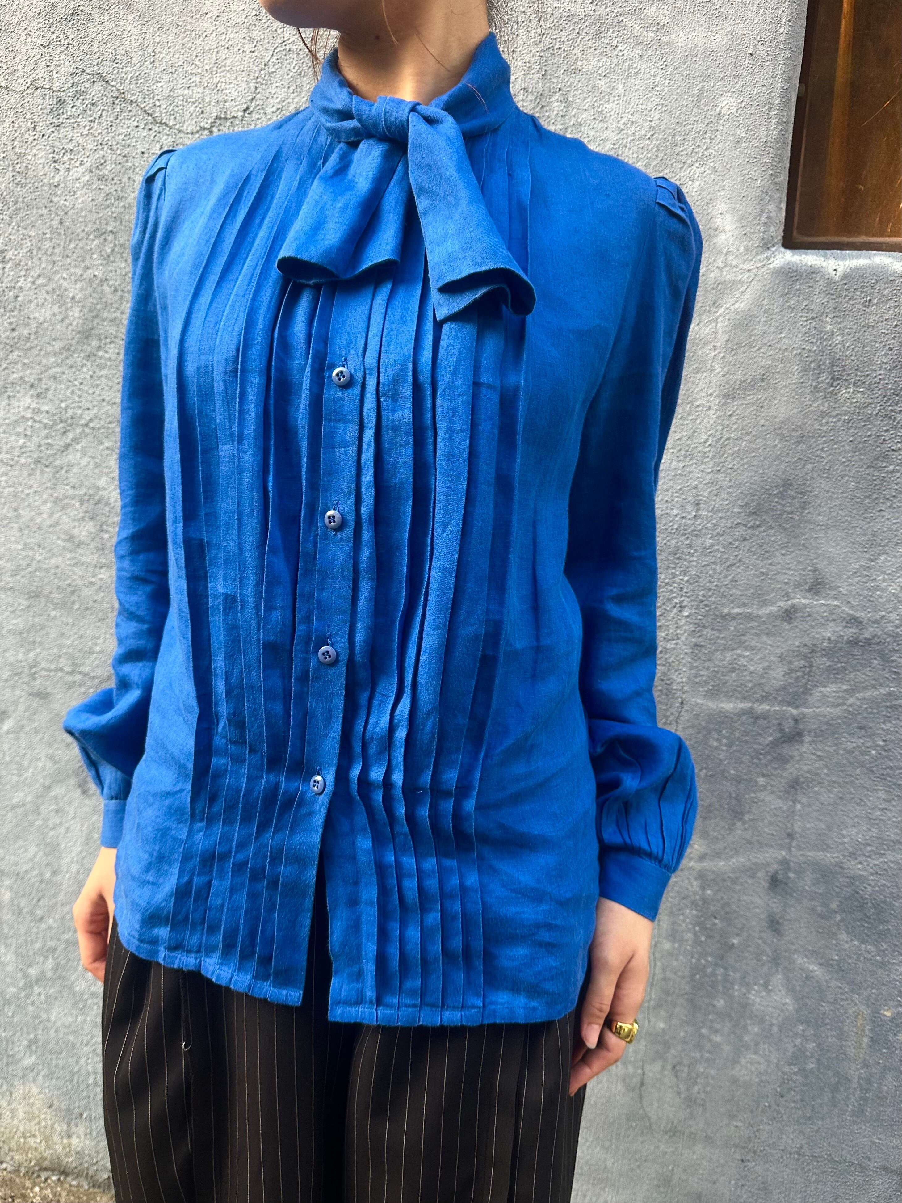 Salvatore Ferragamoより深みのあるロイヤルブルーが素敵なボウタイブラウスをご紹介。