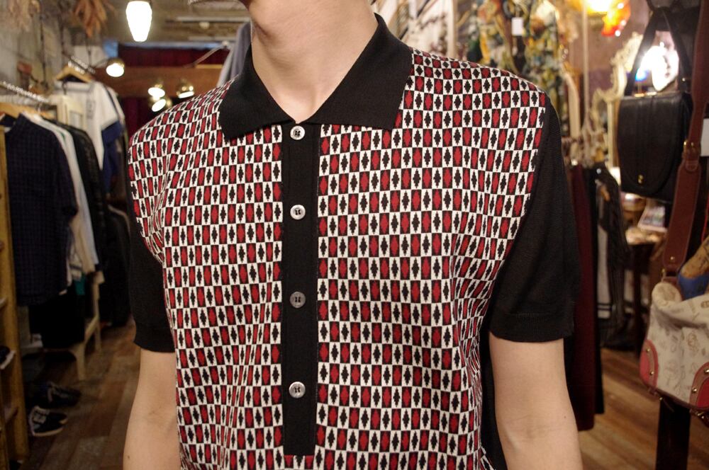 トランプカラーでダイヤ柄が全面に編み込まれたGUCCIのハーフポロシャツ。