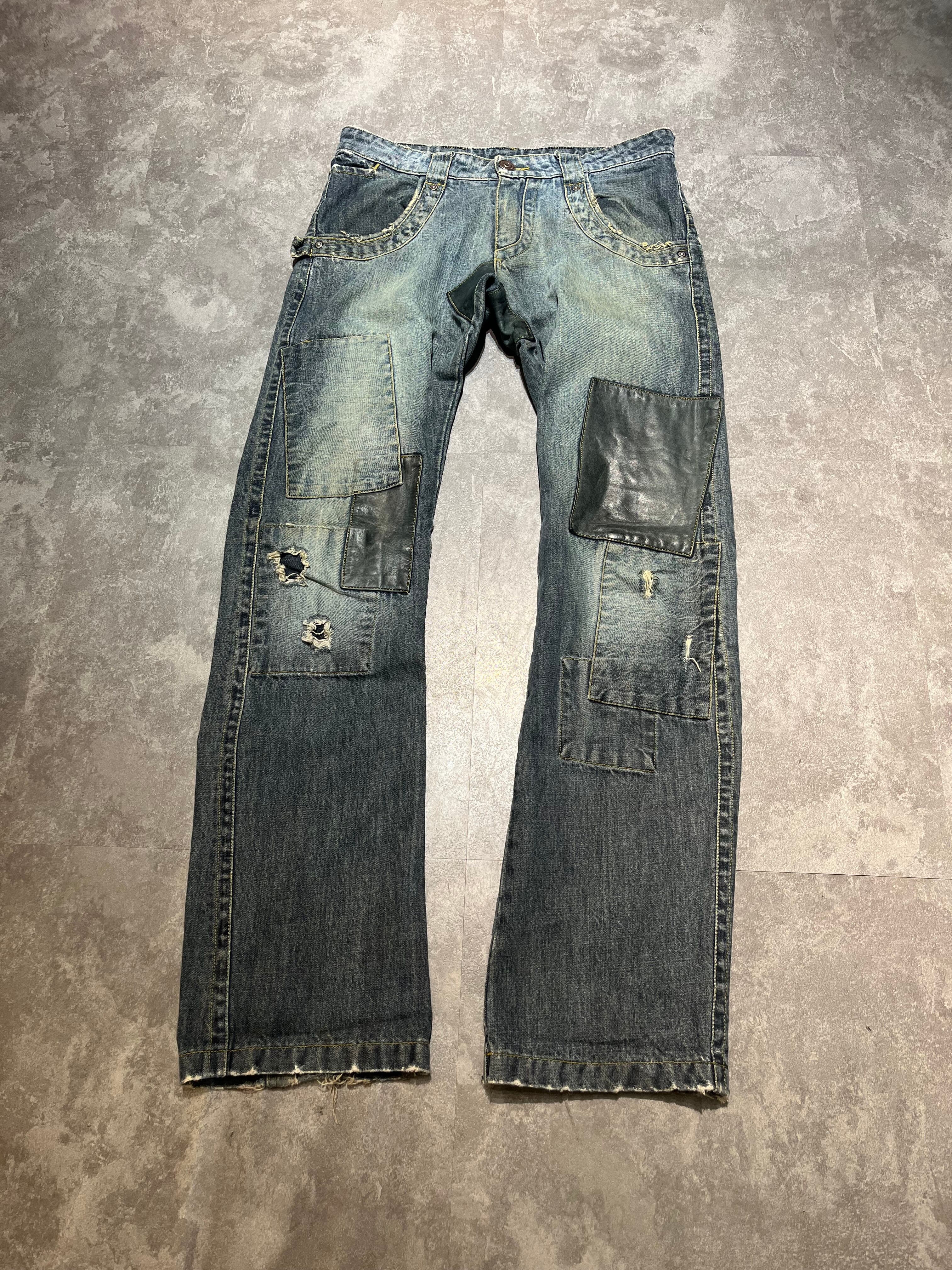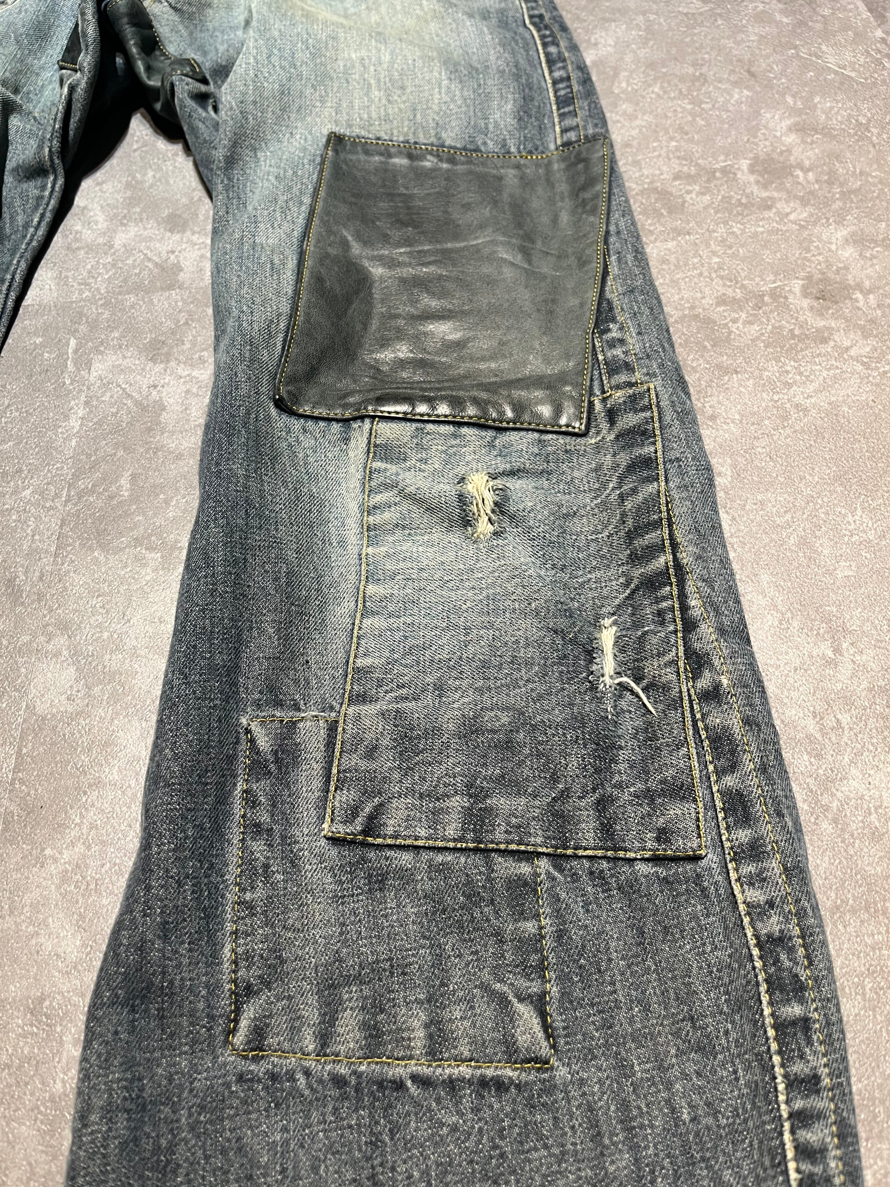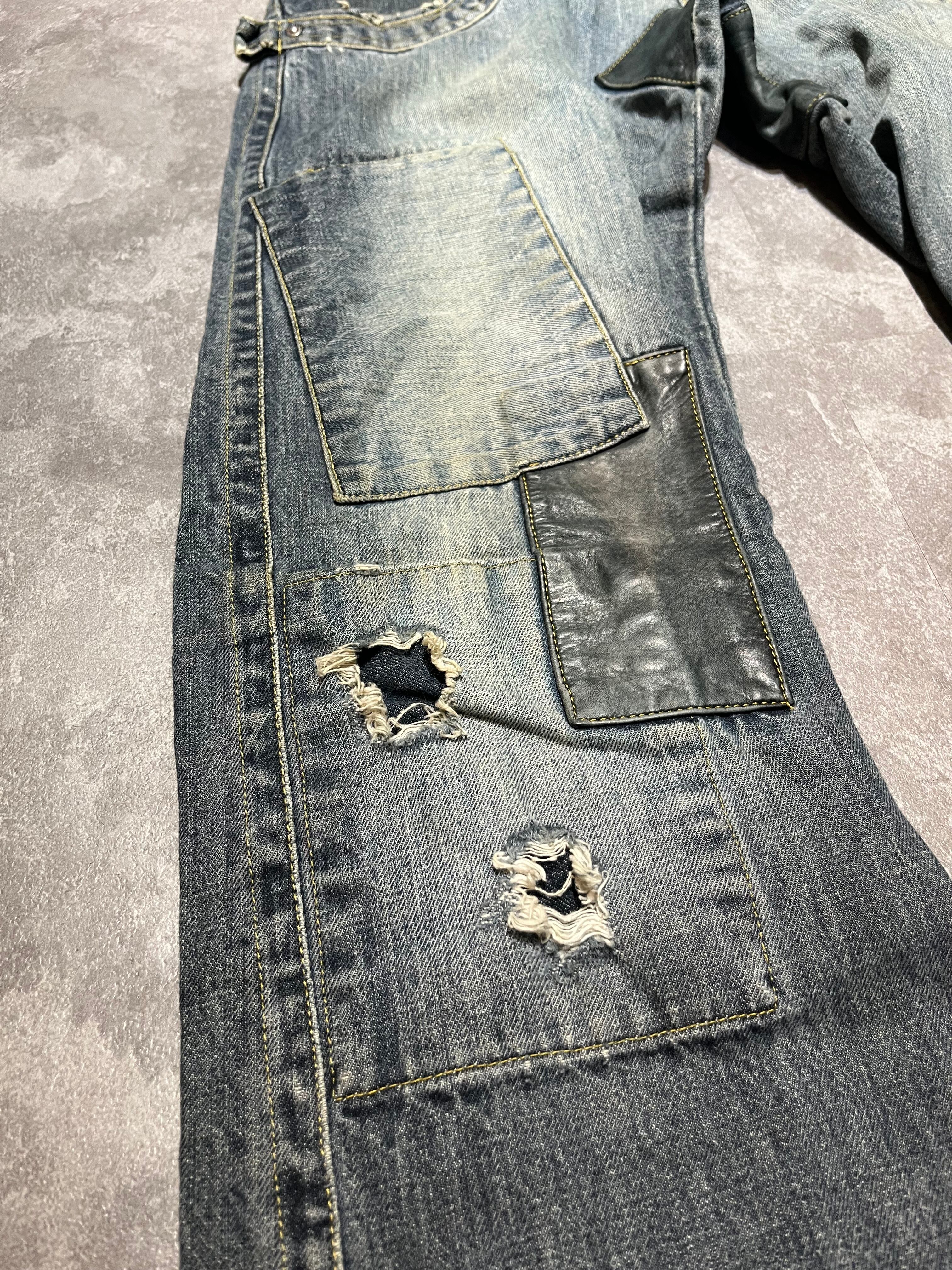 vintageアイテムよりレザーとのドッキングがセンス光るデニムパンツをご紹介。