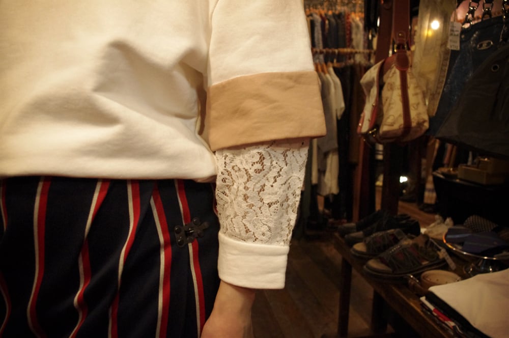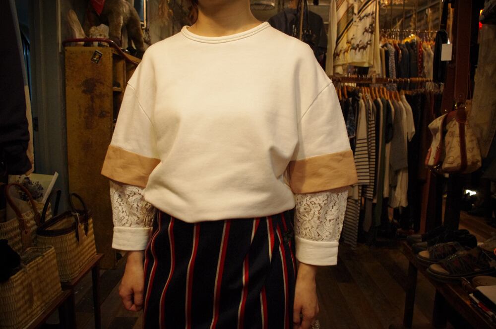 ストリートテイストな真っ白でクリーンなホワイトのコットン地に、ピンクベージュのレースを袖に挟み込んだN゜21らしいエレガントさとフェミニンさをプラス。