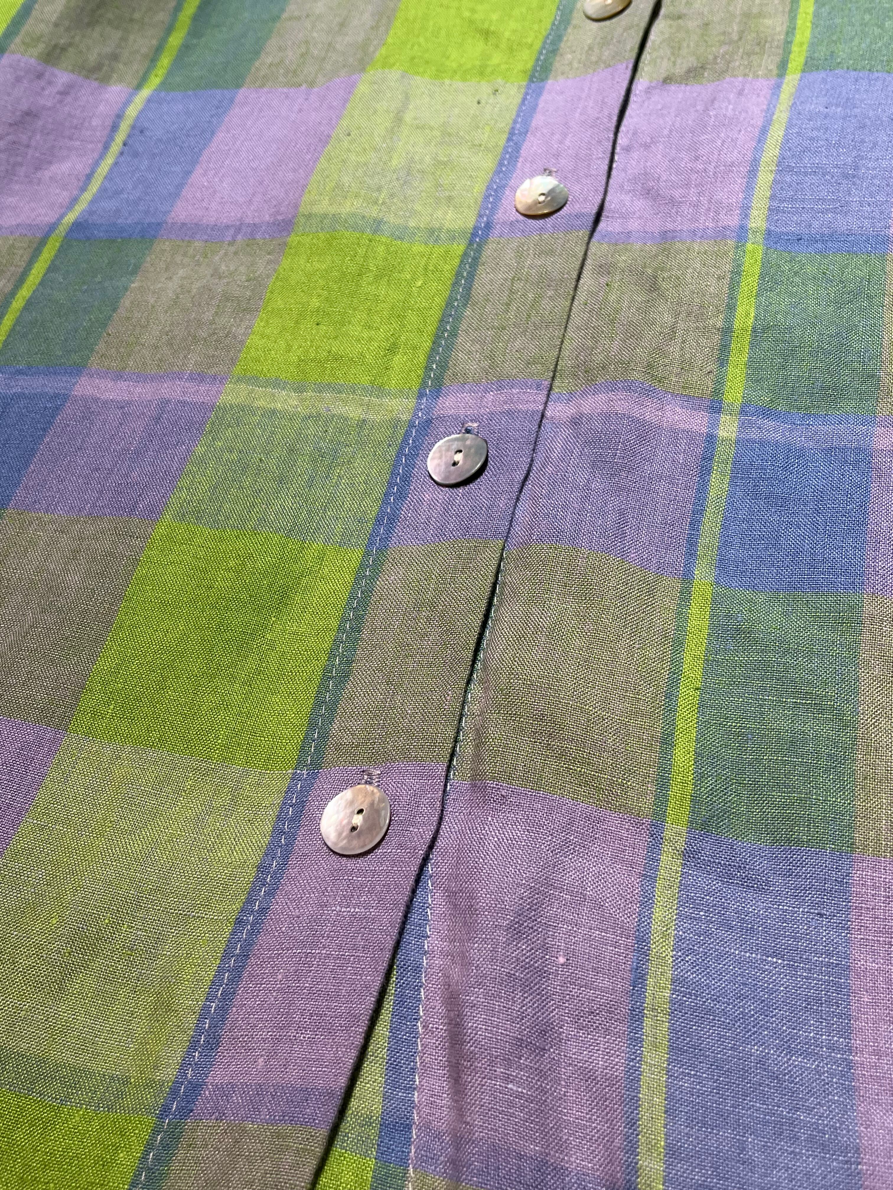 「EU 80〜90's vintage 」 green purple check pattern shirt