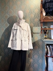 ミリタリージャケットを彷彿とさせる、大ぶりの4つのフラップポケットや袖口のストラップが特徴的。