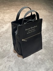 黒とネイビーのバイカラー。生地感のバランスも良く、白文字のロゴがクリアでアクネの品の良さと軽量に設計された普段使いにも持ってこいなアイコニックなバッグです。