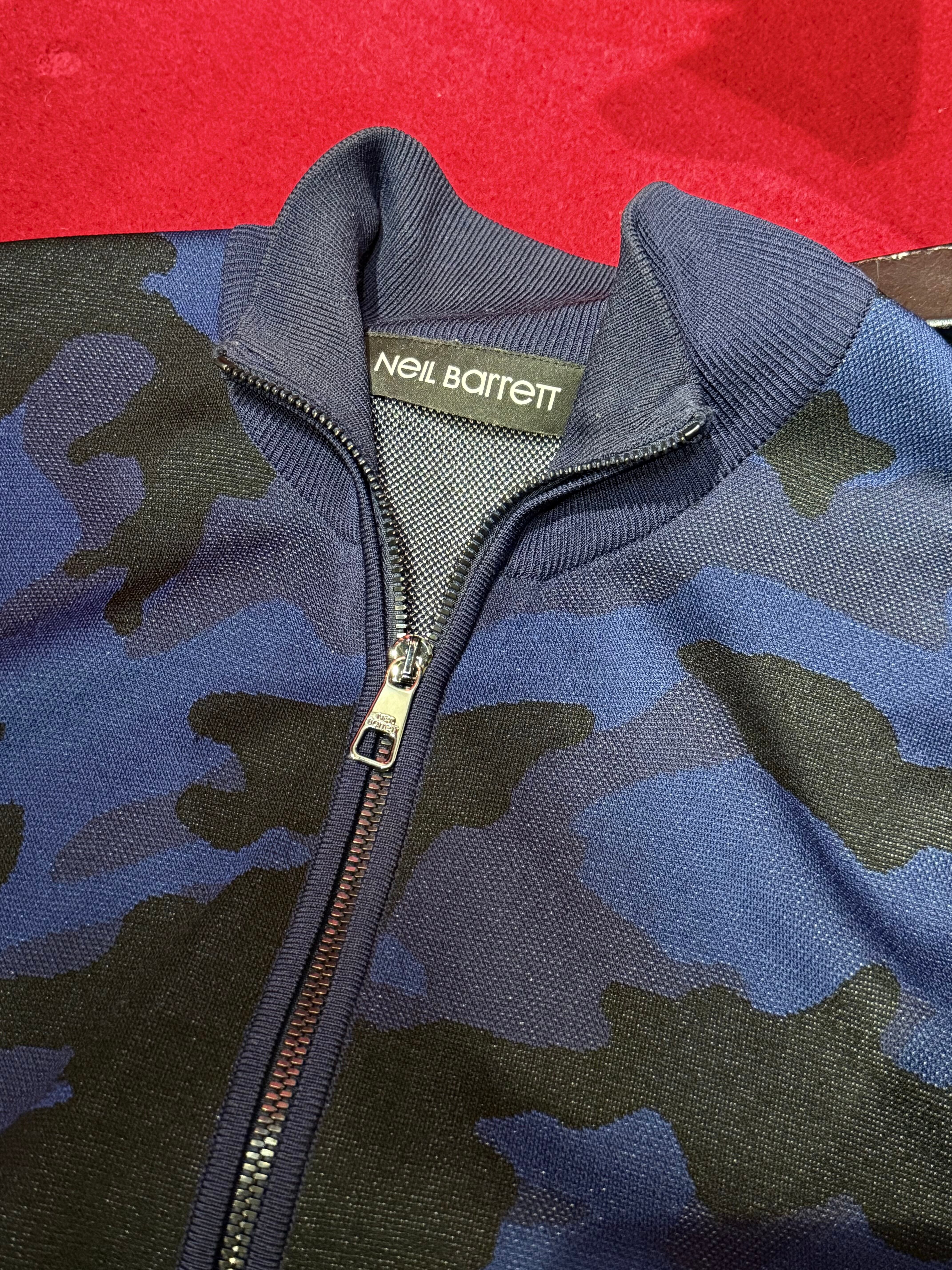 イギリスのファッションブランド、ニールバレットから、ネイビーカラーのニットブルゾンをご紹介します。