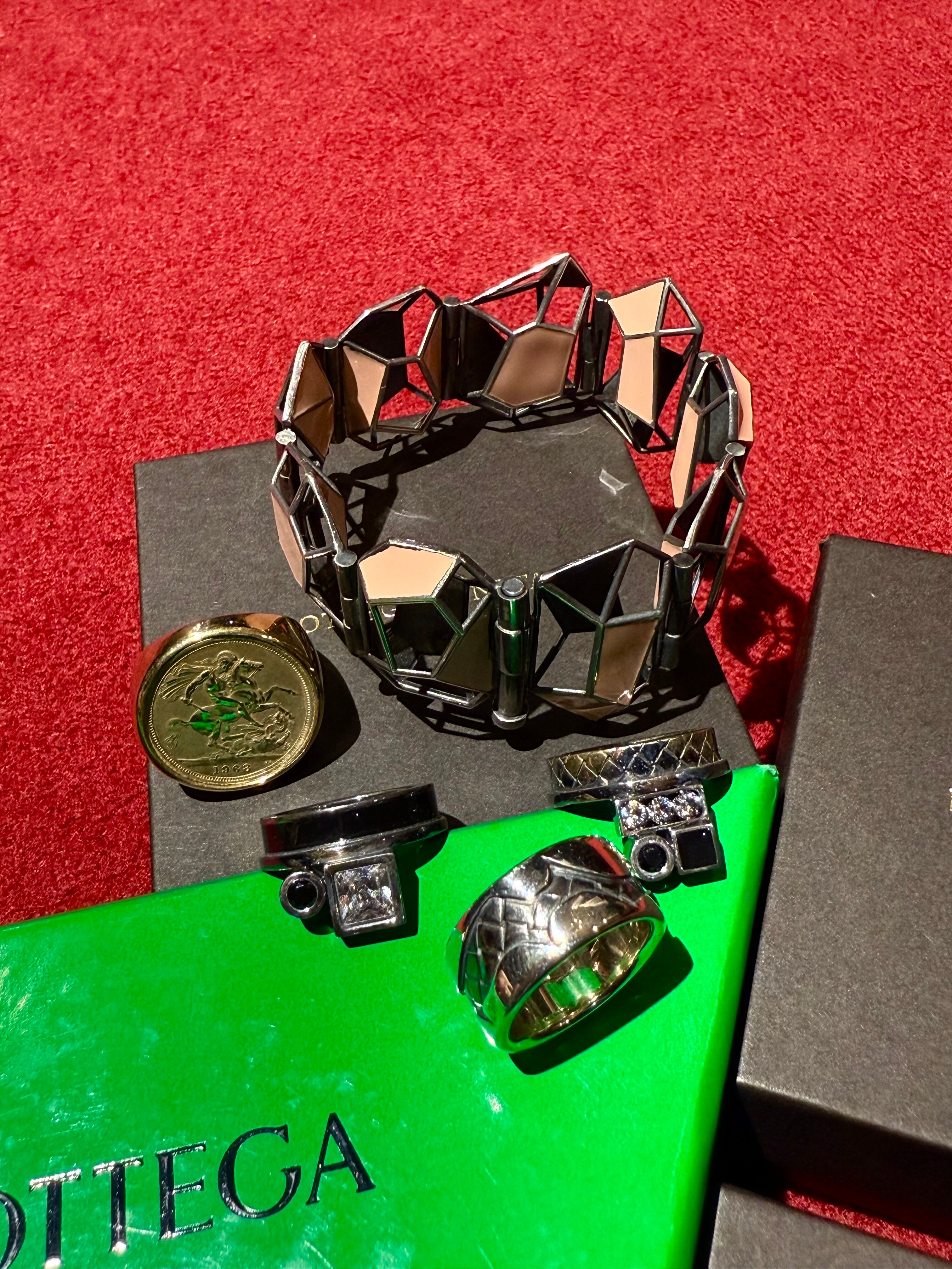〈Bottega Veneta(ボッテガ・ヴェネタ)〉より、燻加工を施したスタイリッシュなデザインのシルバーリングをご紹介します。