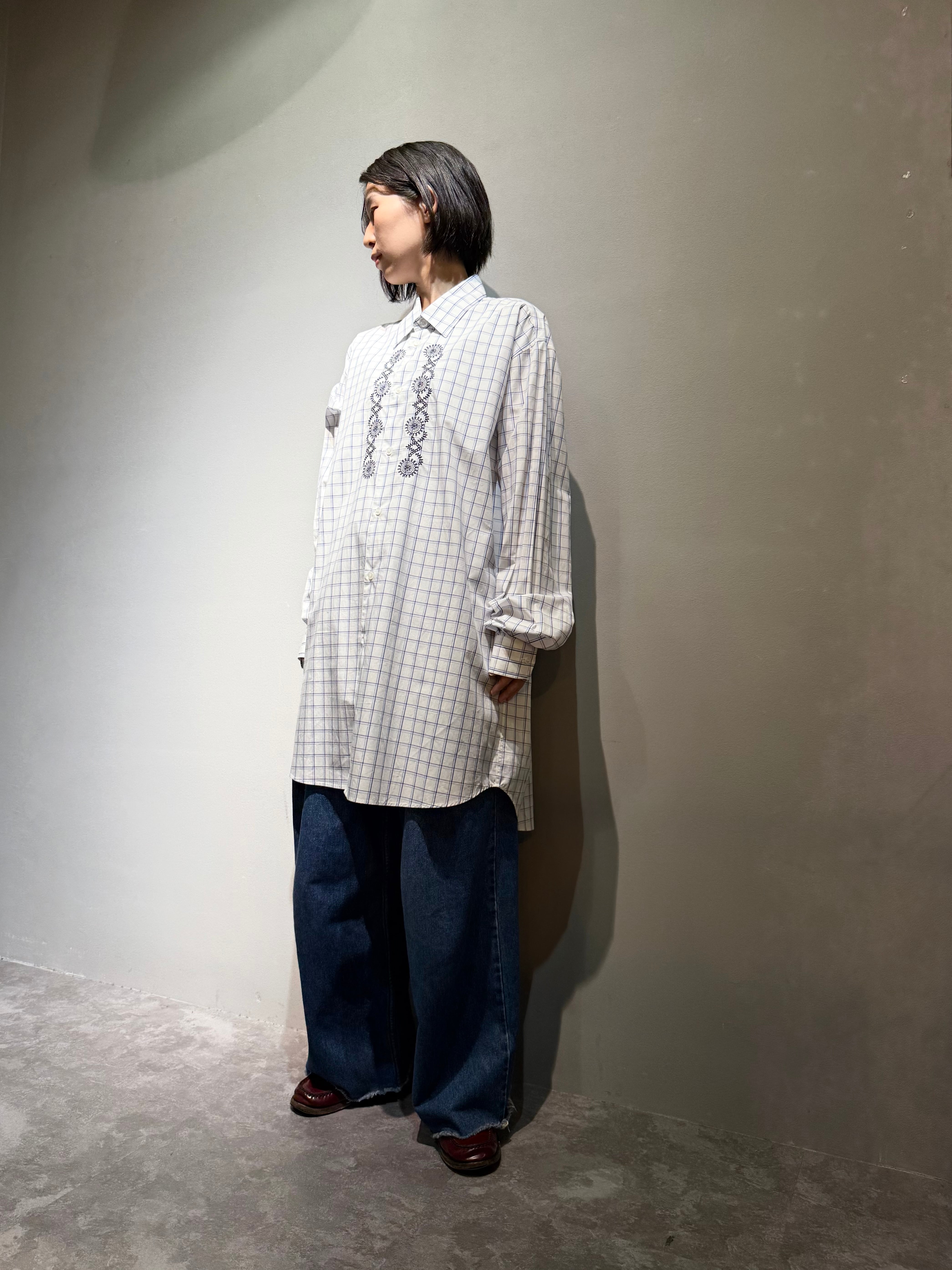 embroidery design check shirt one-piece