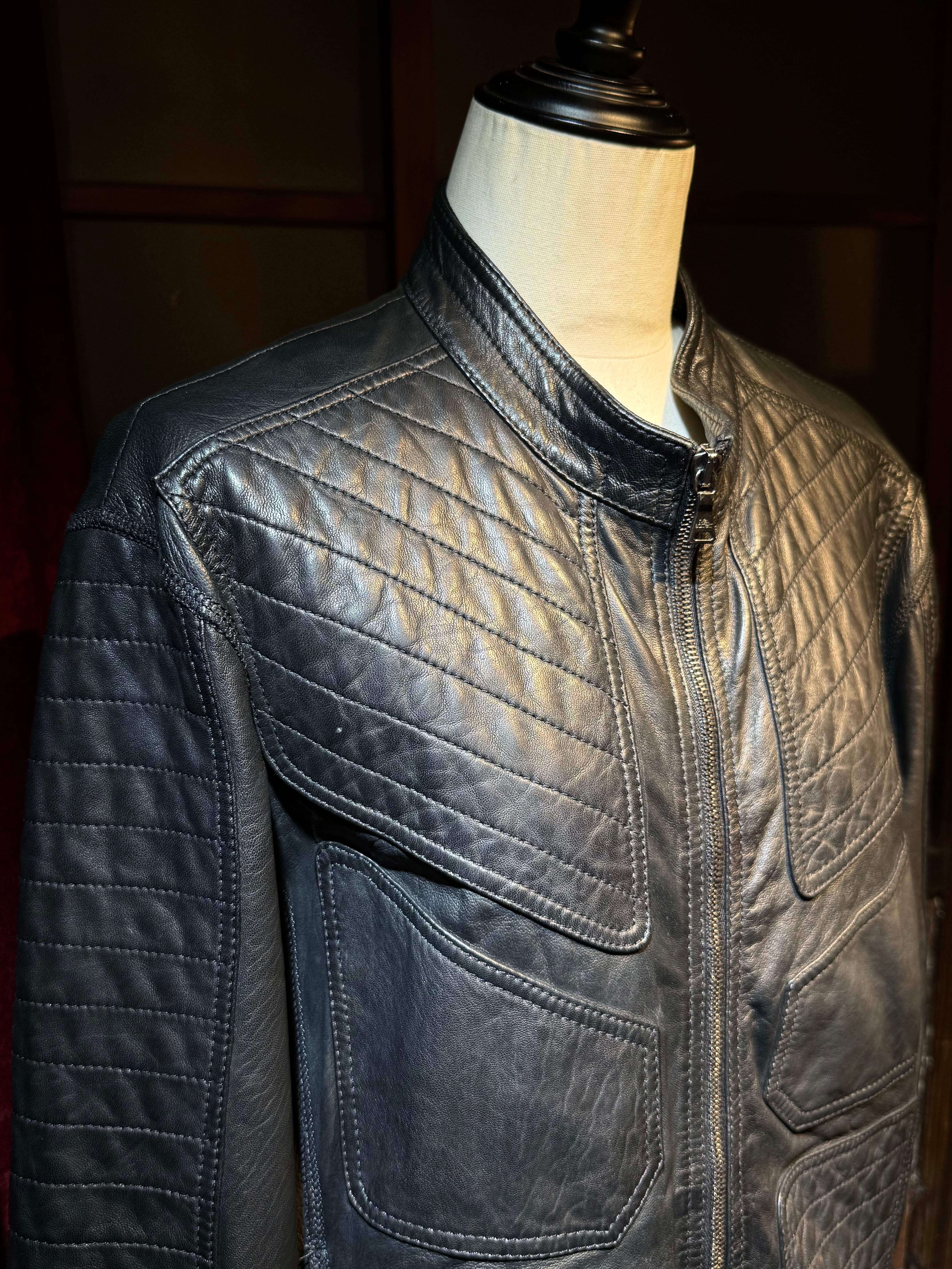 イギリスのファッションブランド、ニール・バレットから、切り替えとステッチワークが特徴的なレザーバイカージャケットをご紹介します。