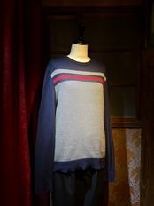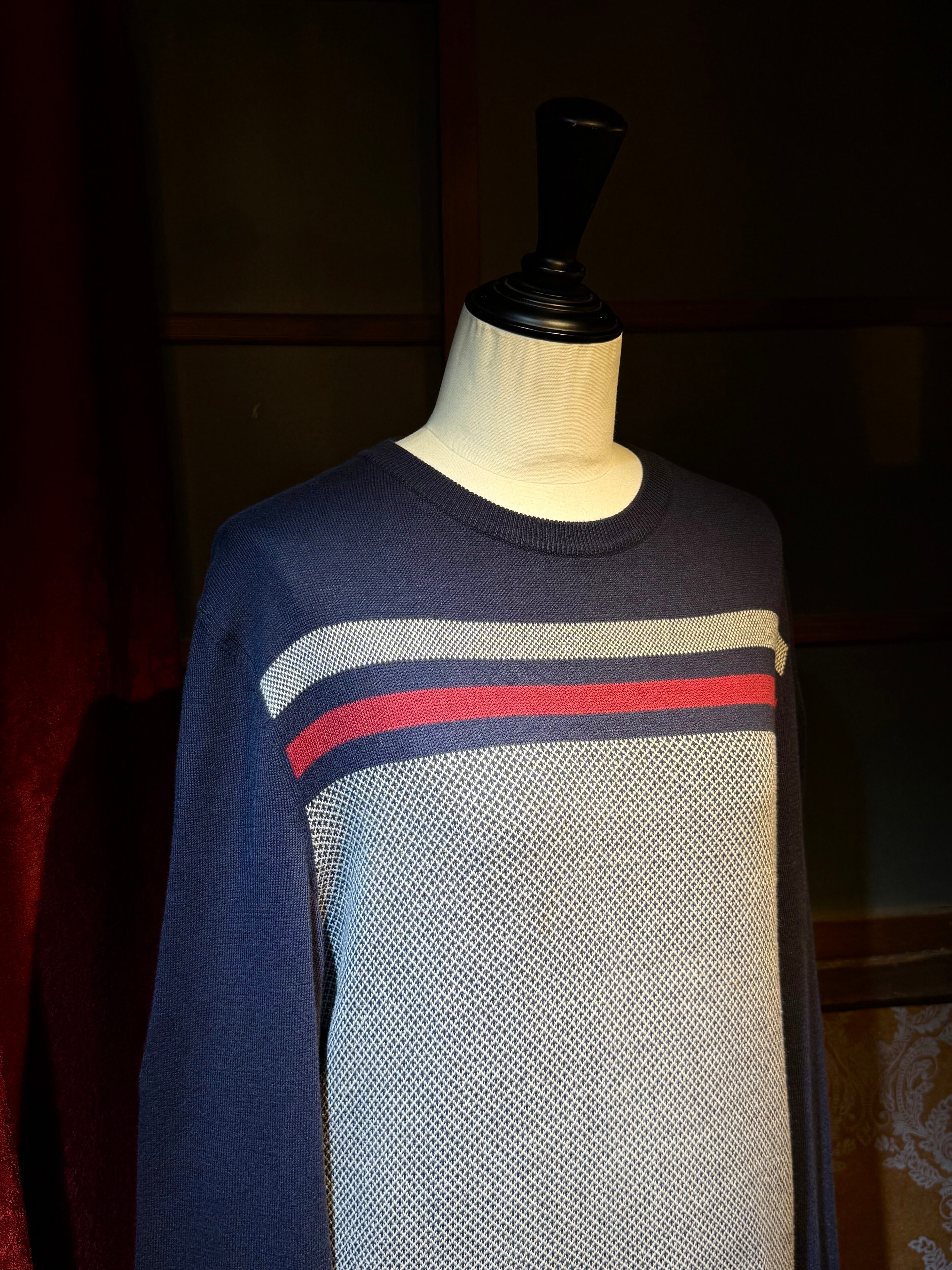 GUCCIを象徴する赤いラインといえば緑×赤を想像する方が多いかと思われますが、こちらはネイビー×赤のシェリーラインがデザインされたニットです。