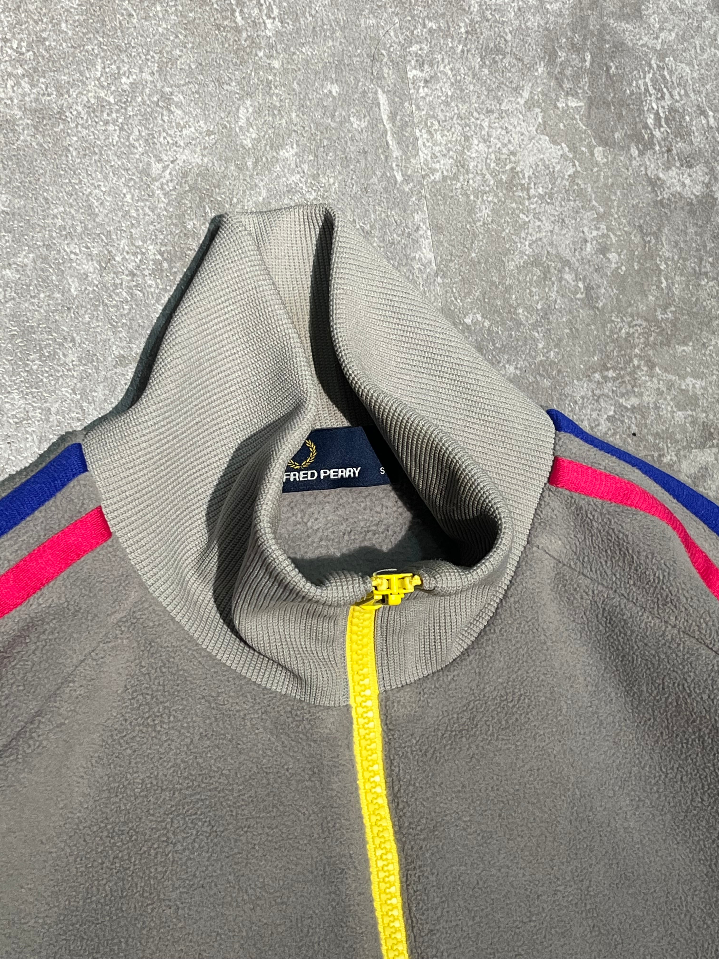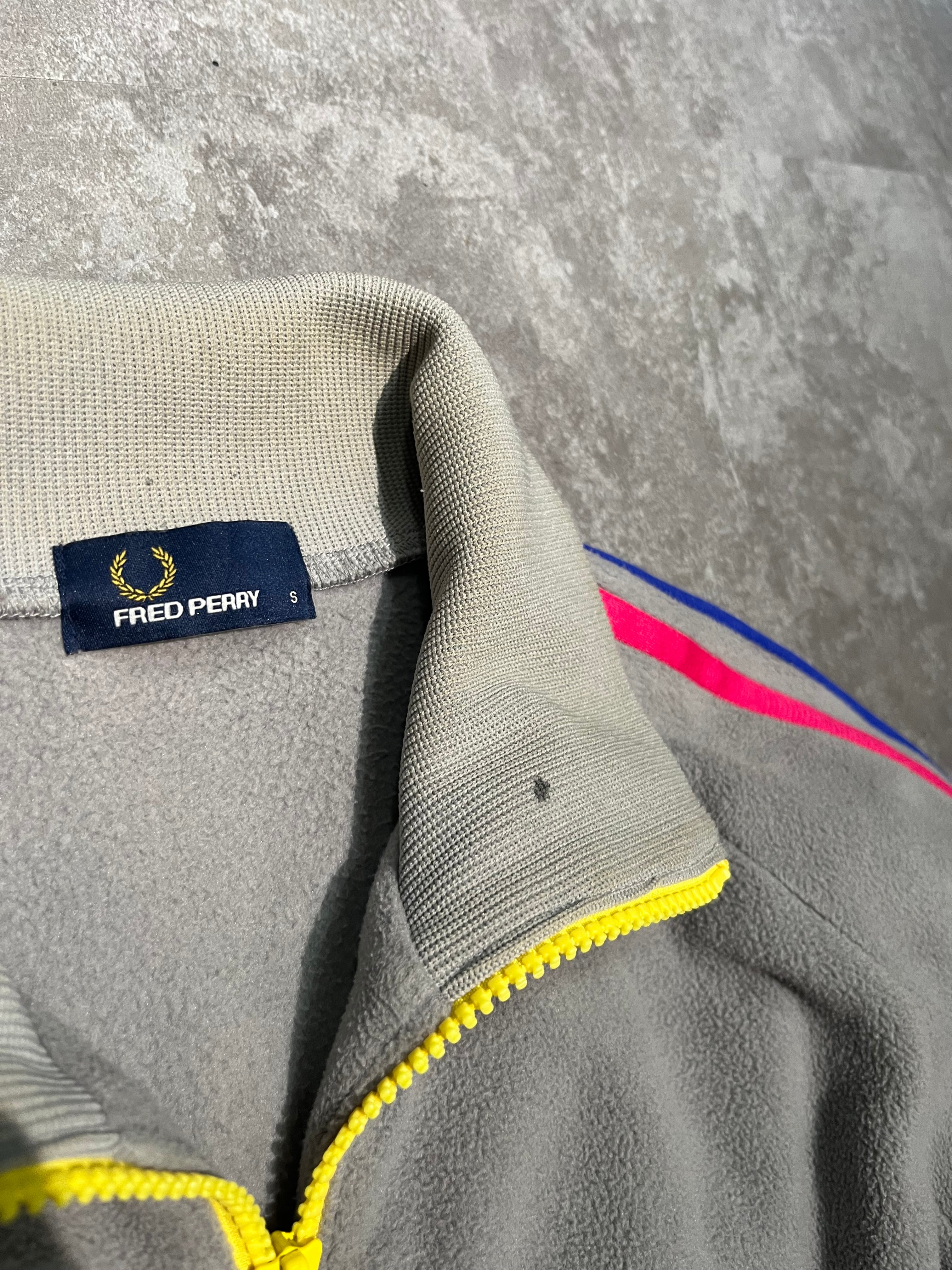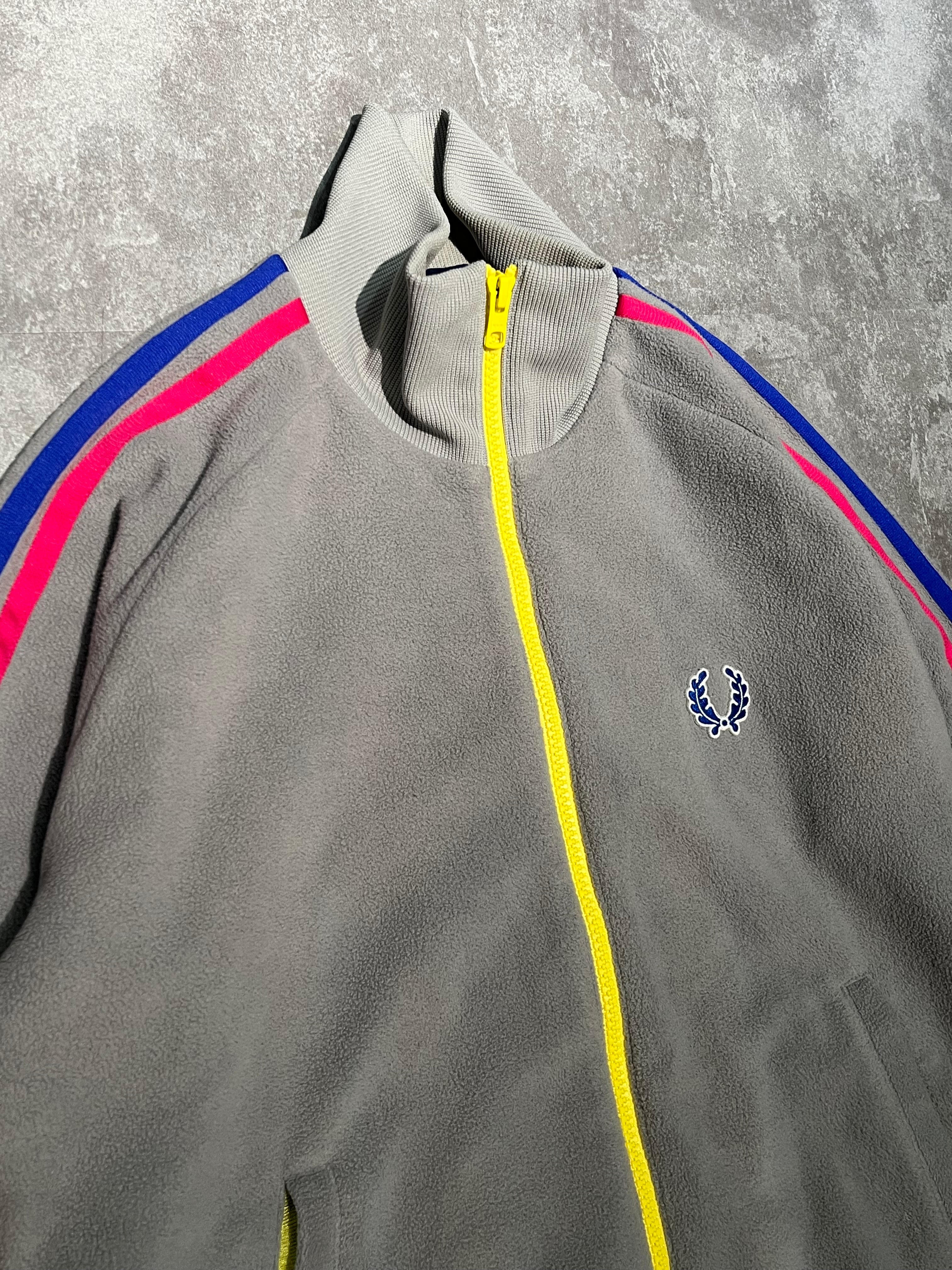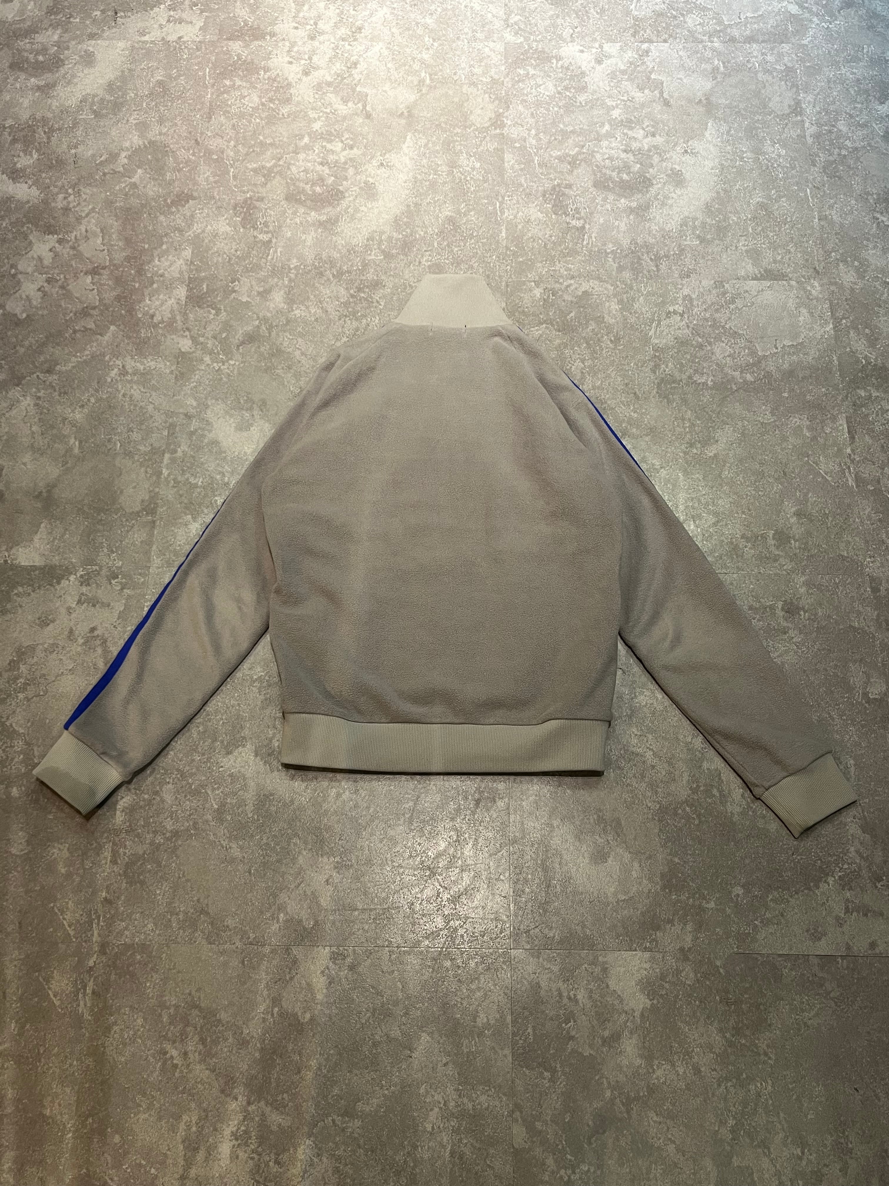 今回ご紹介するのは、グレーのフリースのベースに蛍光のラインとファスナーがよく映えるジャージ。
