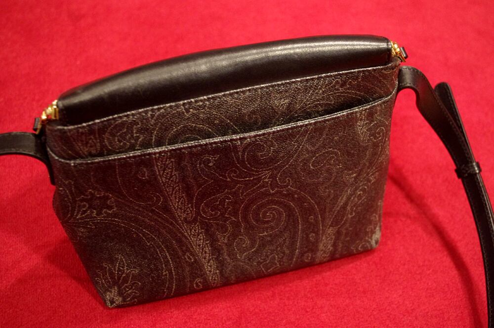 2018春夏大注目のPVCレザーに、アイコンのペイズリーをしっかりプリントしたETROのショルダーバッグ。