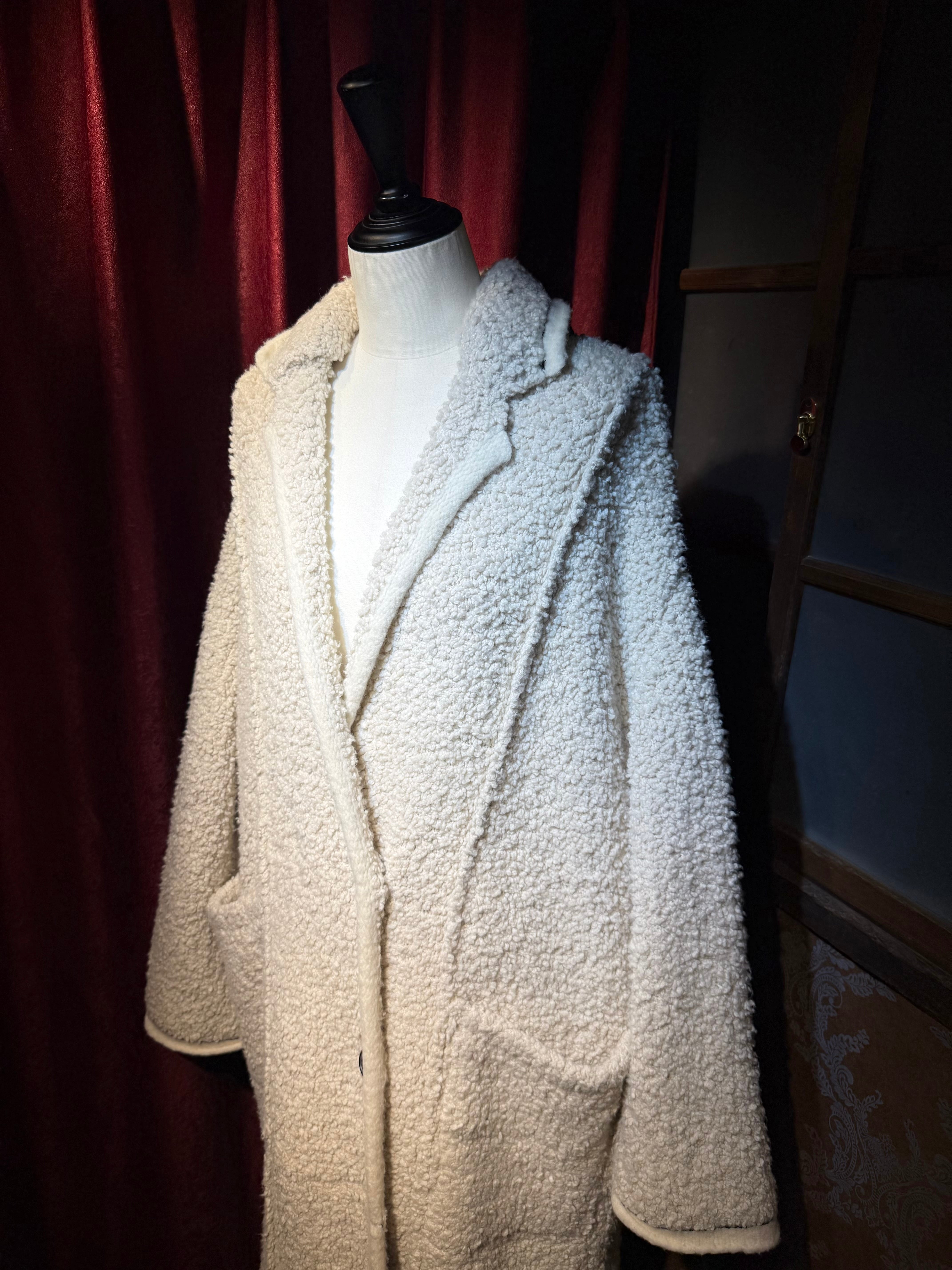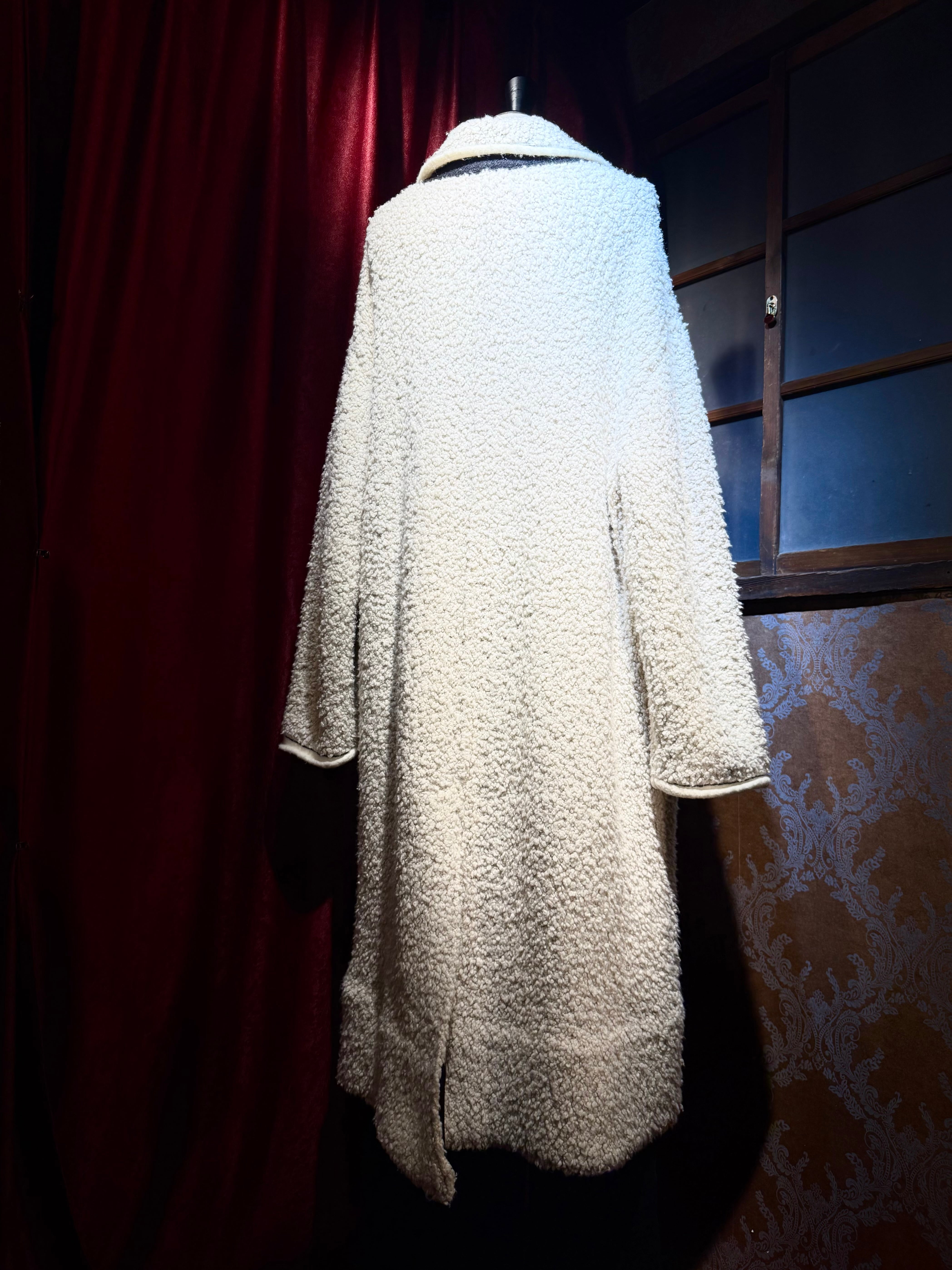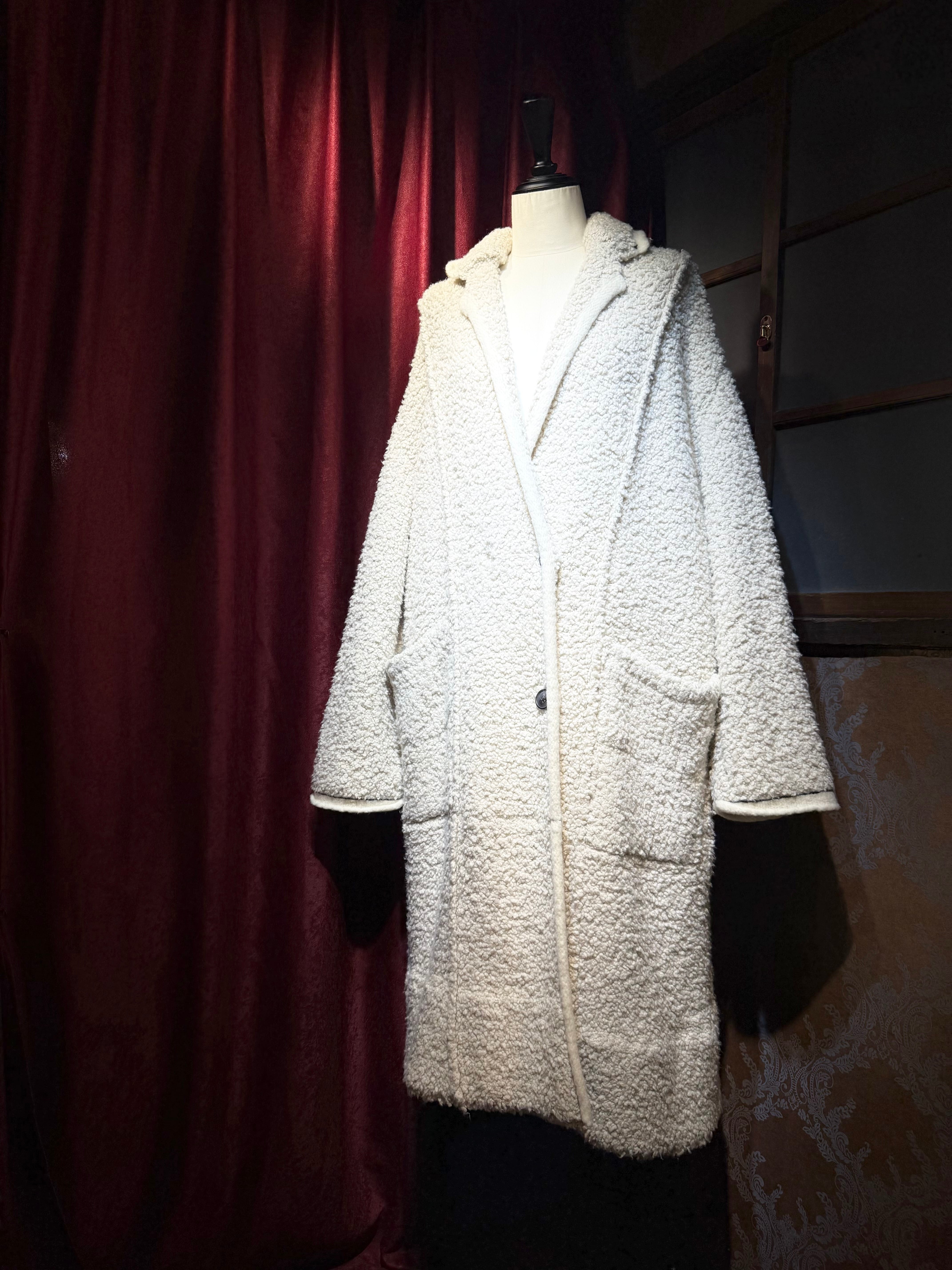 ナイロン・ウール・レーヨンを絶妙にブレンドしたニットボア素材は、ふんわりとした柔らかさと温もりを感じさせる着心地。優しいアイボリーカラーが、冬の装いに上品なあたたかみを添えてくれます。