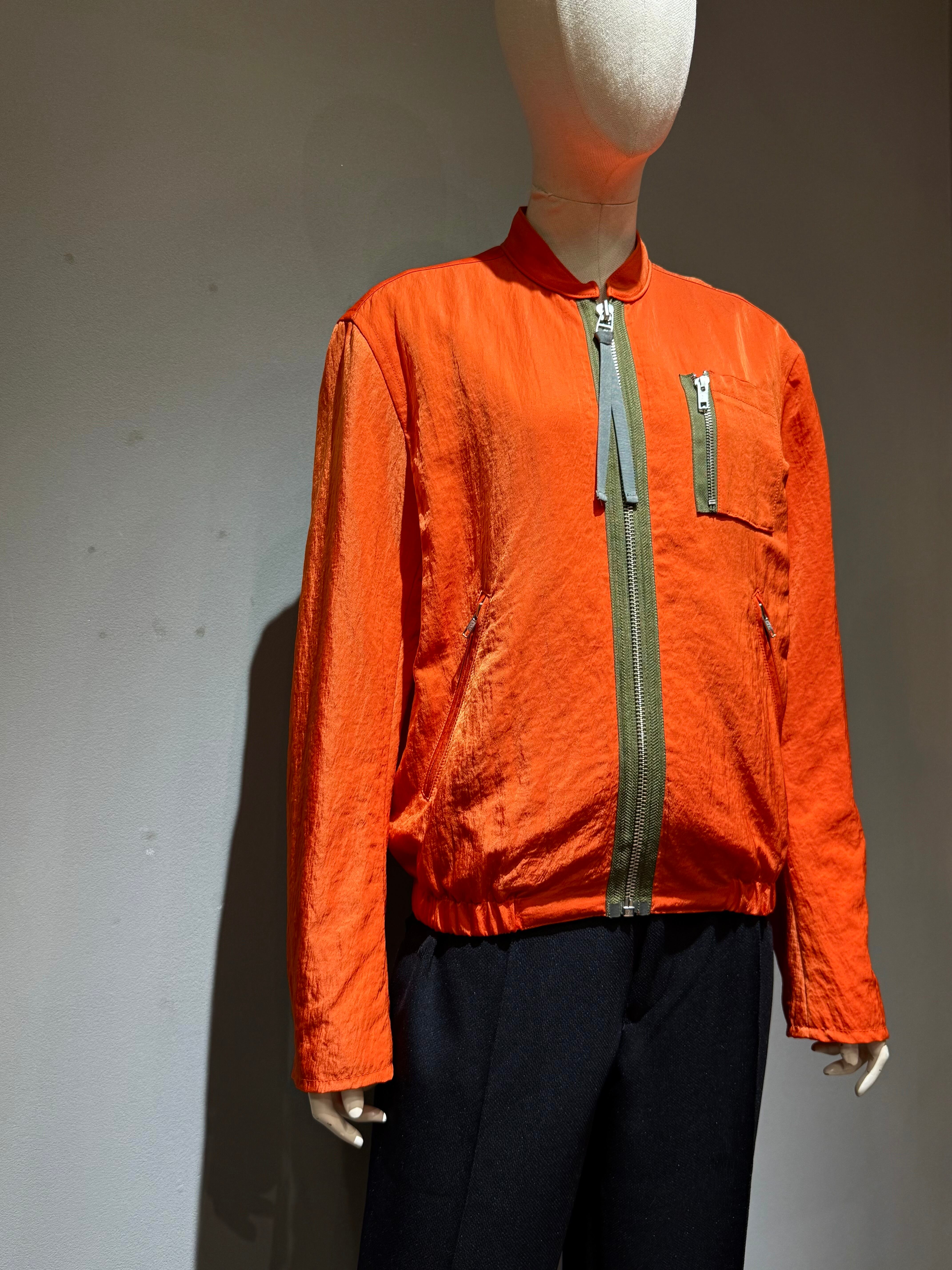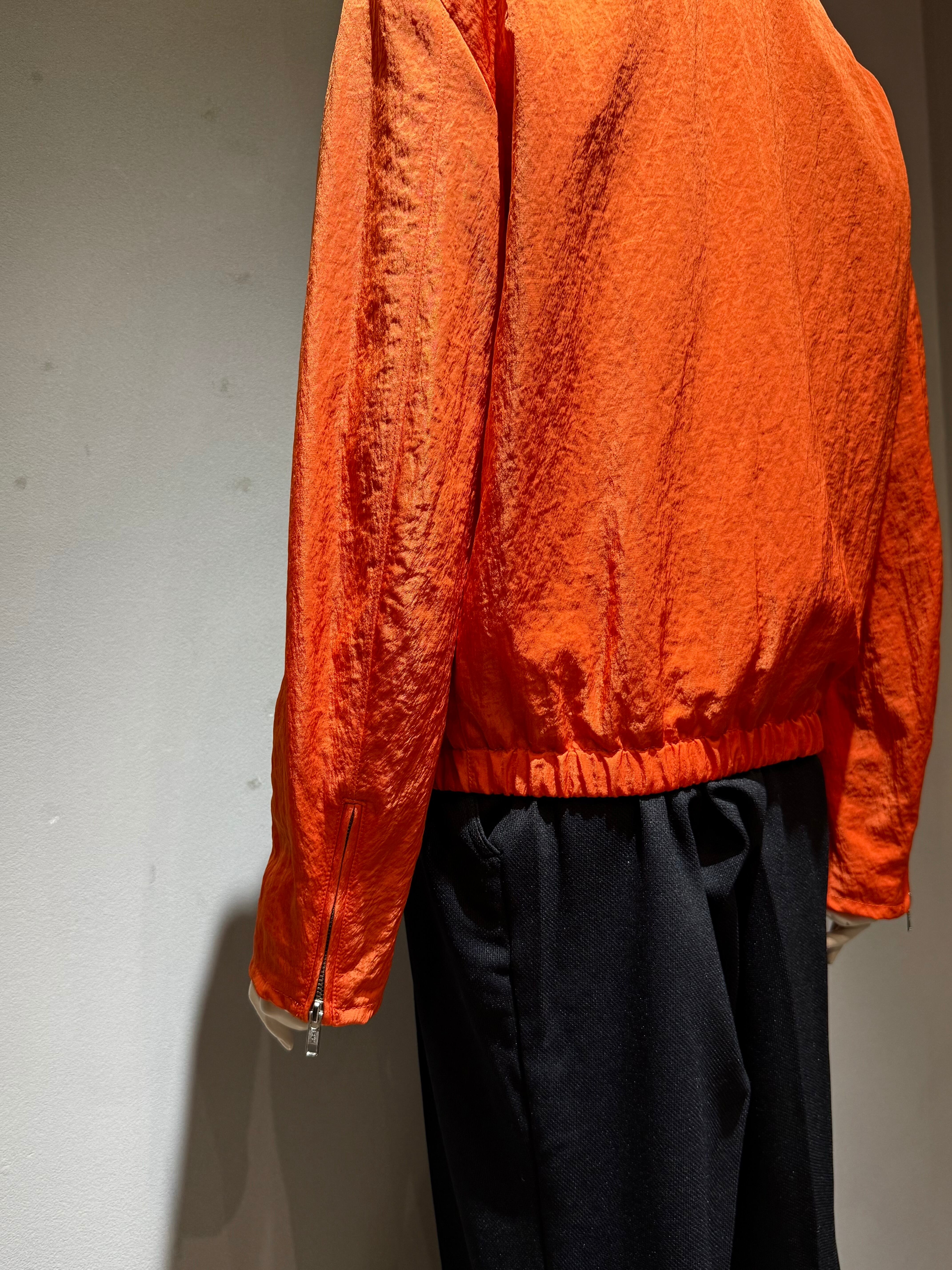 orange color nylon design zip-up blouson