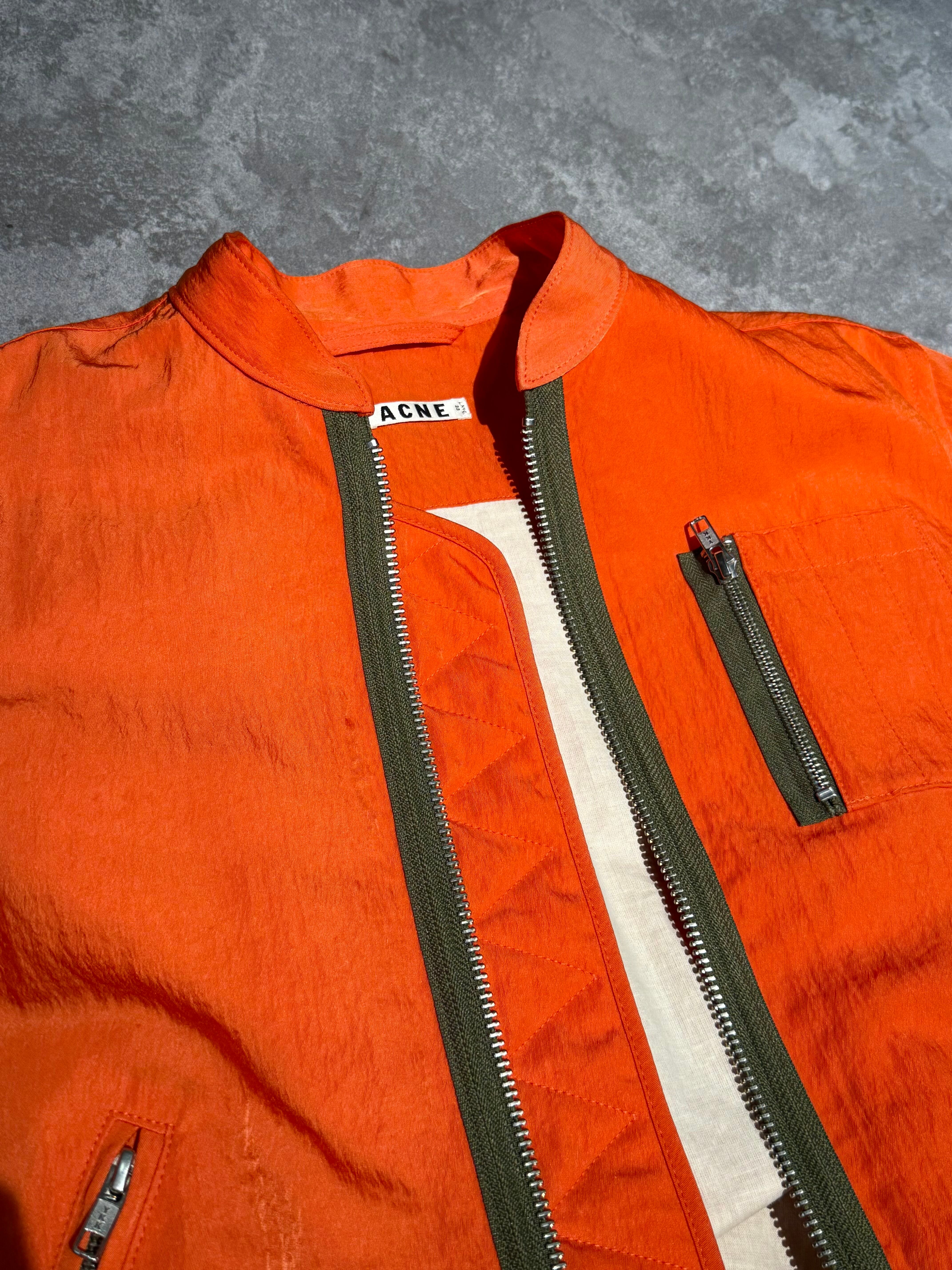 ミリタリーのMA-1モチーフに光沢感のある鮮やかなオレンジが印象的で、アクネらしいミニマルなデザインながらもフレッシュなインパクトを与える一着。