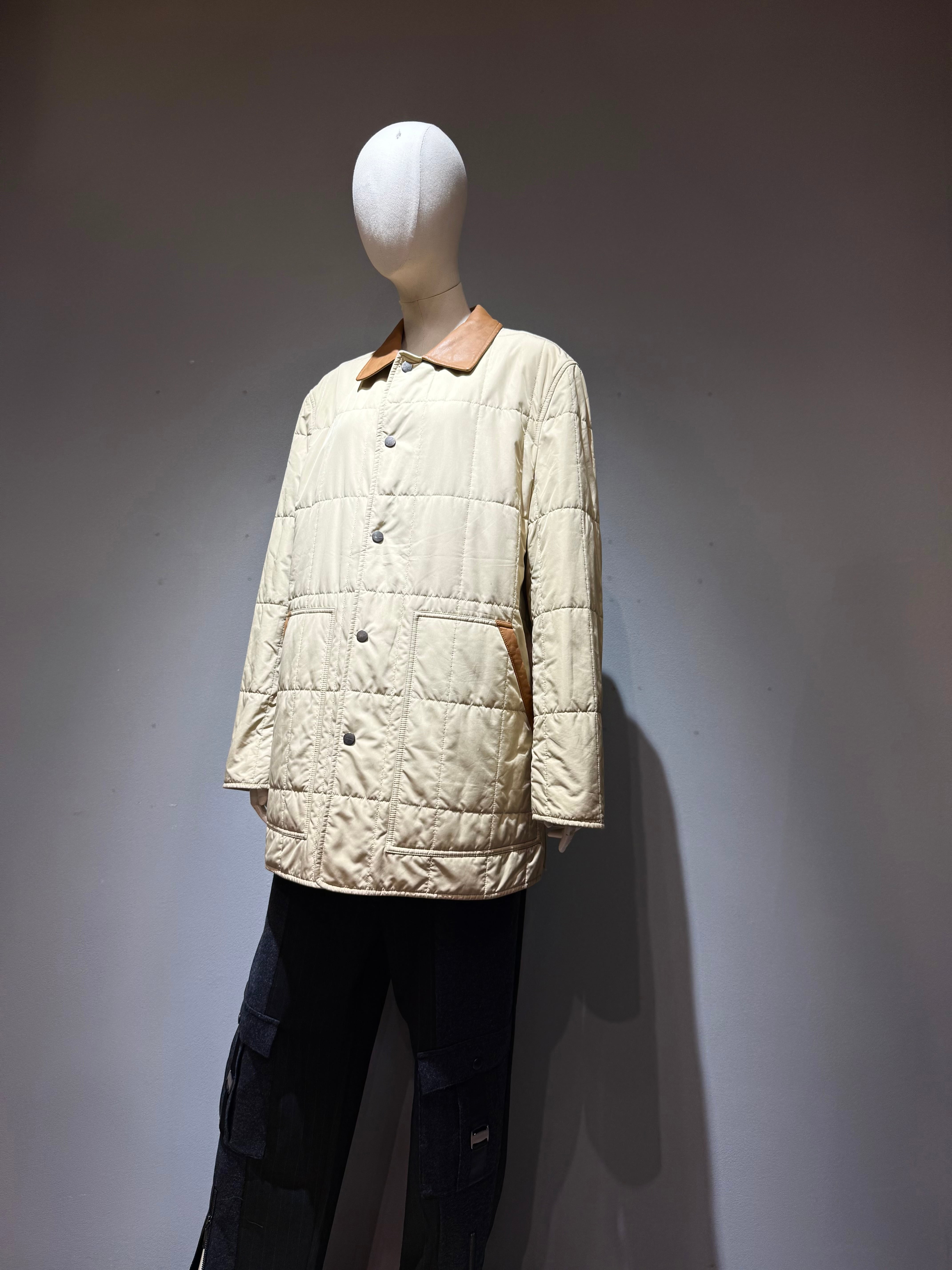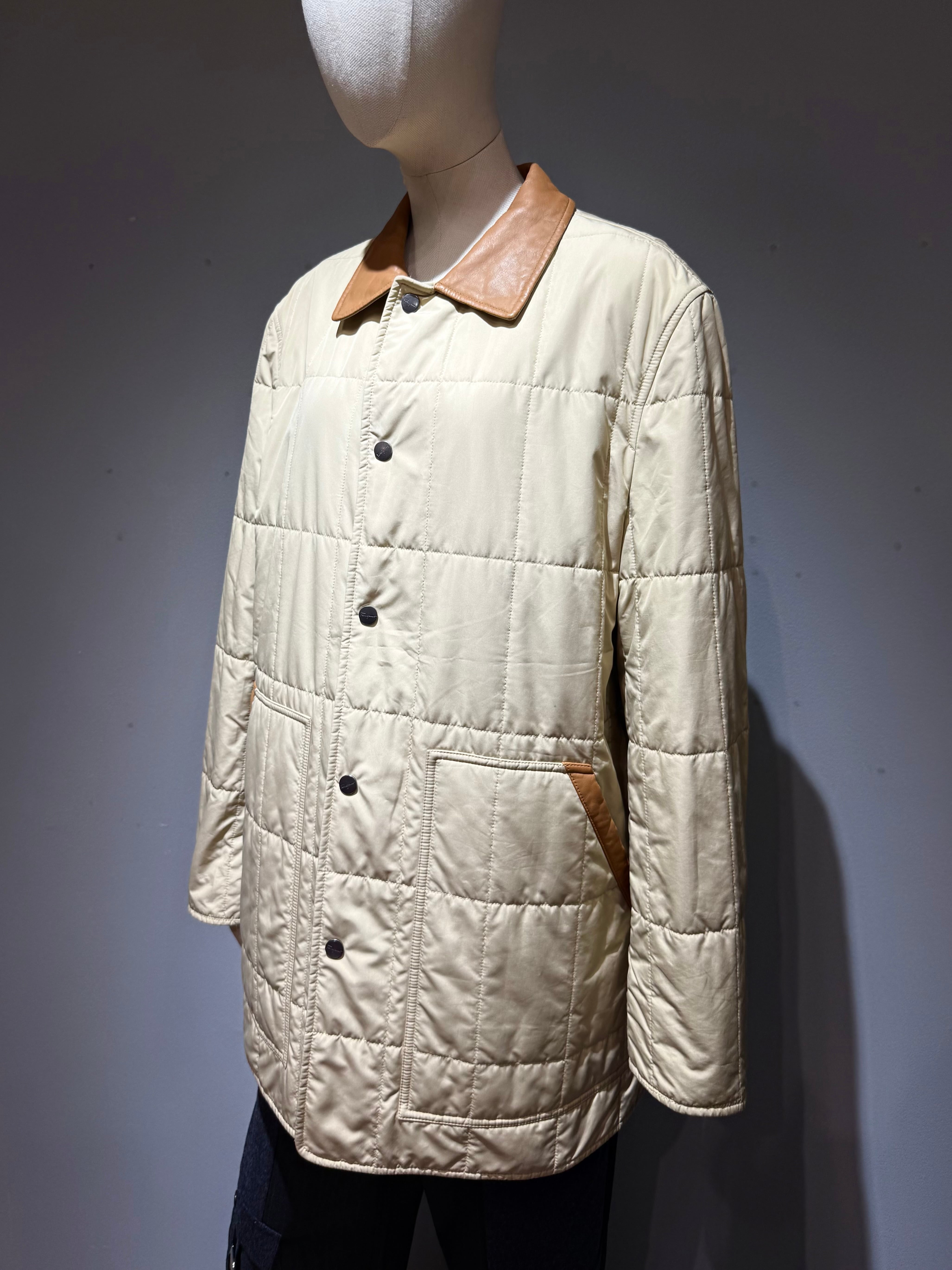 キルティングとは思えないすっきりとしたシルエットと柔らかなベージュと秋色のブラウンがオータムなニュアンス。