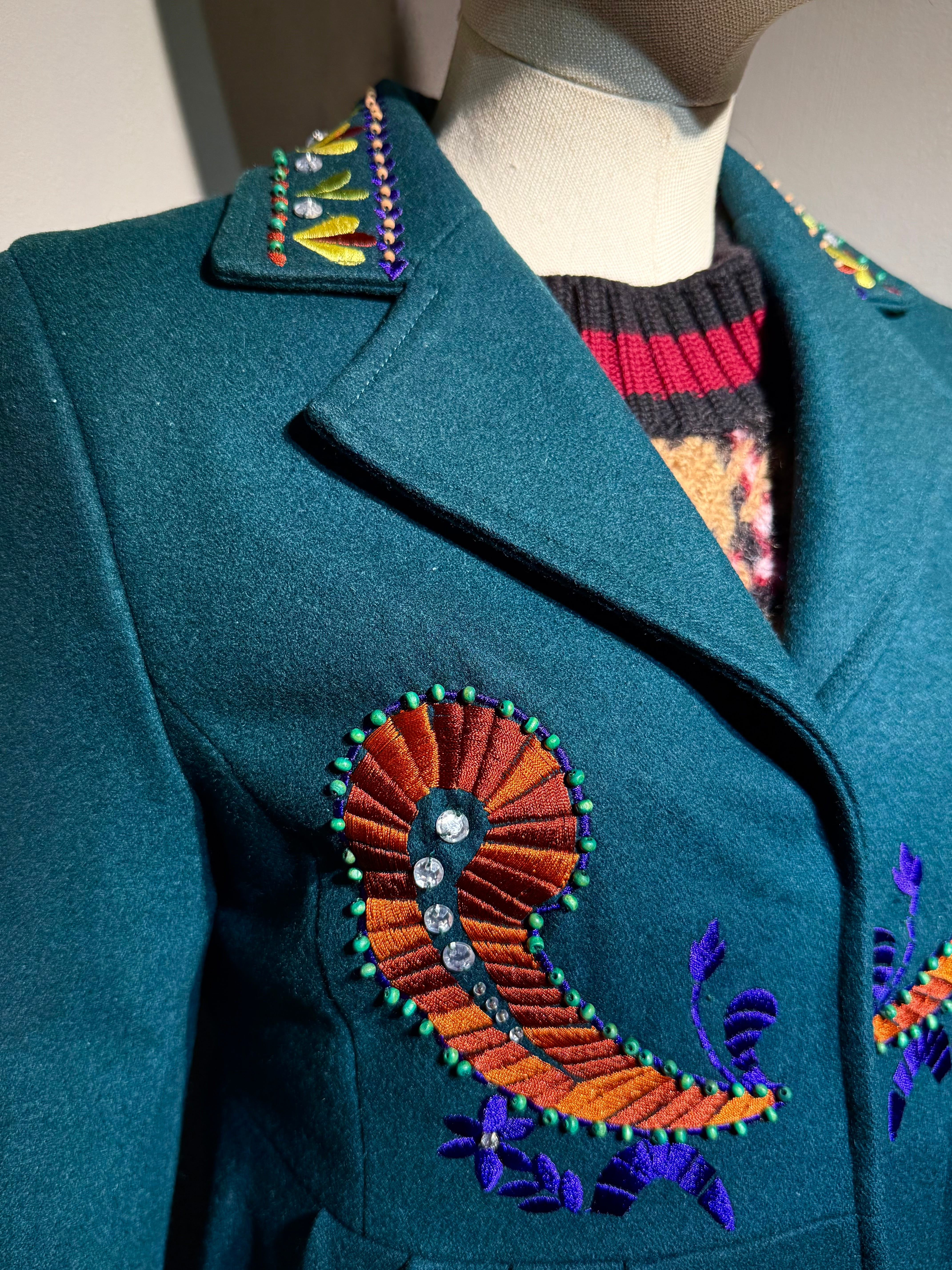 ペイズリー調のモチーフやビーズ装飾は、どの角度から見ても職人技が光る華やかさです。