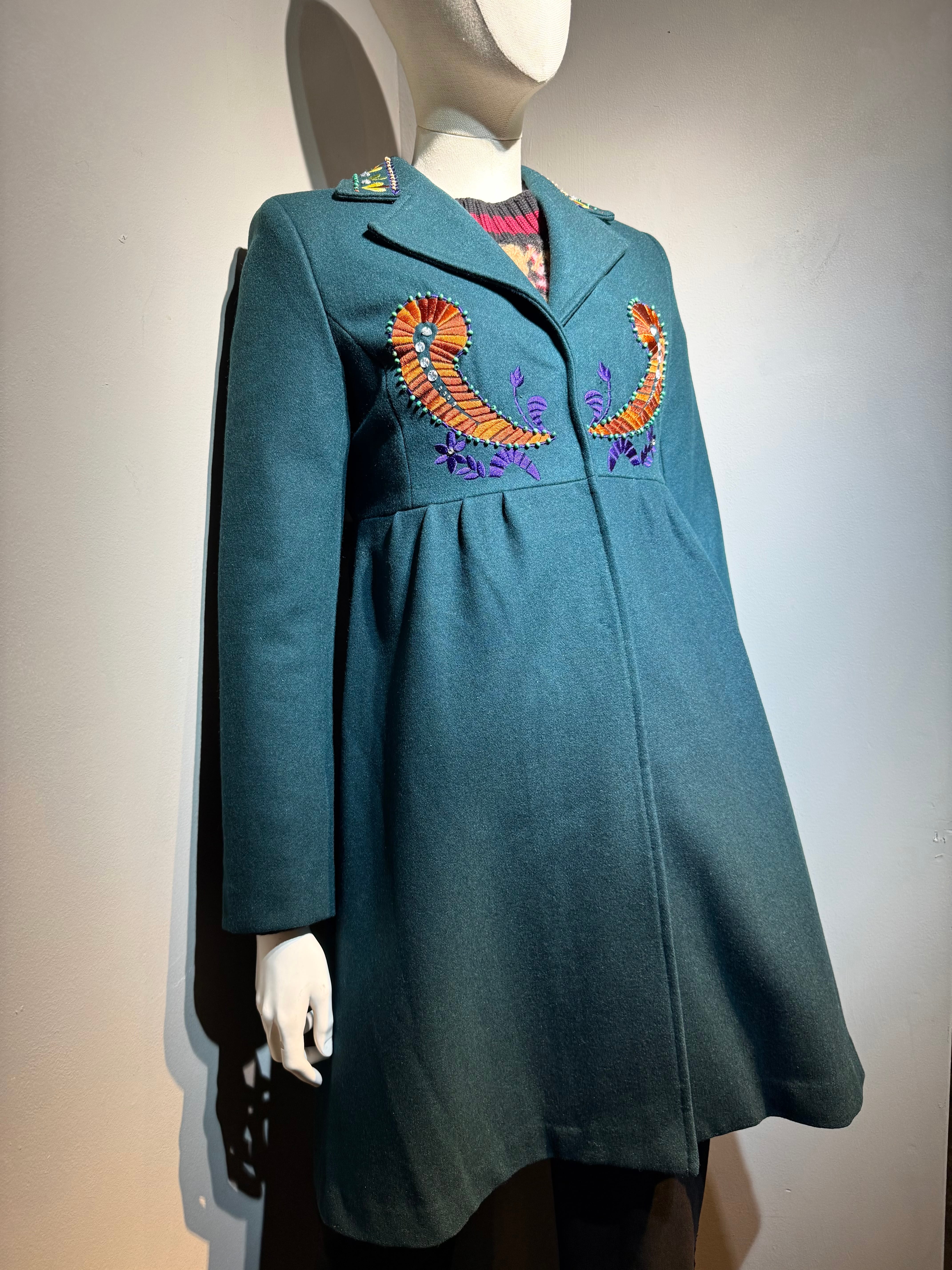 ミウッチャ・プラダが手がける、深みのあるグリーンカラーが印象的なミュウミュウの刺繍コートをご紹介します。