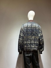 ややゆとりのあるシルエットに、大きめのブロック調の柄を組み合わせ、見た目にも華やかな一枚です。