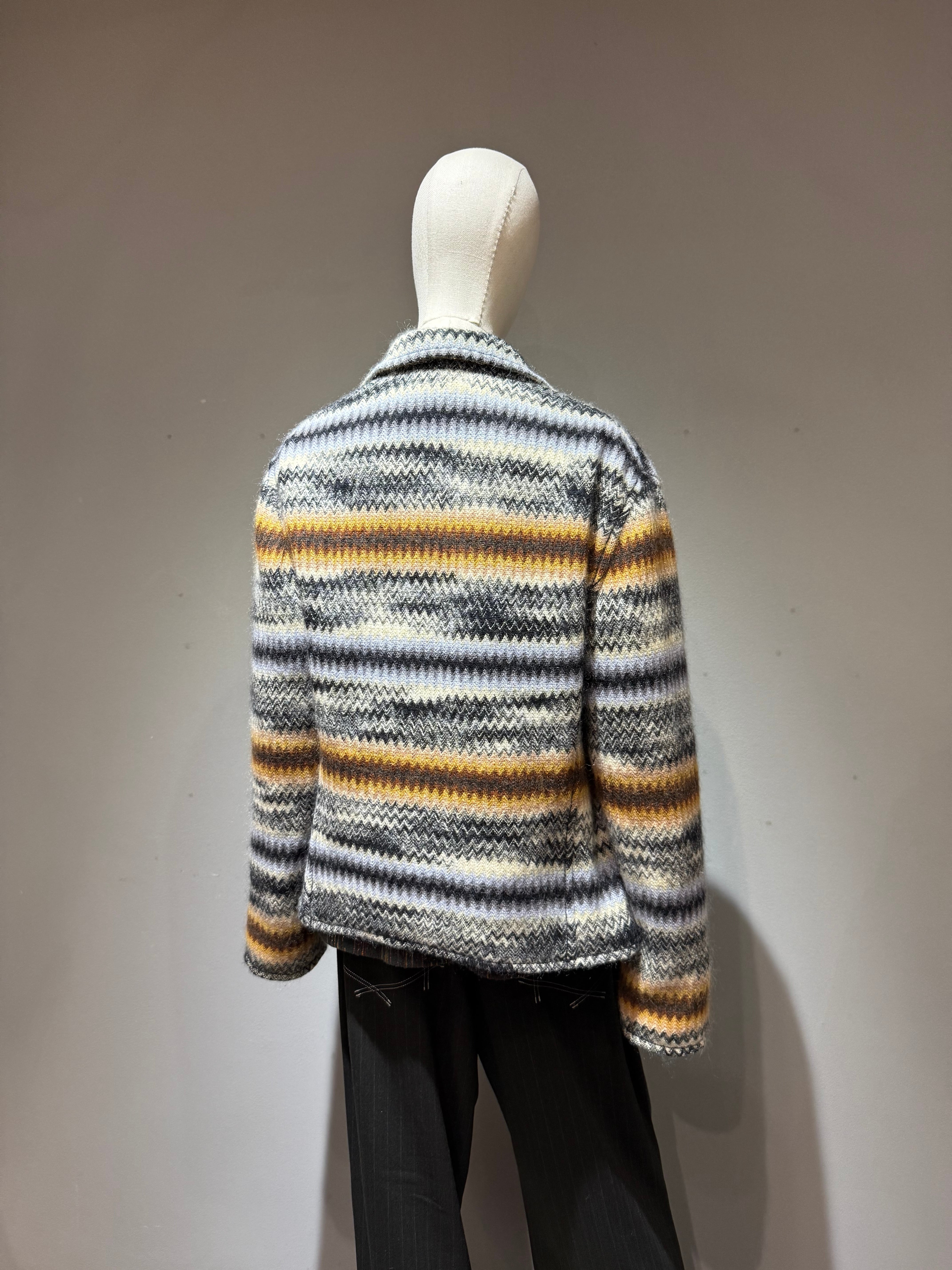 その象徴ともいえるシェブロン柄をあしらったカーディガン。