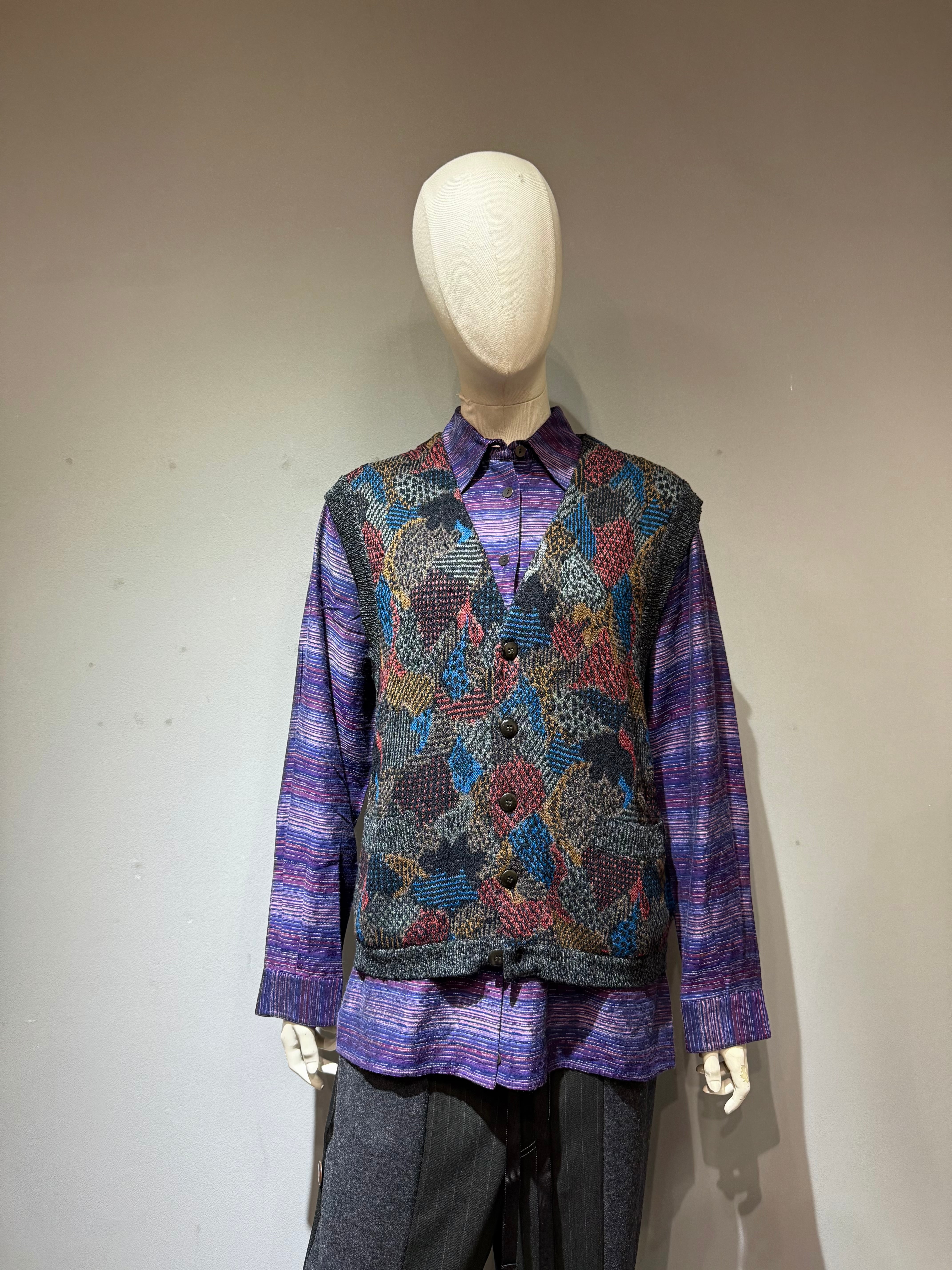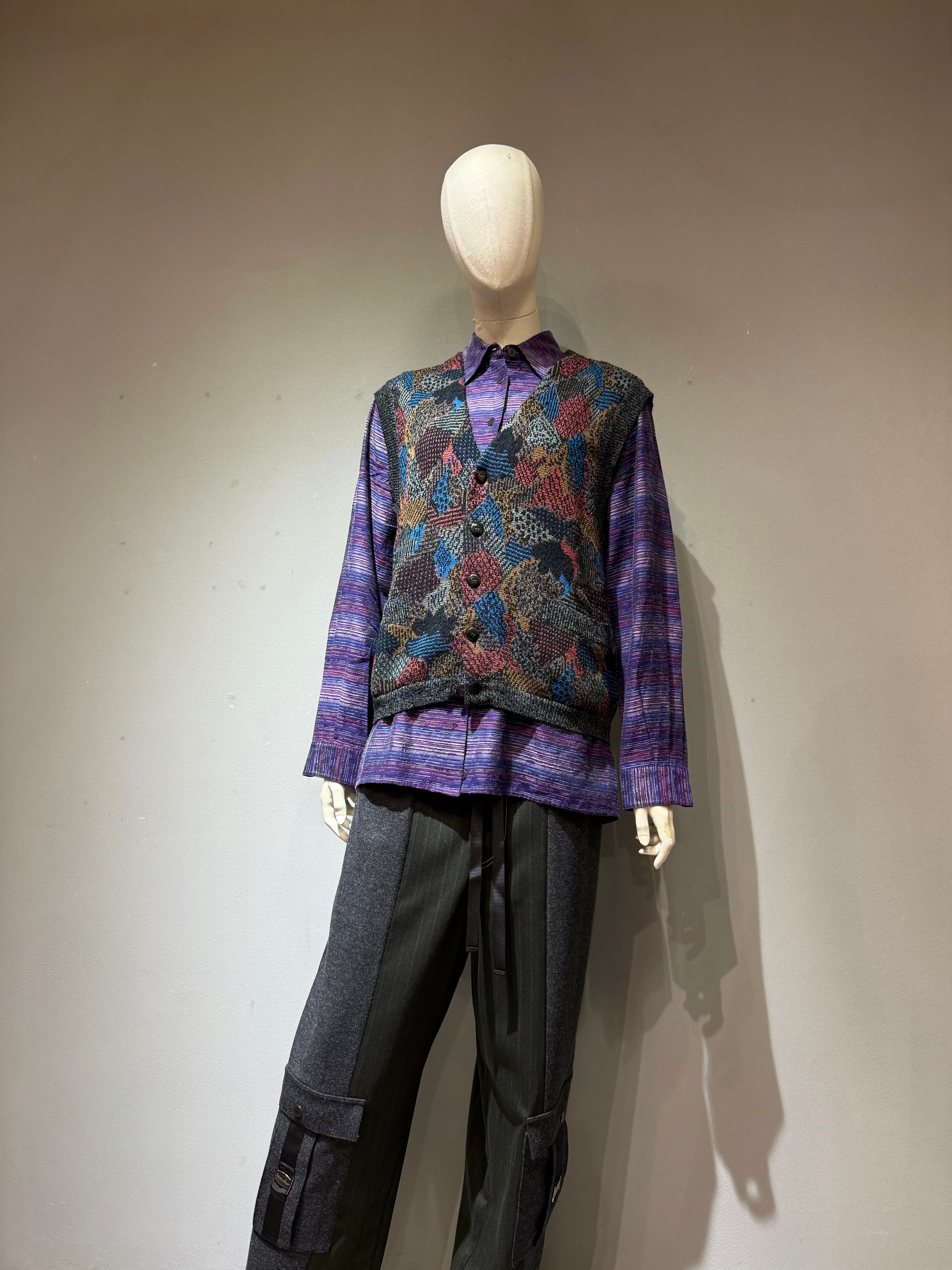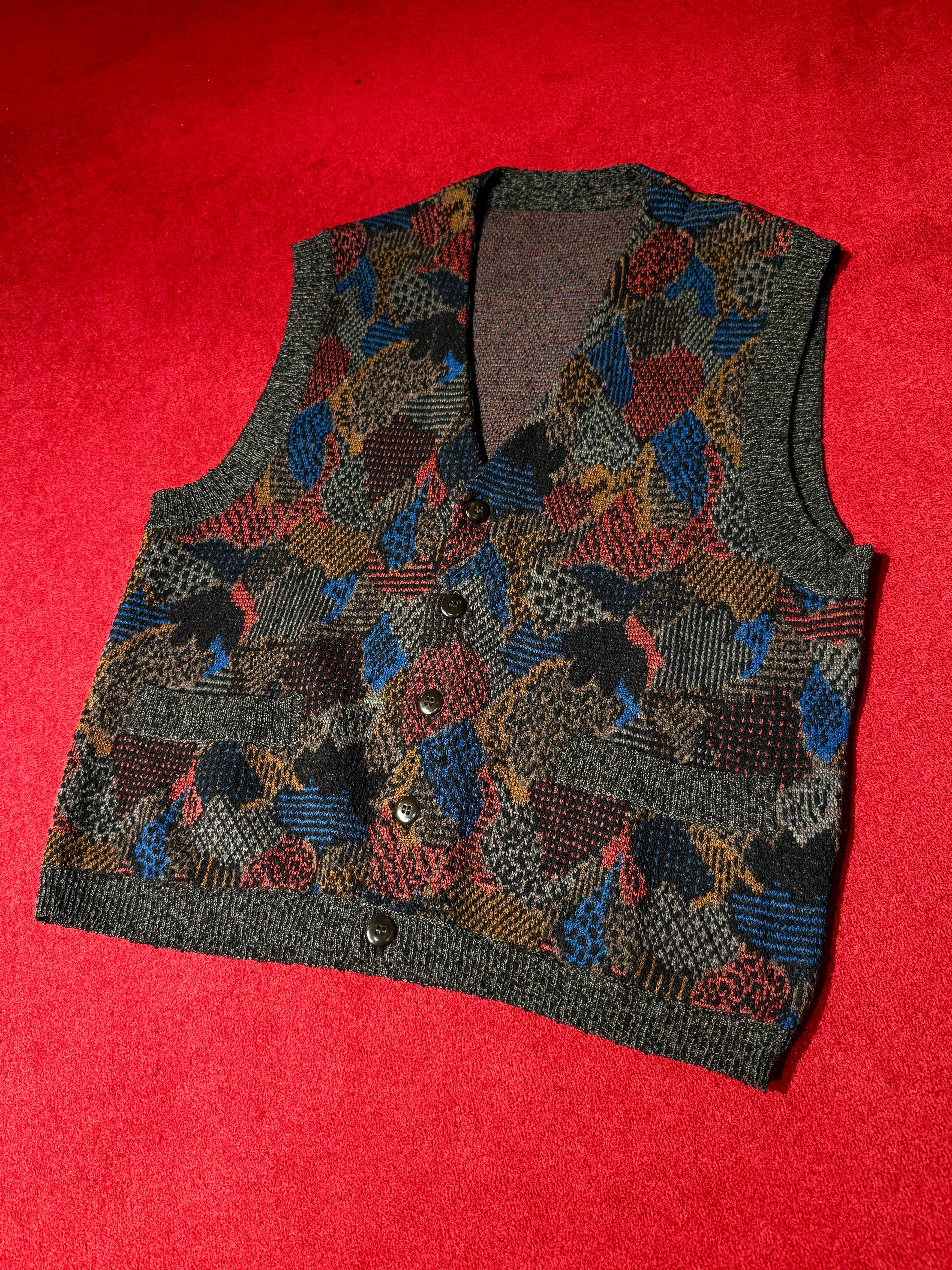 wool × nylon design multicolor knit vest