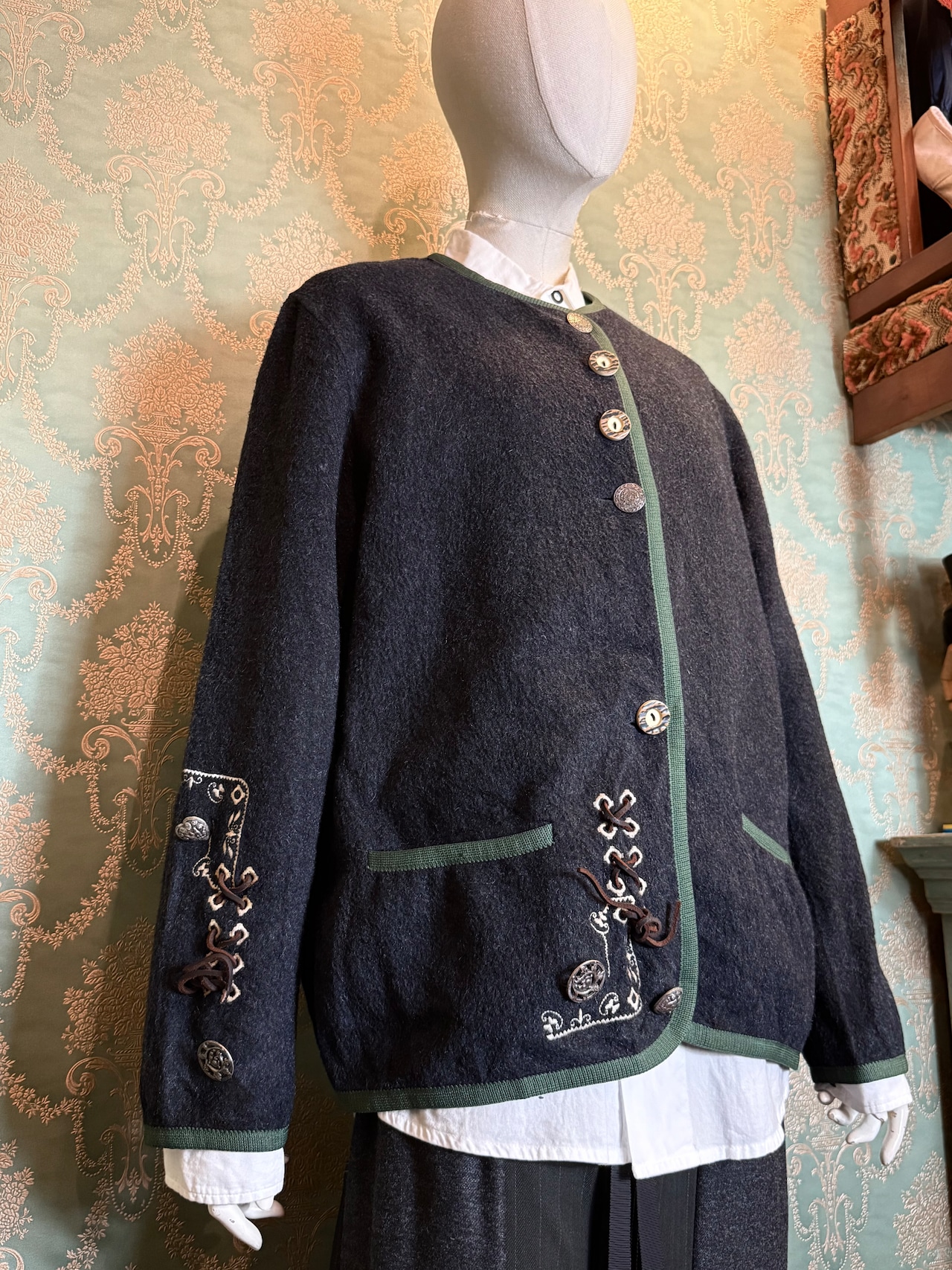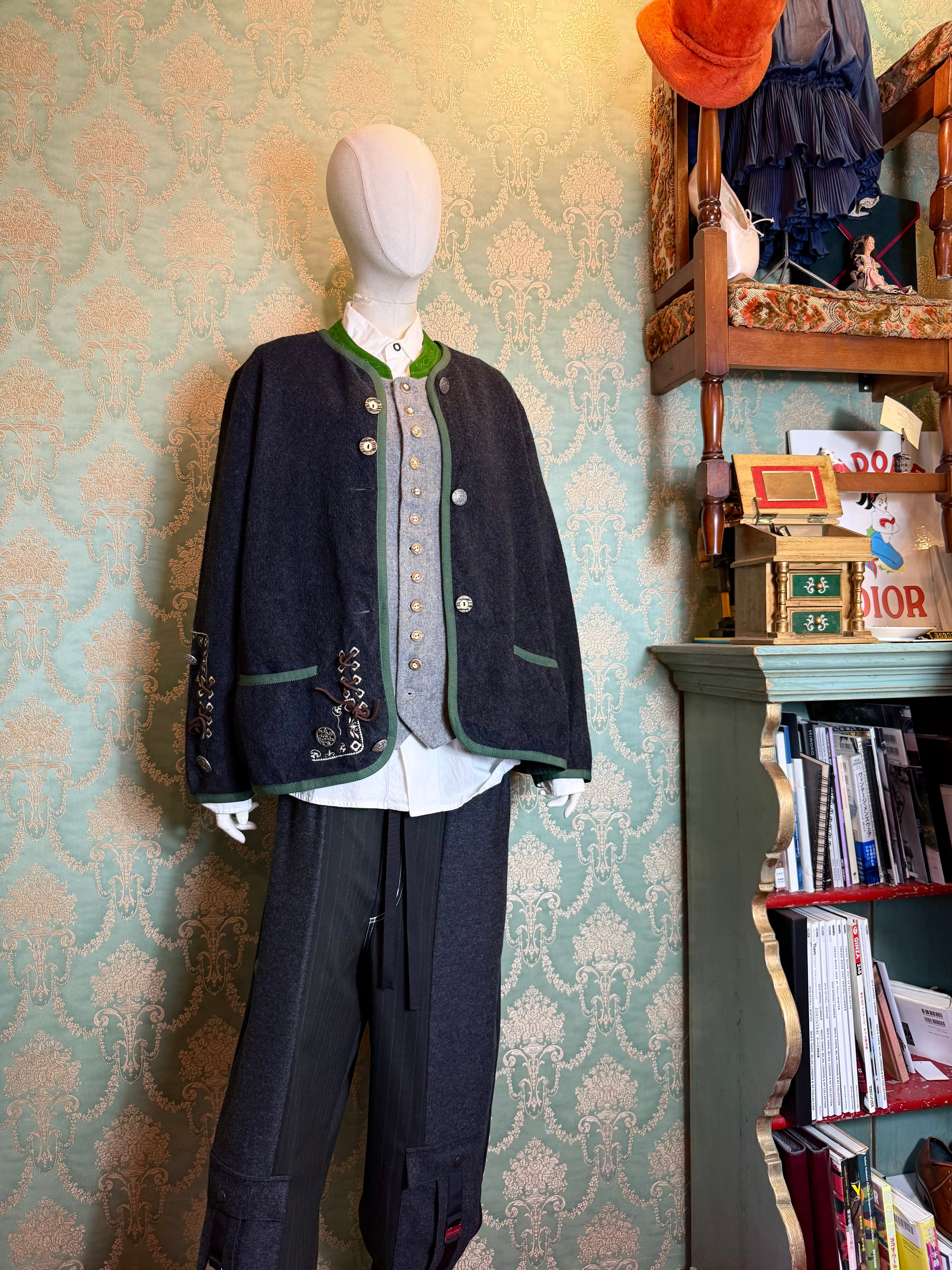 フォークロアの雰囲気を漂わせながらも、現代のスタイルに自然に馴染むチロリアンジャケット。ユニセックスで楽しめる、唯一無二のアイテムです。