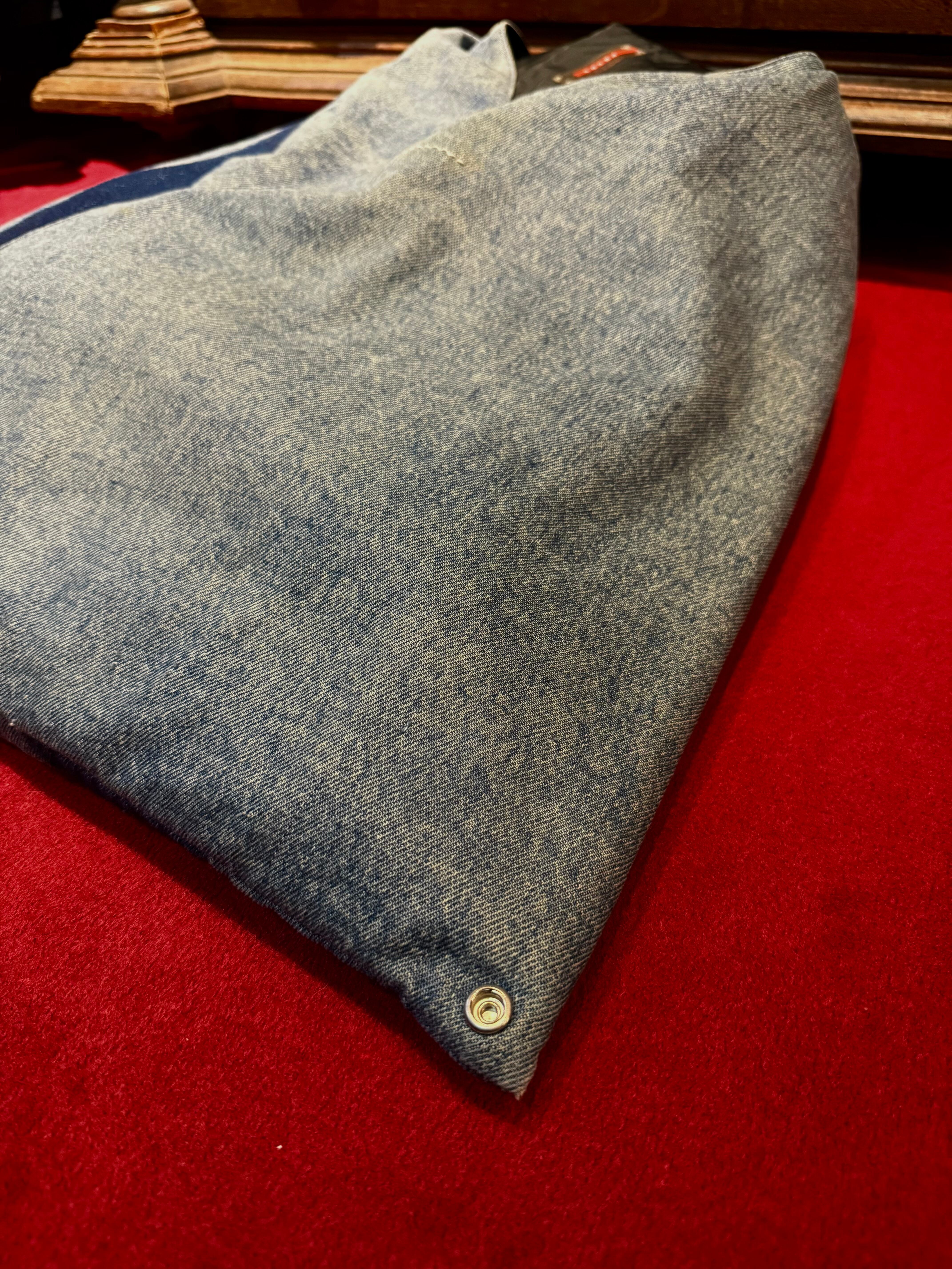 デニム地を部分的に脱色し、“6”のロゴだけを残した遊び心あふれるデザインが特徴。