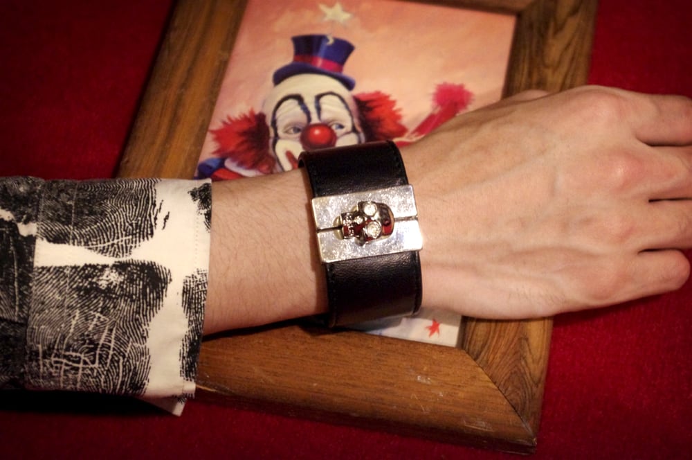 「Alexander McQUEEN」scull motief ×cow leather bracelet