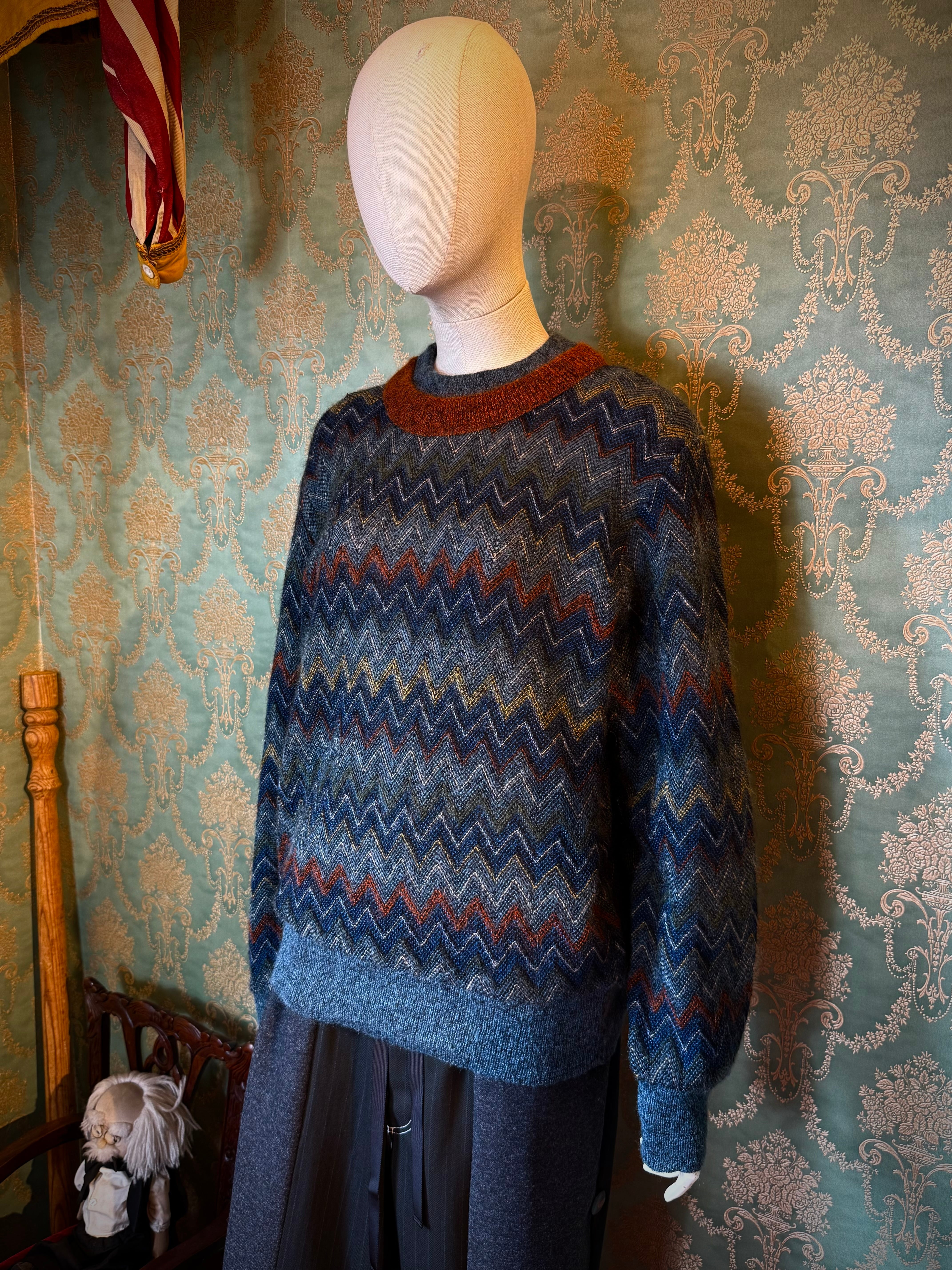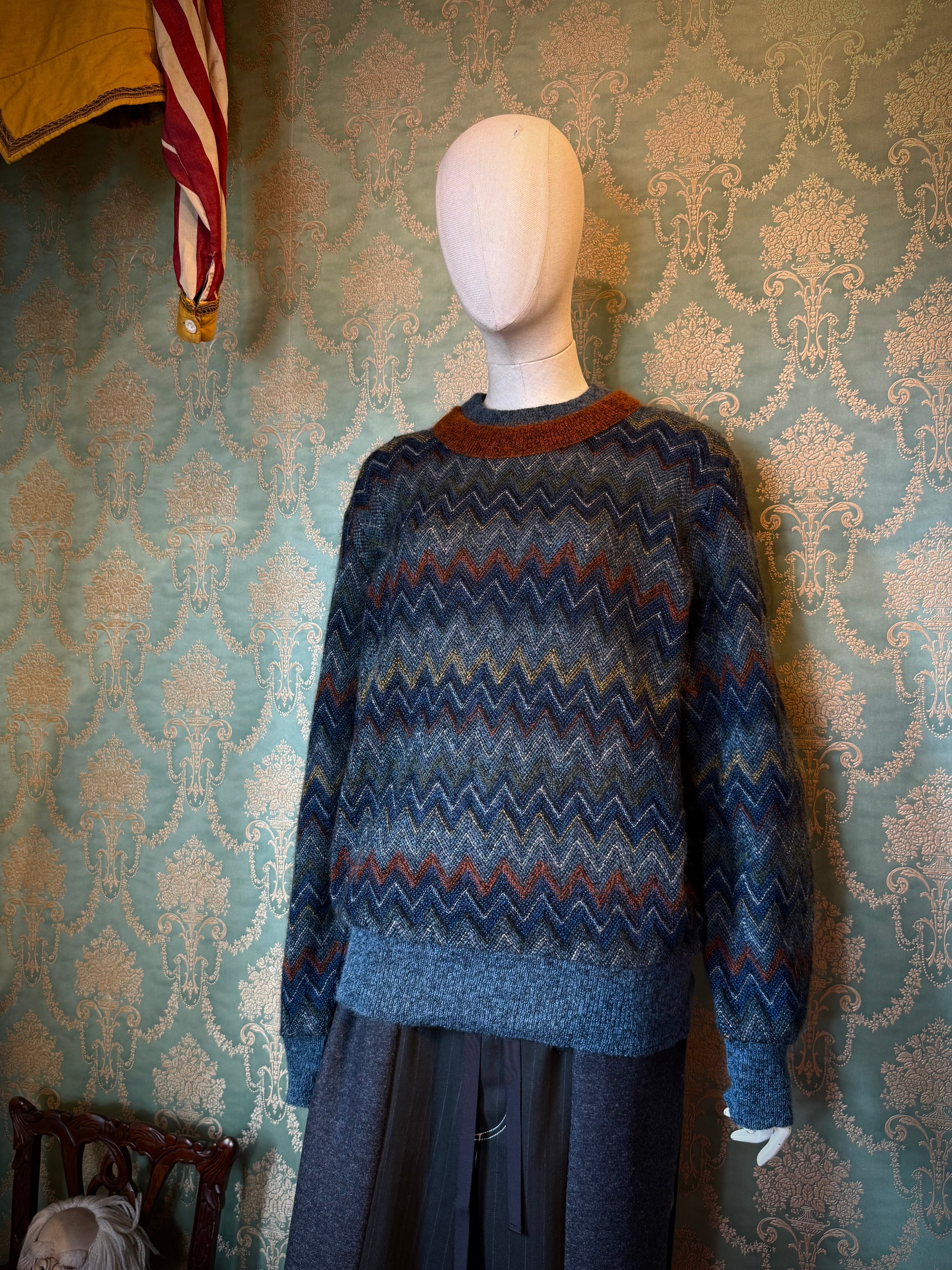 イタリアの老舗ブランド〈MISSONI〉から、ブランドの象徴ともいえる不規則なパターンを大胆にあしらった、存在感あふれるシェブロン柄ニットが登場。