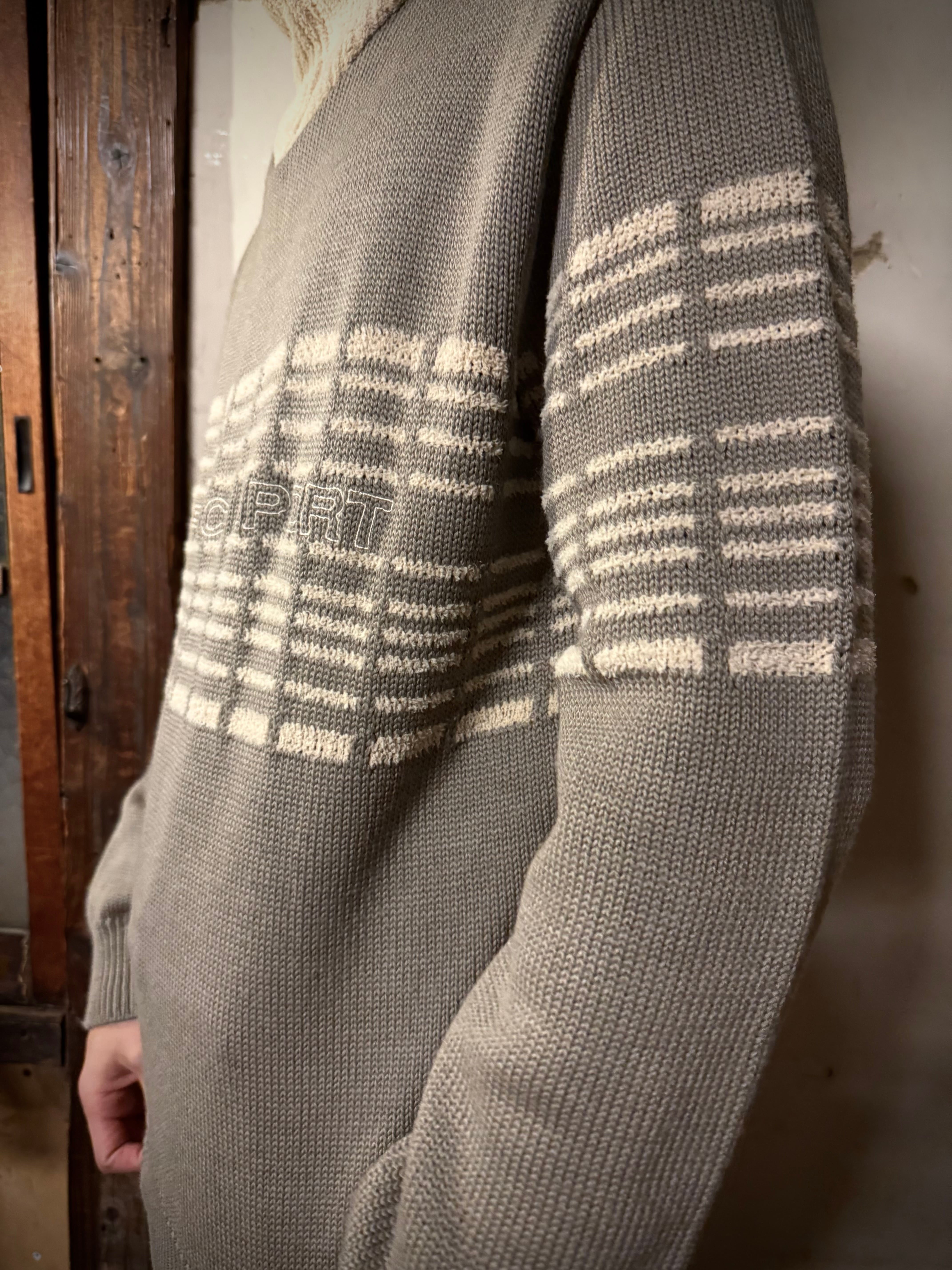 本作はフロントに「VERSACE SPORT」のロゴを編みで表現。