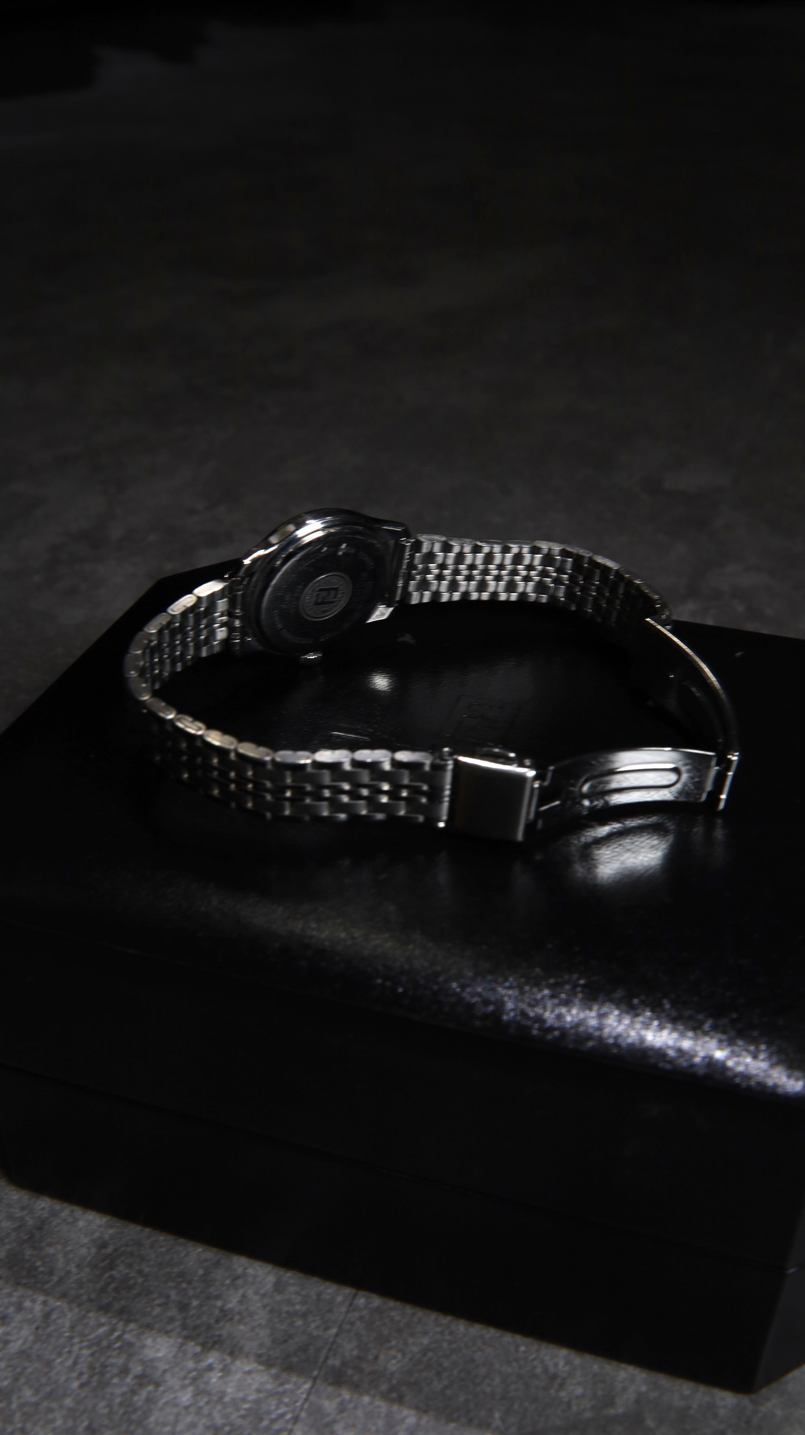 マットなチャコールグレーのダイヤルベースが大人の余裕を演習するクラシックなデザインで、ミックスカラーでこの統一感。