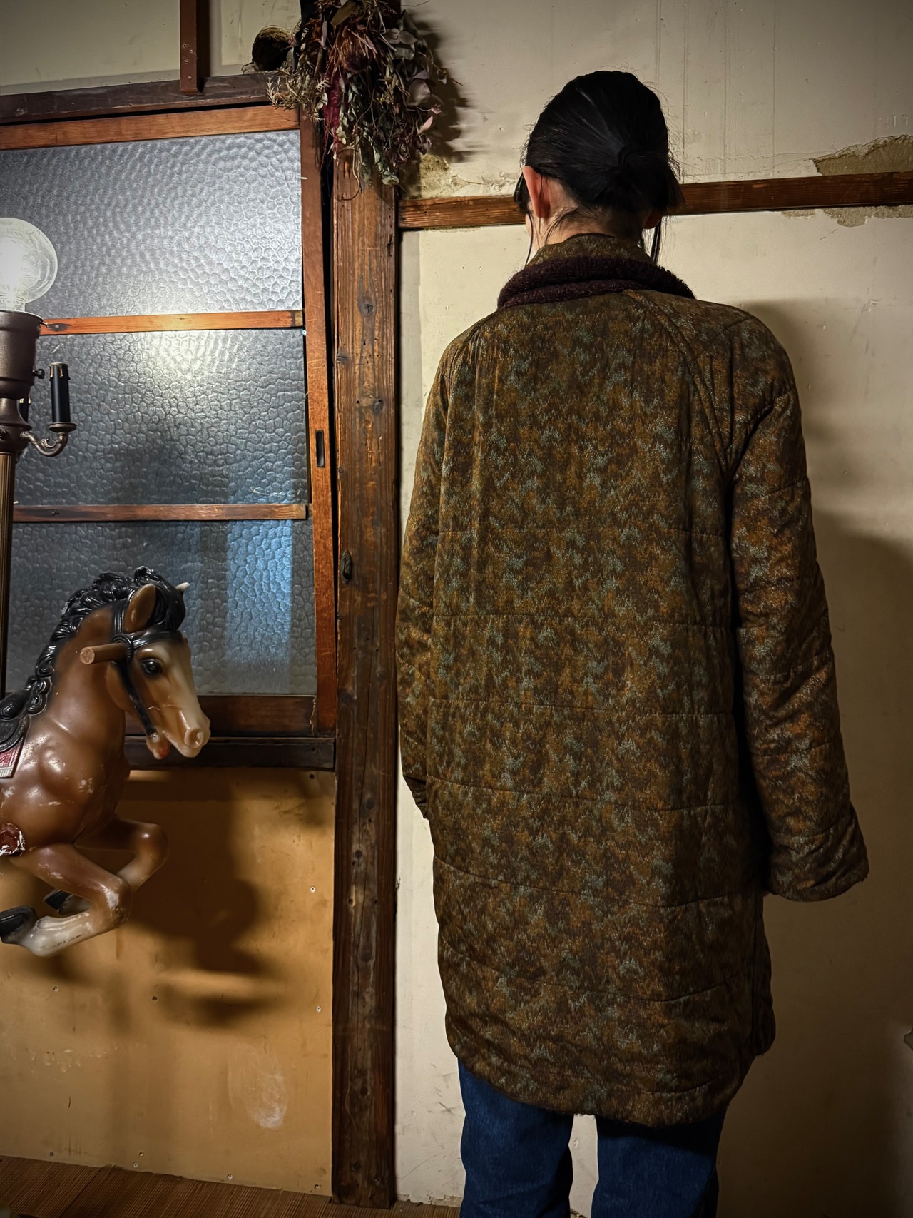 herringbone pattern × wool down design reversible coat