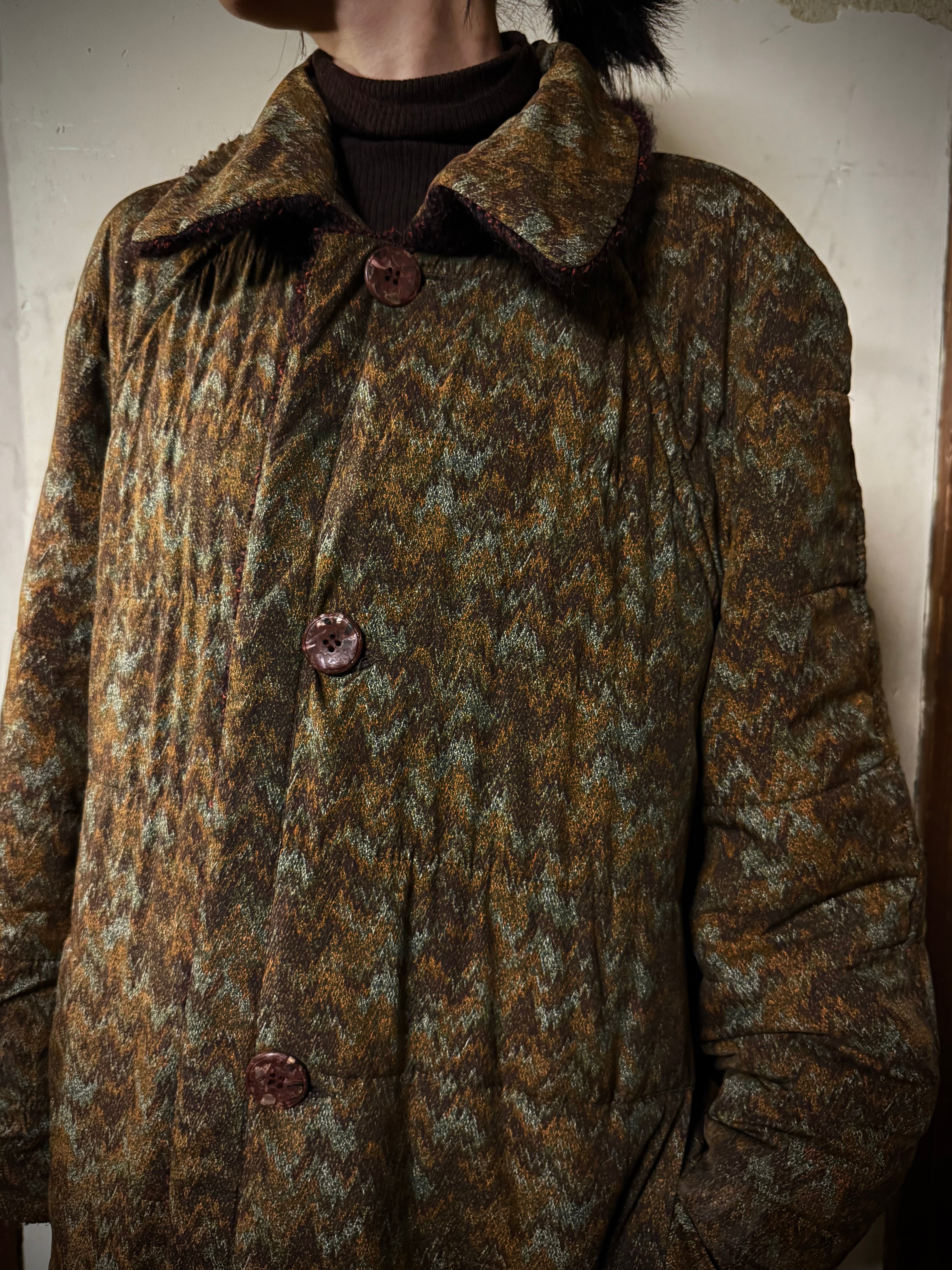 本作は、ミッソーニらしい繊細な柄使いと、表情の異なる2面デザインが魅力の中綿入りリバーシブルコート。