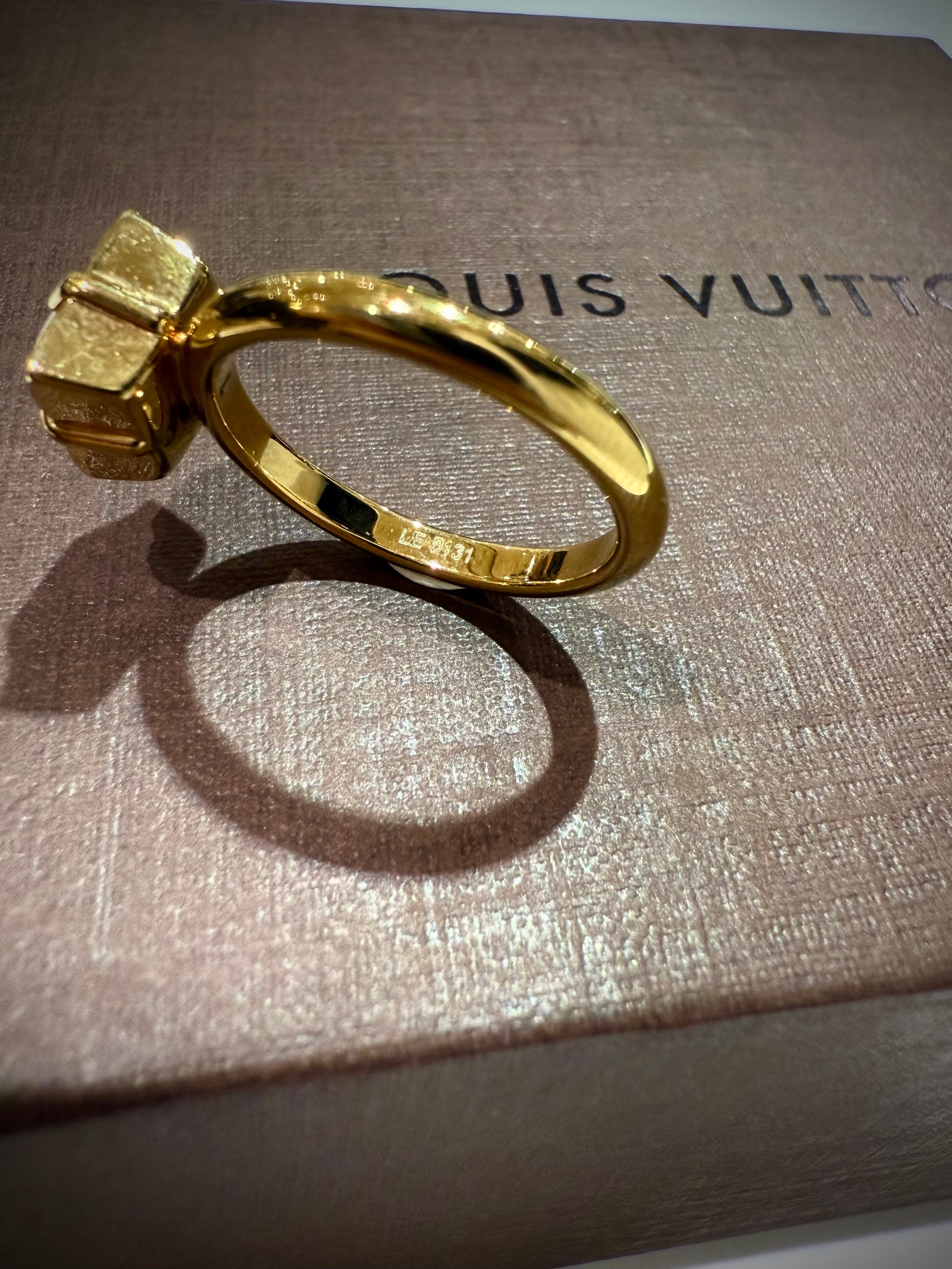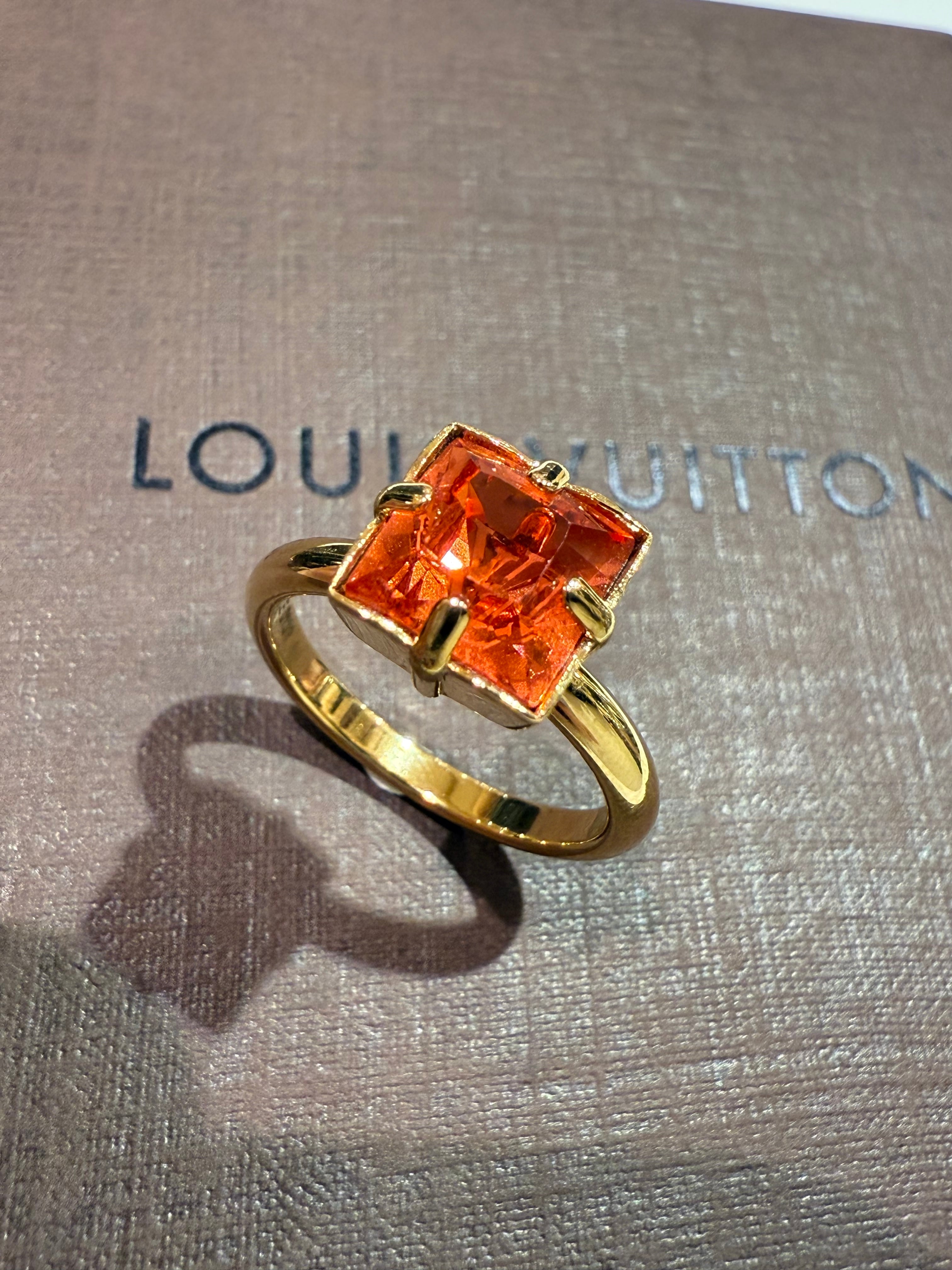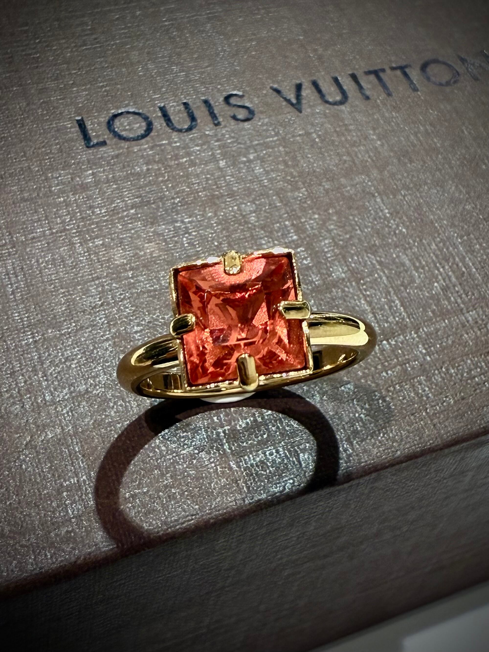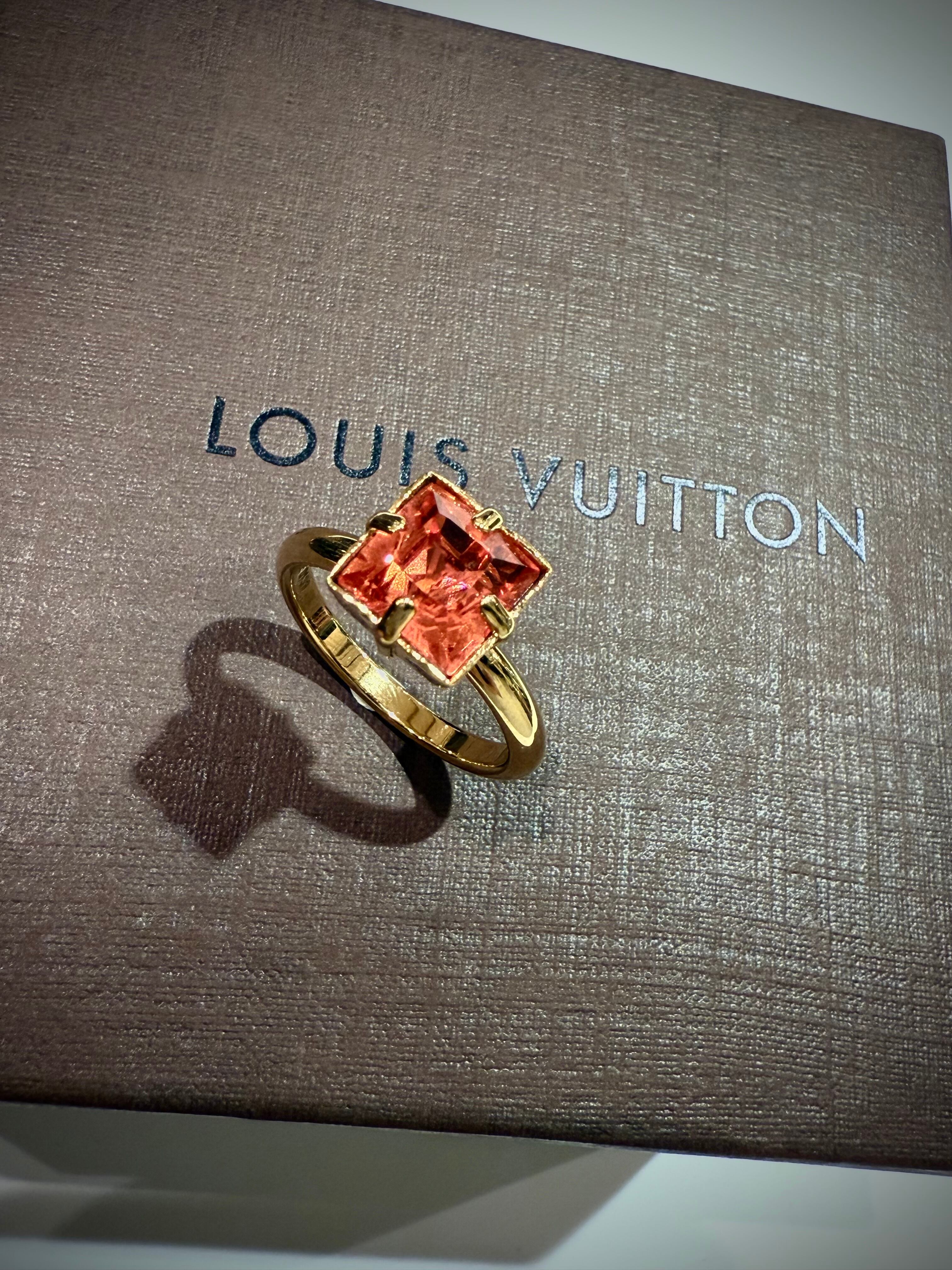 クリアレジンで作られたモノグラムフラワーの中心にLVロゴを配したデザインは、レジン越しに覗くロゴの表情が、メゾンならではの繊細な職人技を感じさせます。