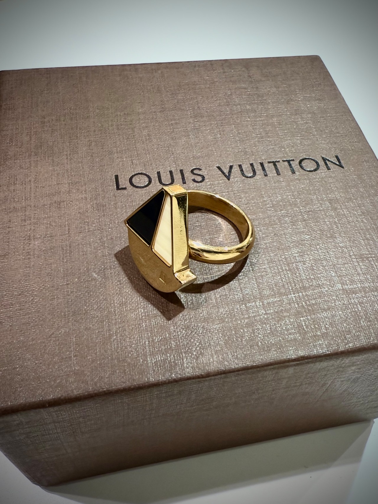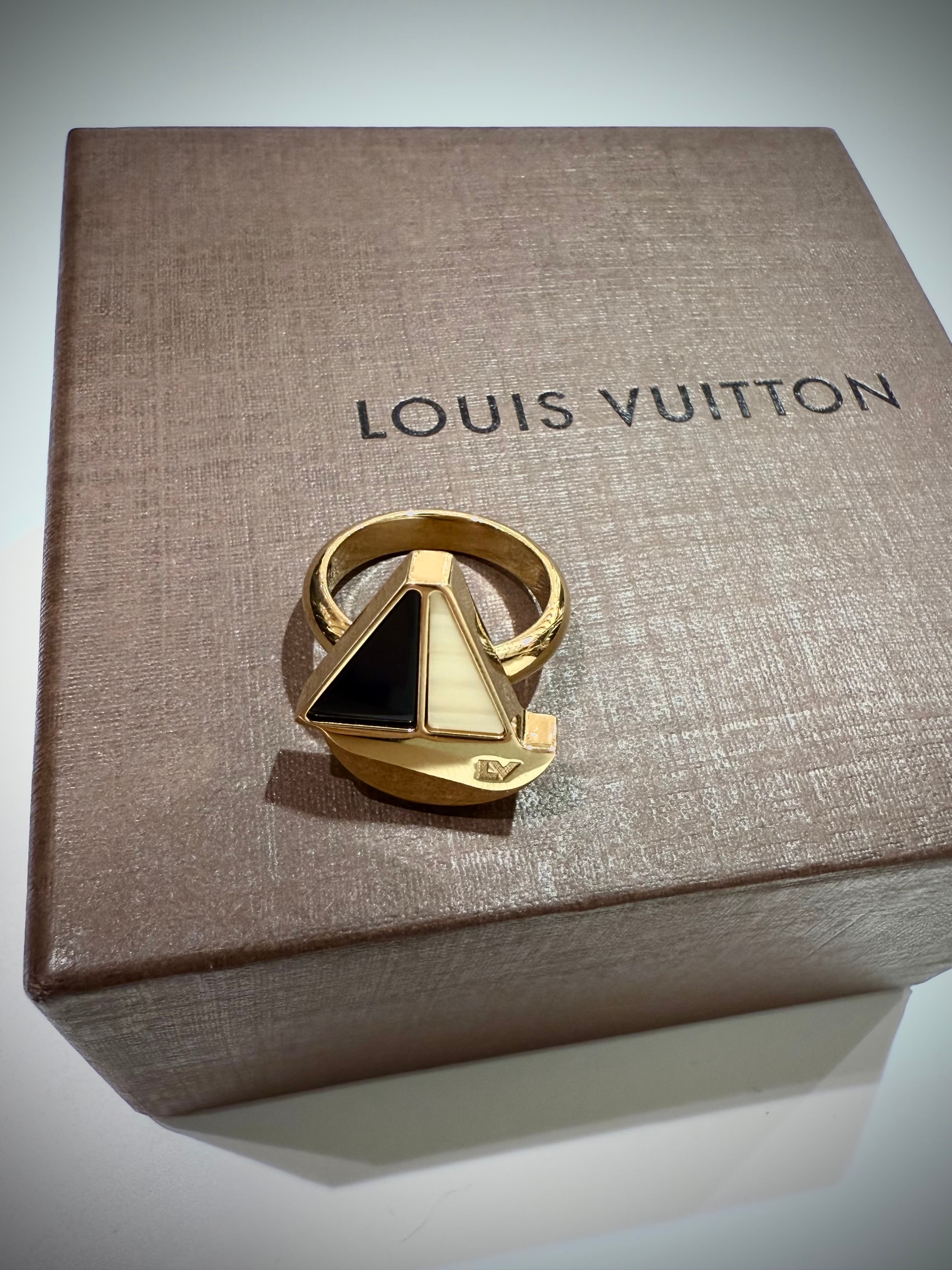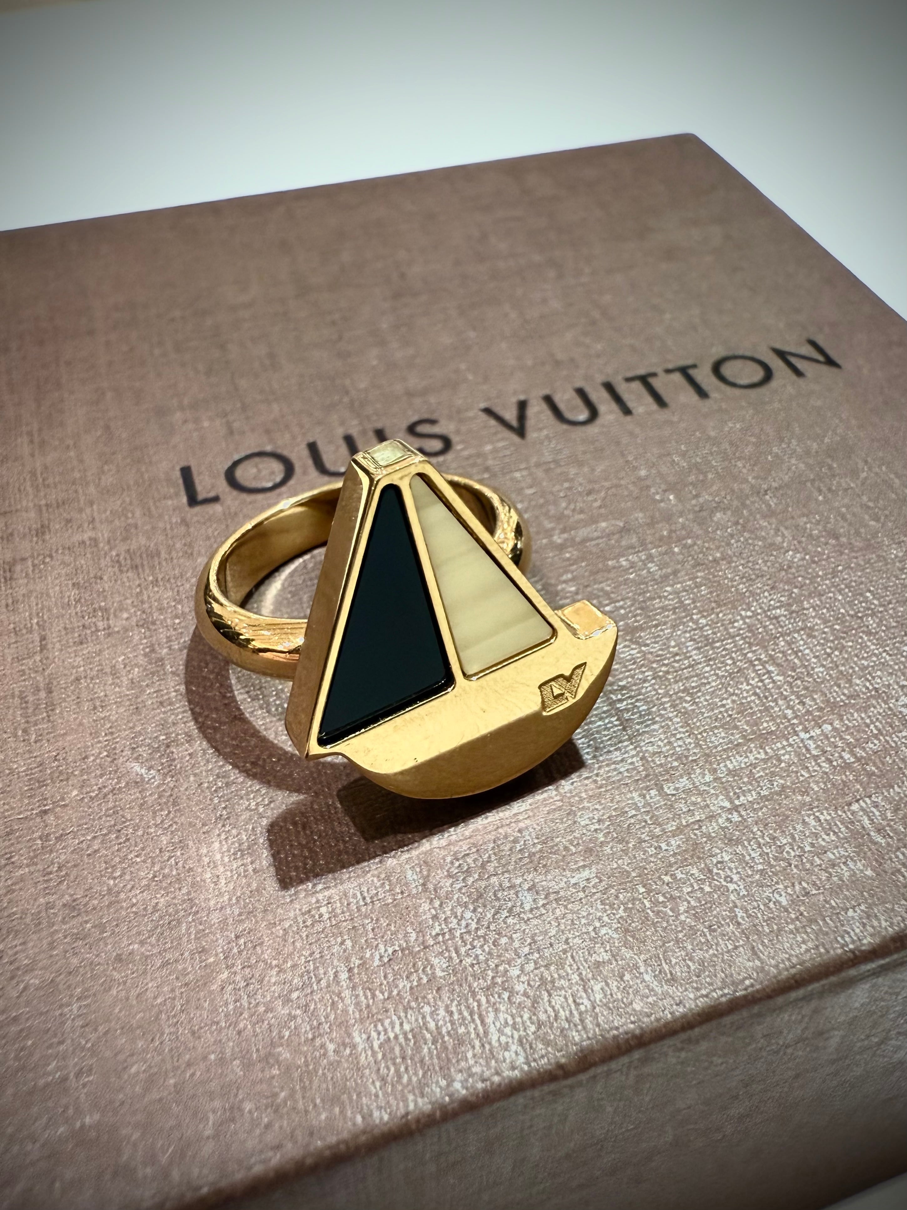 コンビネーションカラーにヨットのロゴ。その中にLVのロゴが刻印されたデザイン。