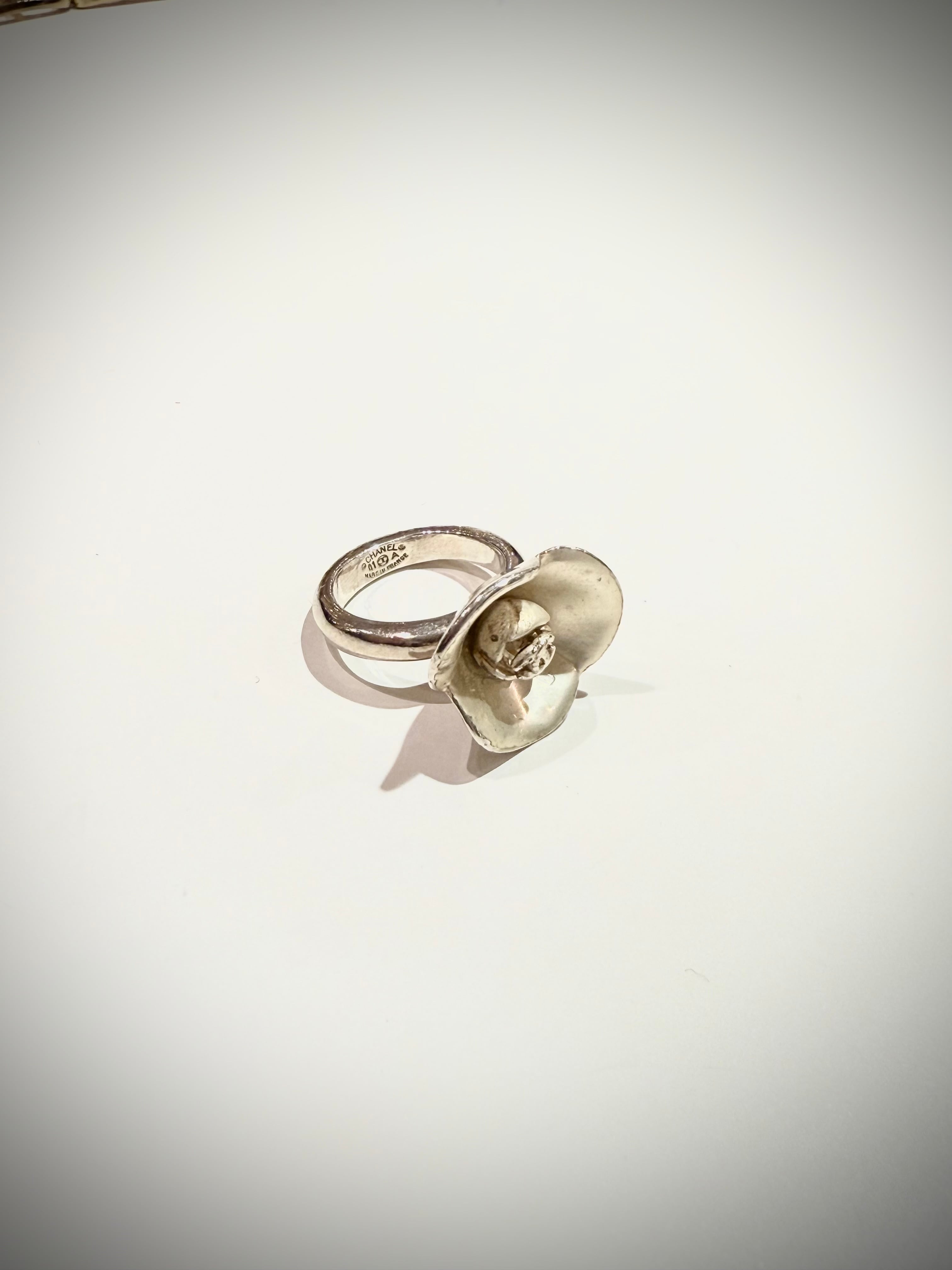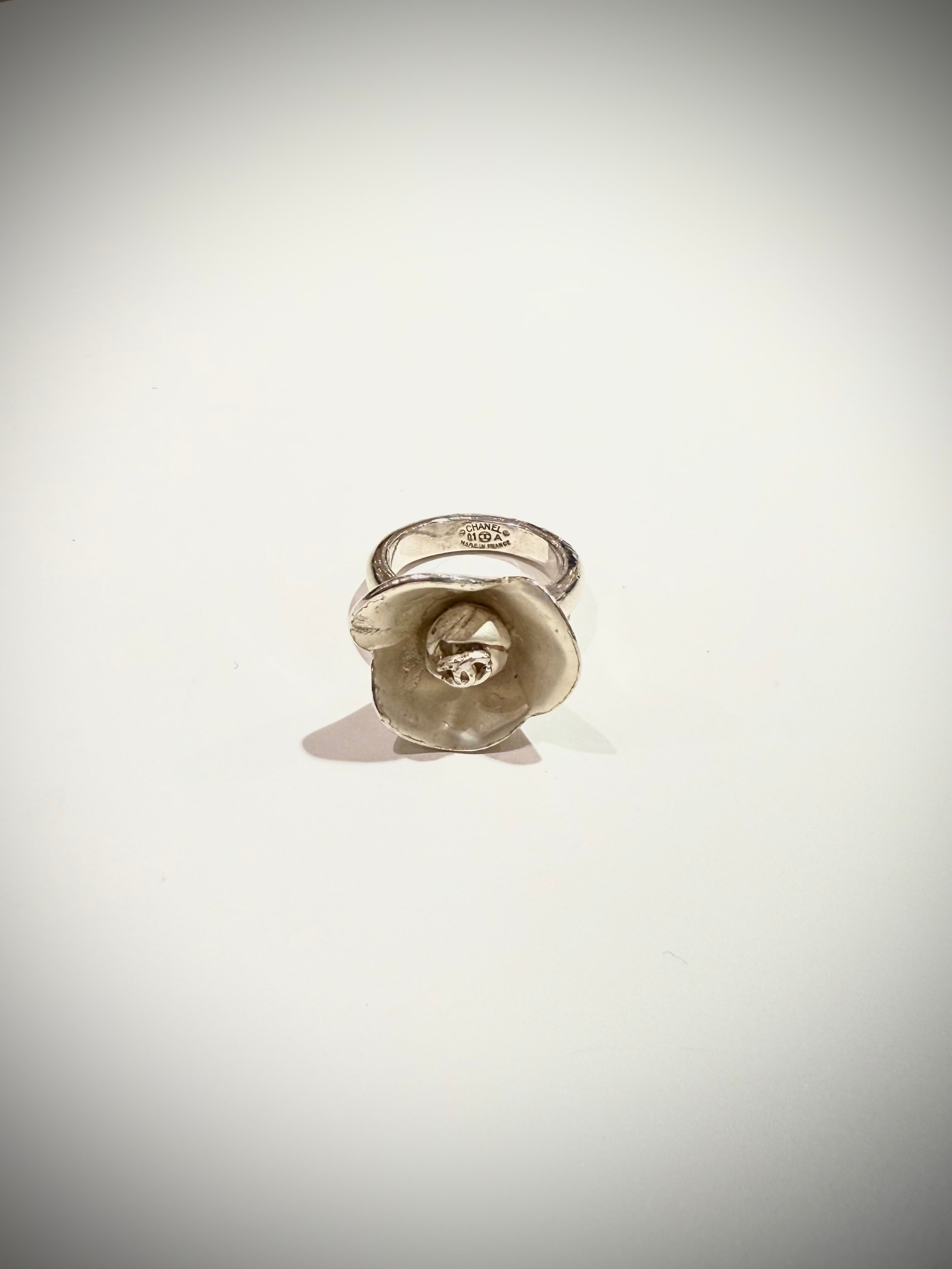 CHANELを象徴するモチーフのひとつ、カメリアを大胆に立体化したヴィンテージリング。