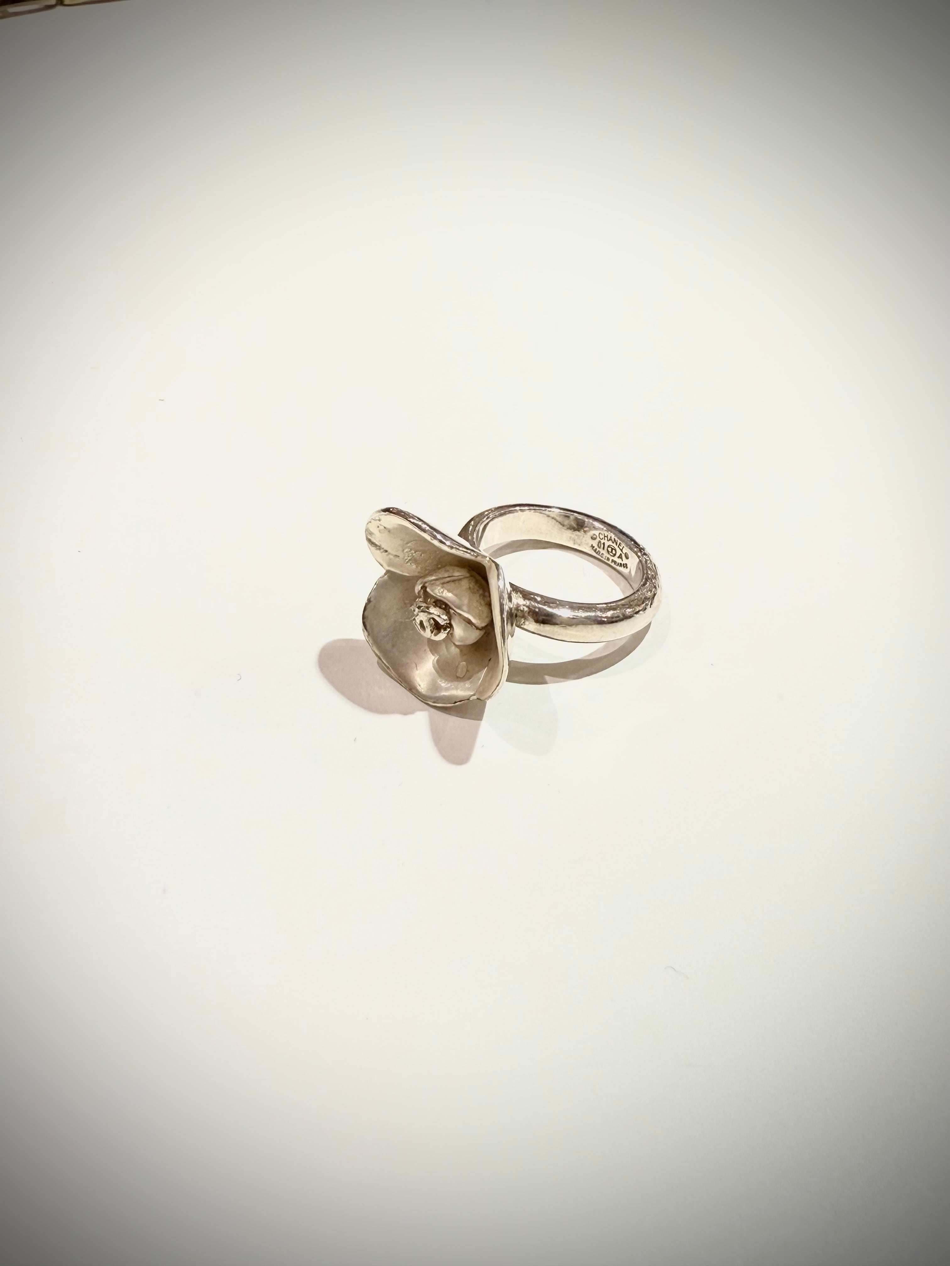 camellia motif silver ring