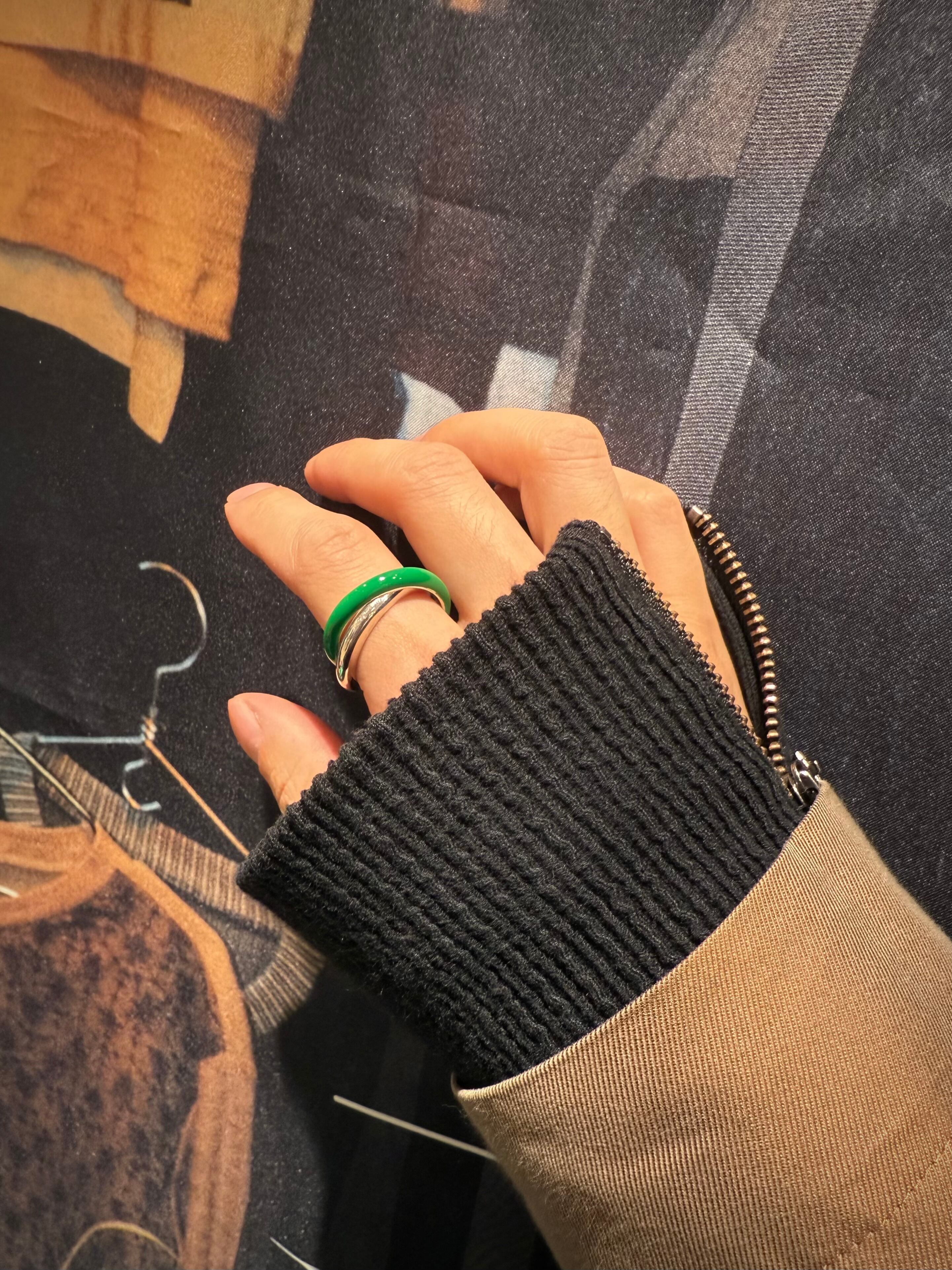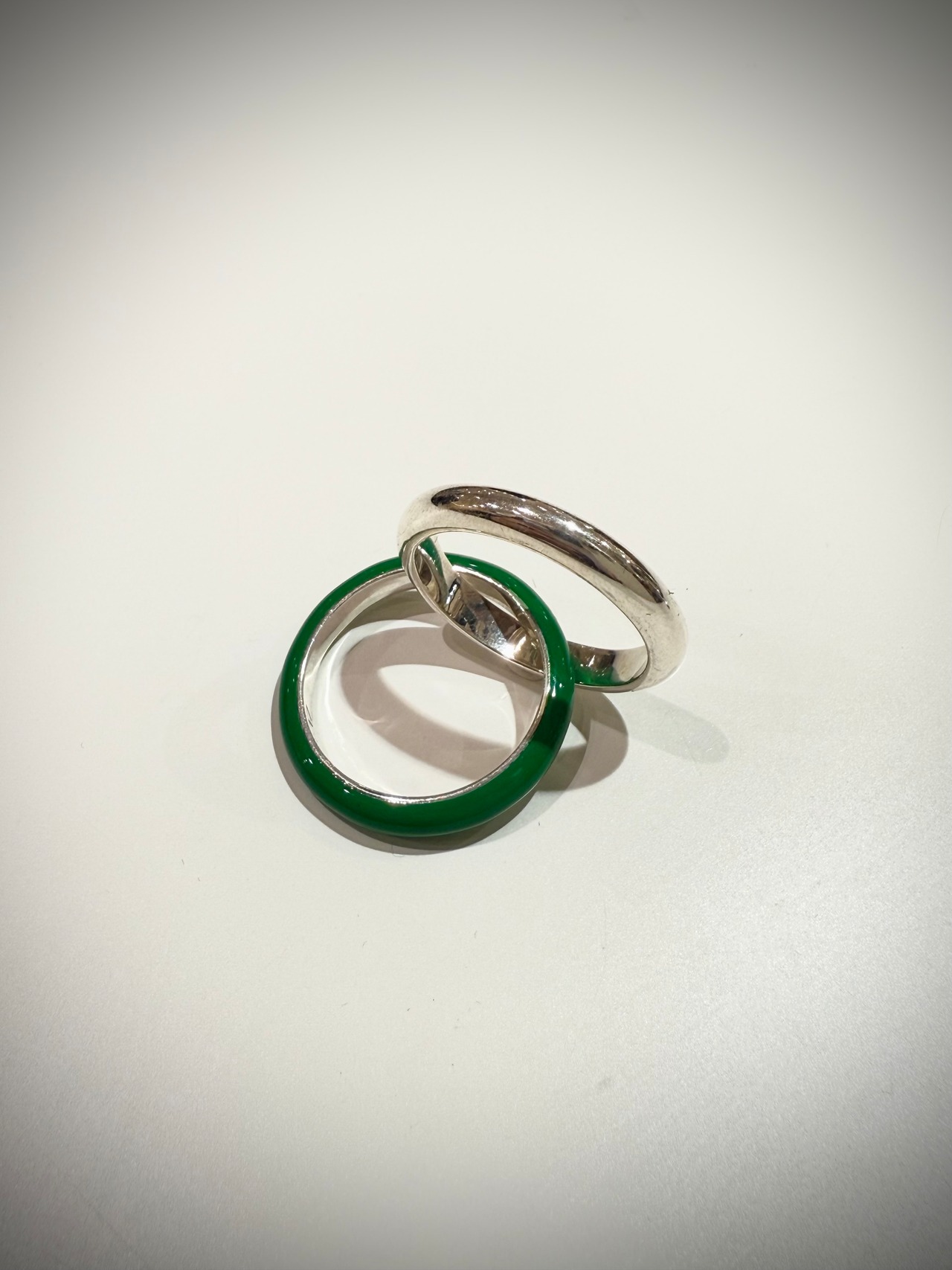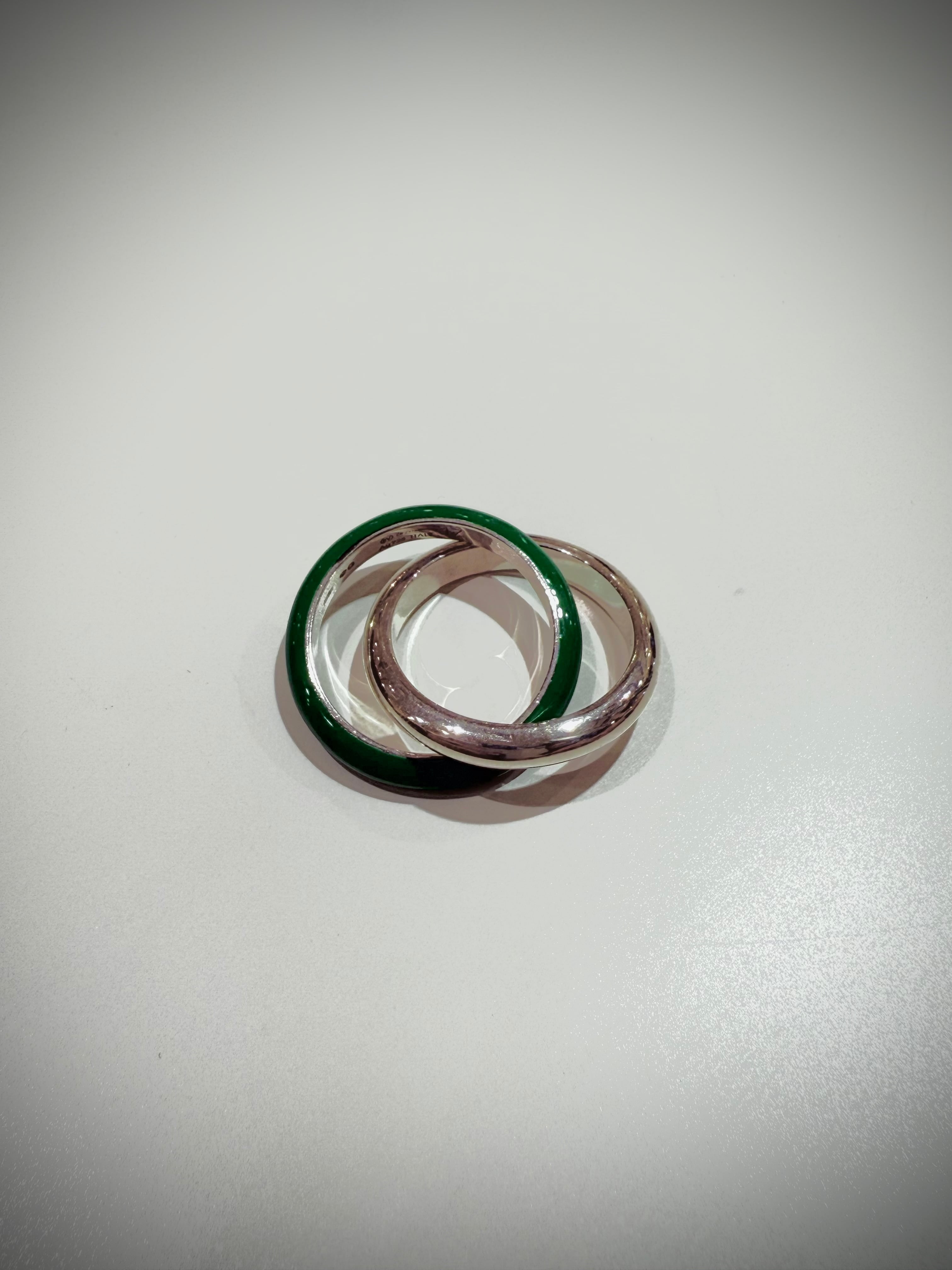 silver × green design double ring