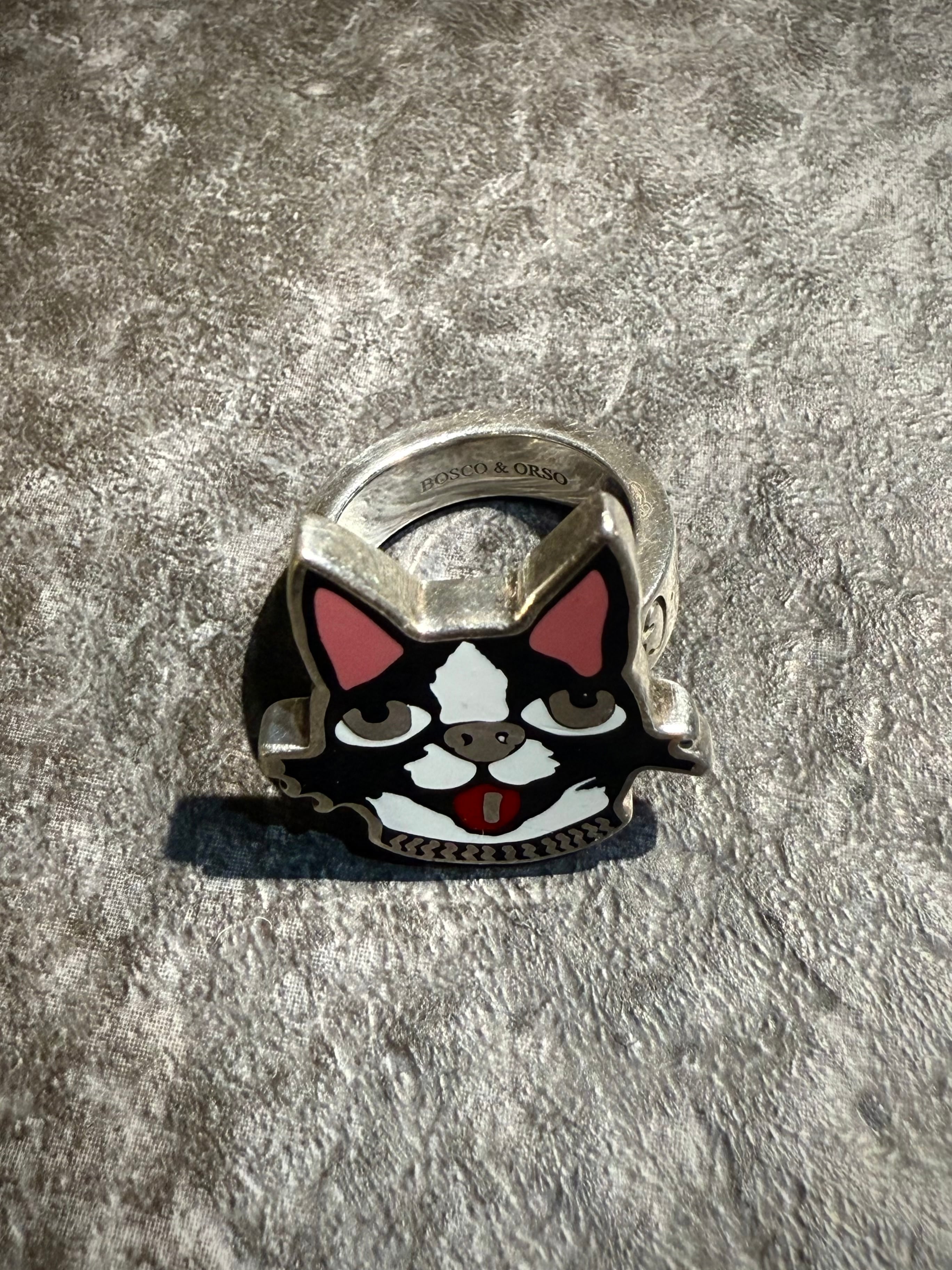 ミケーレ自身の愛犬であるボストンテリアの「ボスコ」と「オルソ」をモチーフにした、通称“ボスコ&オルソ”ドッグリングとして知られるモデルです。