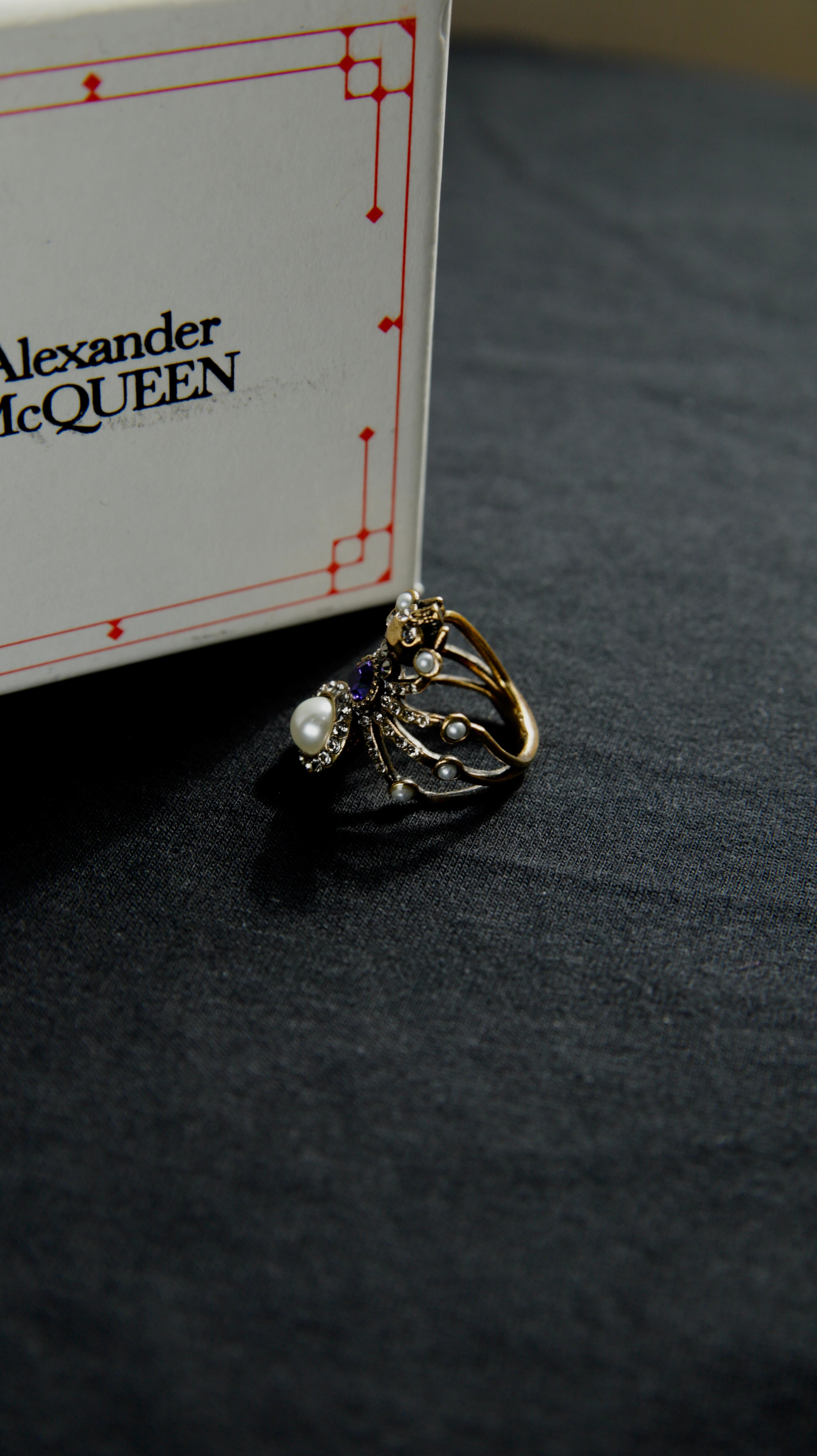 Alexander McQueenより、ゴージャスかつ繊細なスパイダーモチーフのファッションリングをご紹介いたします。