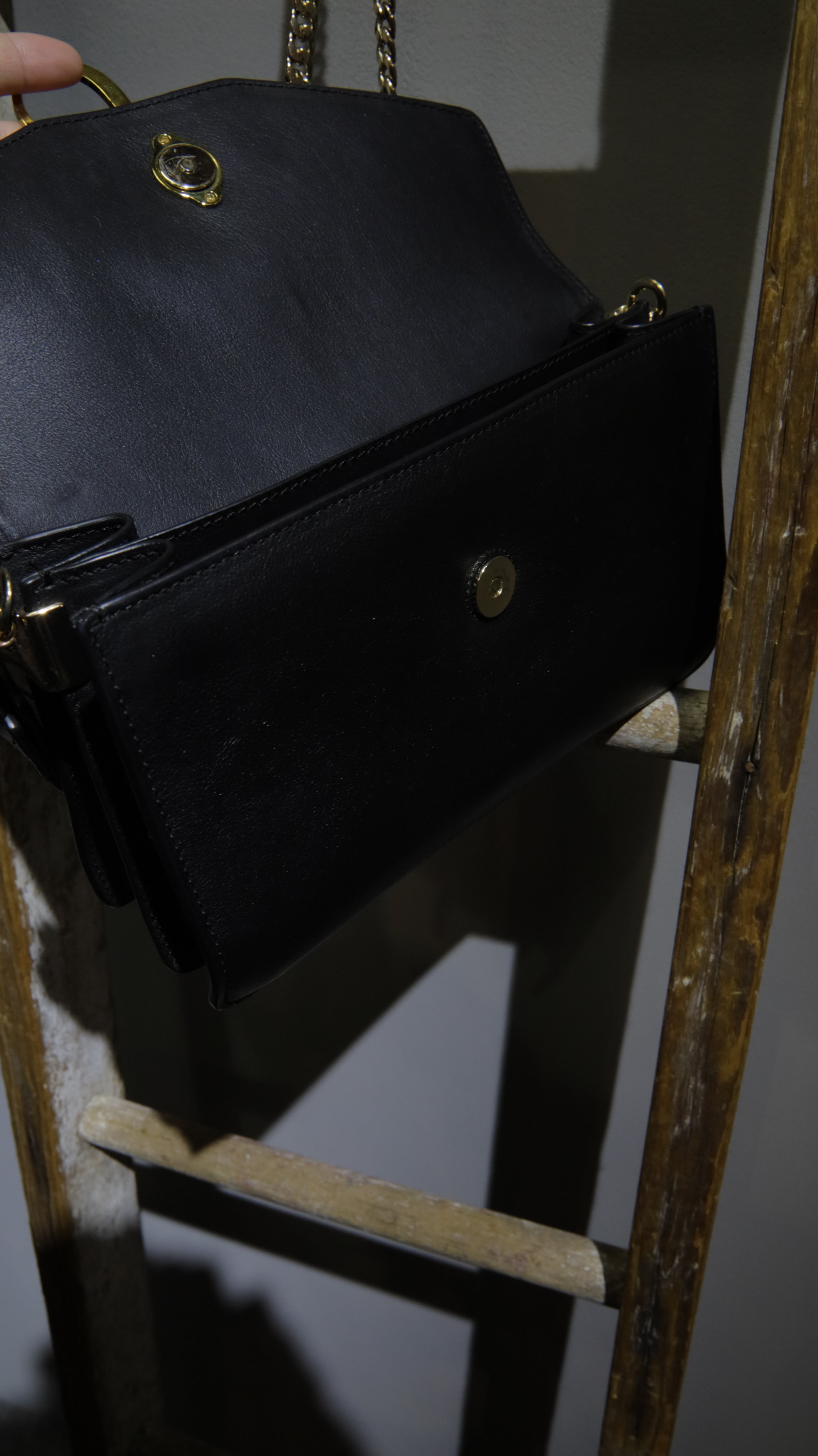 レザーショルダーは2wayで手持ちやトレンドの肩にピッタリと位置する短く太めのディテール。