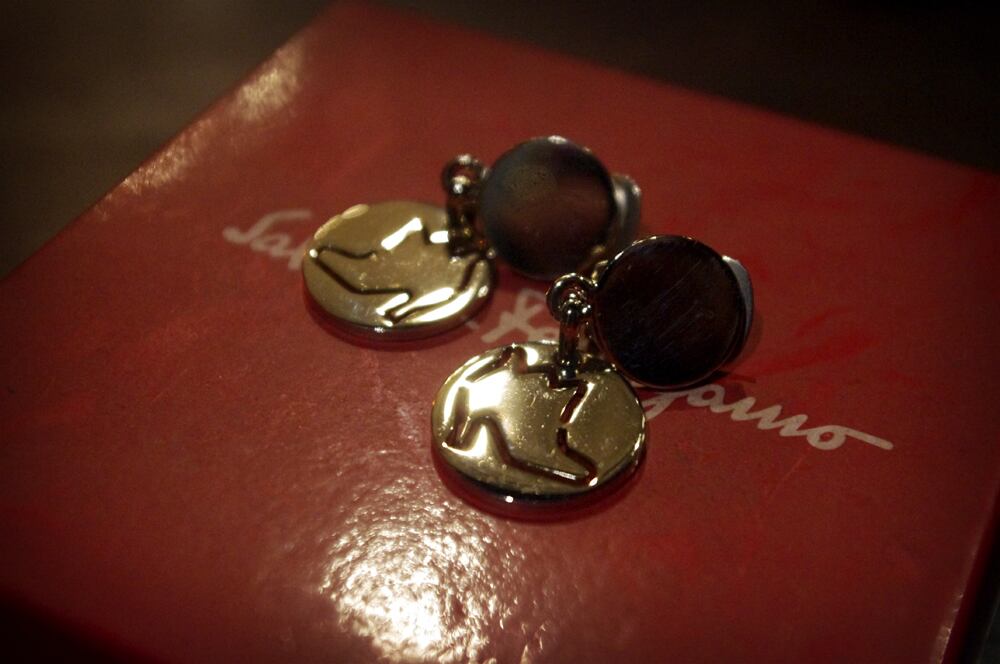 フェラガモのヒールシューズを掘ったシルバーのイヤリング。