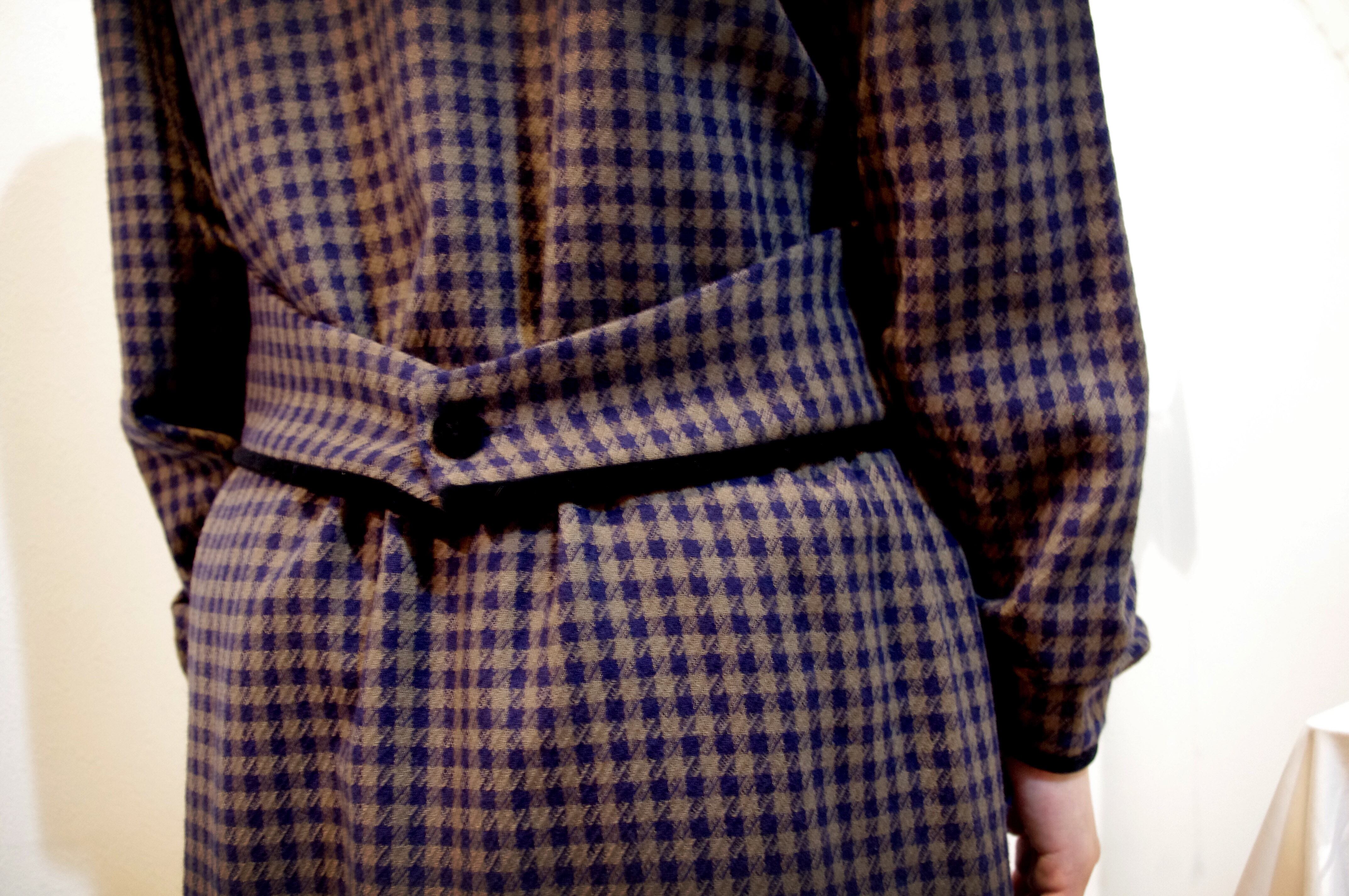 とても希少価値の高いOld GUCCIのタグが付いたワンピース。チャコールグレーの総柄ブロックチェックが映えベロア素材のパイピングがフェティッシュさを増す逸品。今年のトレンド、ファーのつけ襟をプラスし甘さとレトロな雰囲気を更に添えました。
