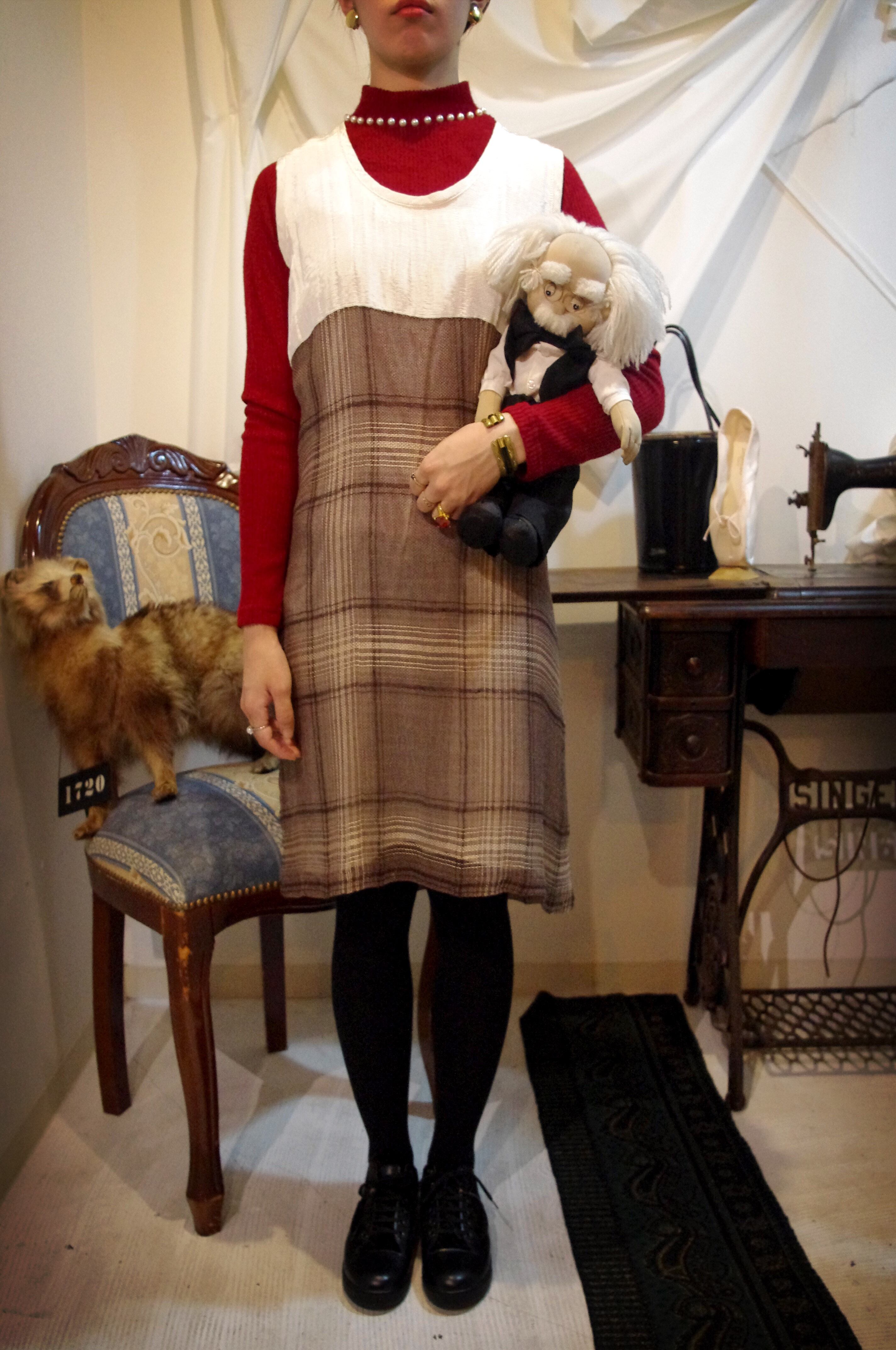 クラシカルな配色とシルエットのベルギー製vintageワンピース。シルク×リネンの柔らかい色味と主張しすぎない光沢具合が絶妙でエレガント。アームホールが大きめであることからブラウスやニットをin出来てしまう優れもの。
