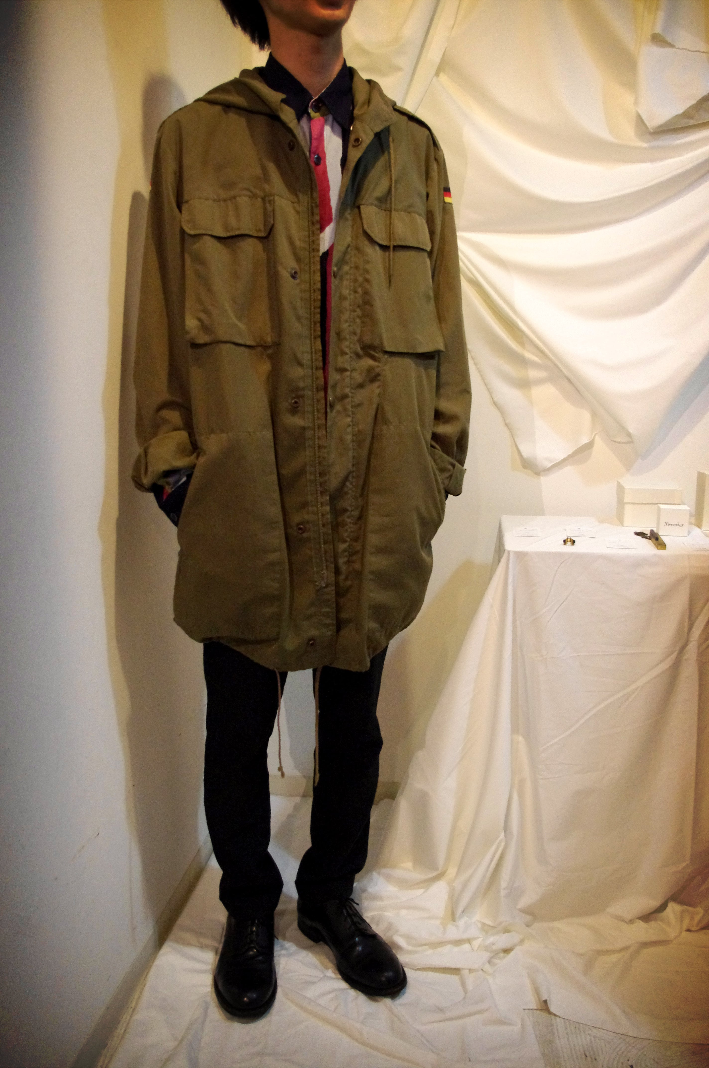 vintage独特の味わい深い質感と、深みがかったカーキの色味が渋い今一押しのドイツ軍の70年代軍物コート。大きめのポケットが目を惹き軍物にしては着やすいデザイン。今シーズン重宝するアイテムです。